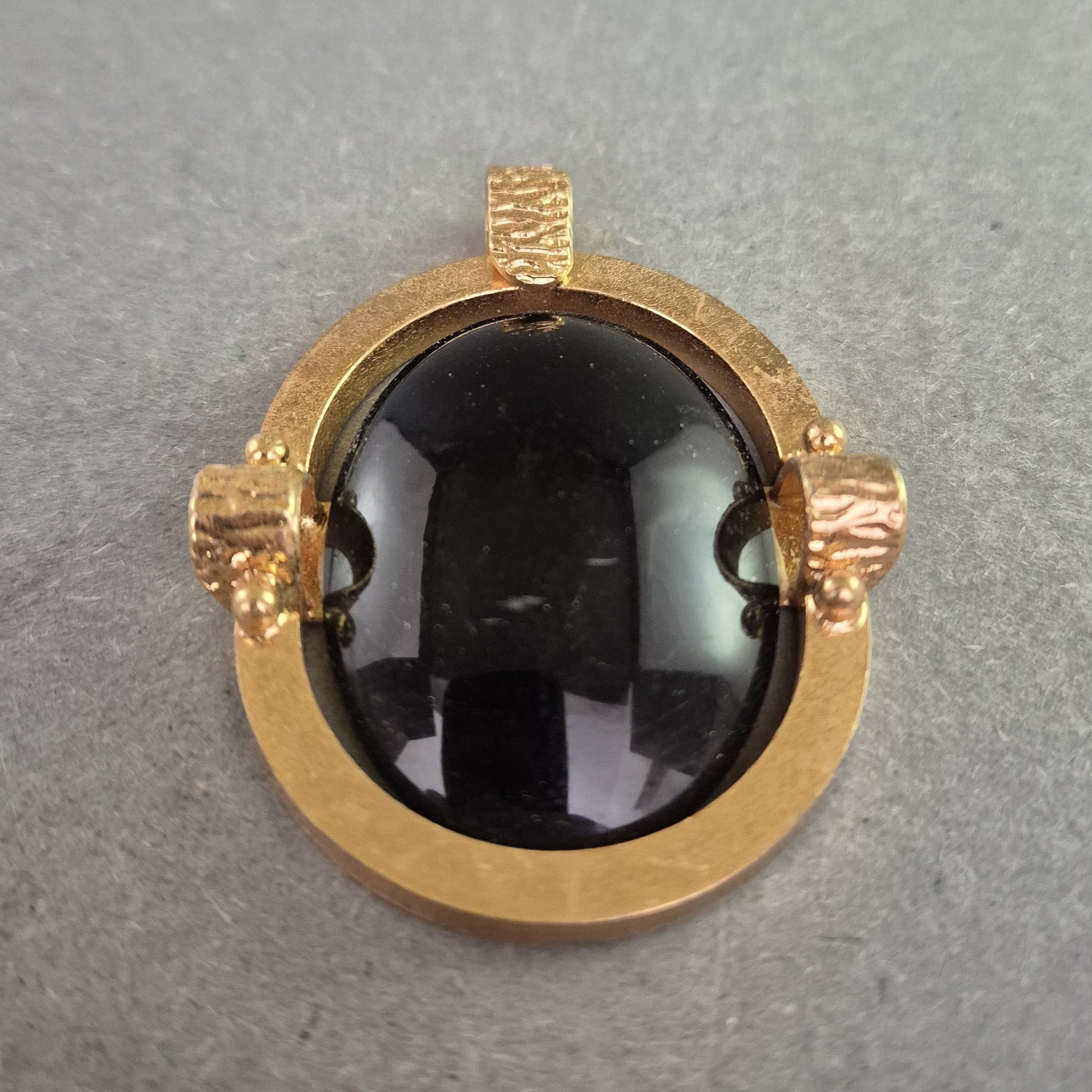Großer Vintage-Anhänger mit schwarzem Cabochon und Goldrahmen