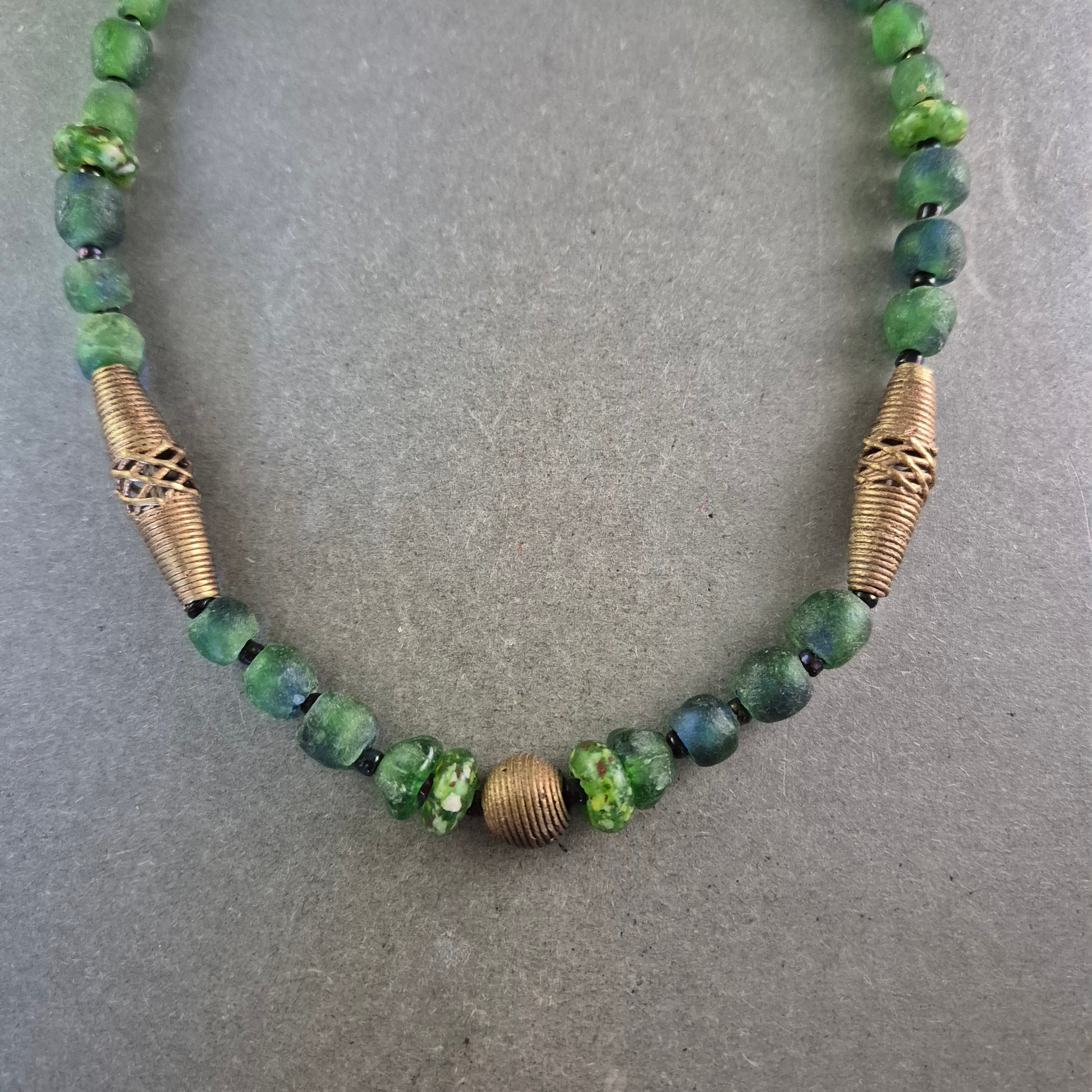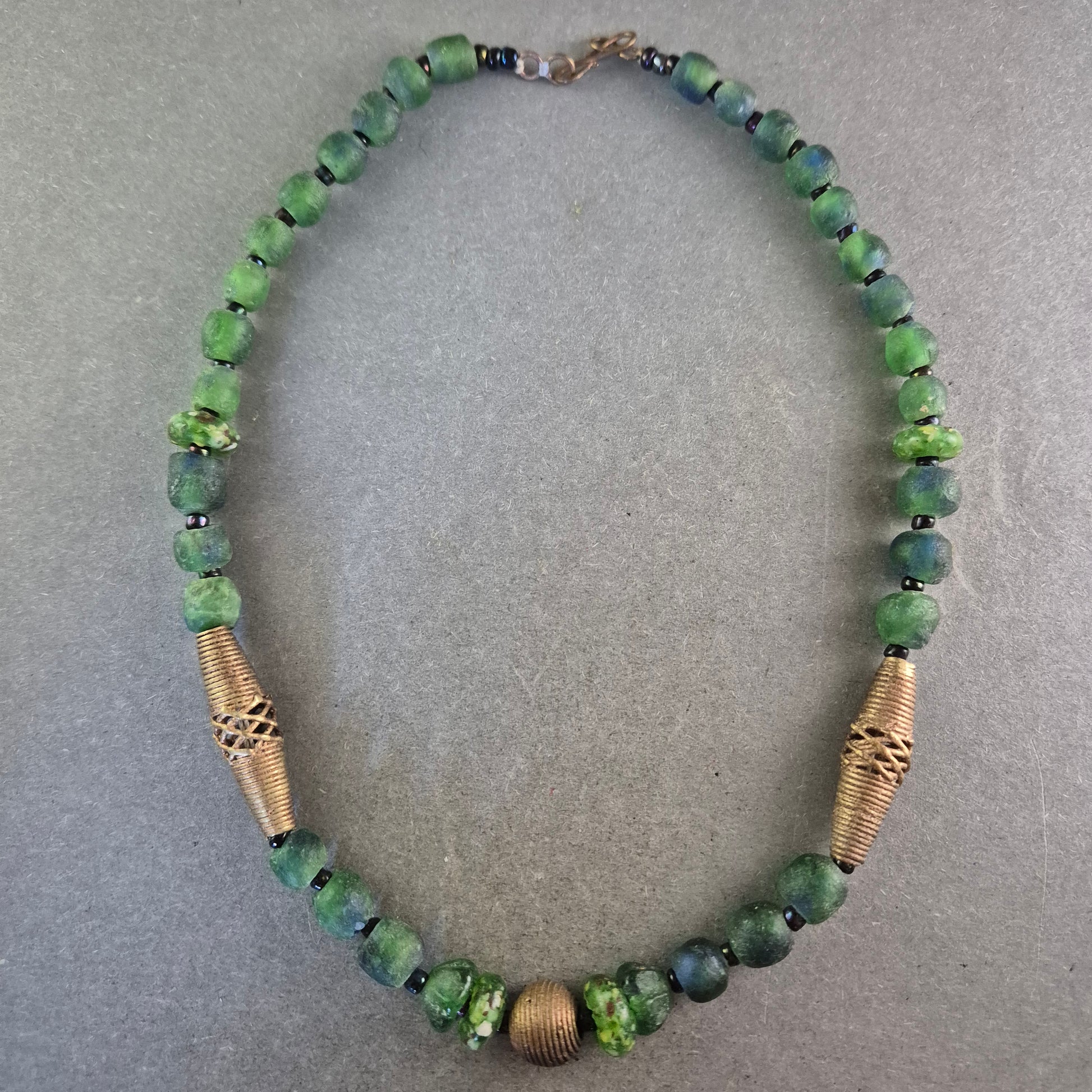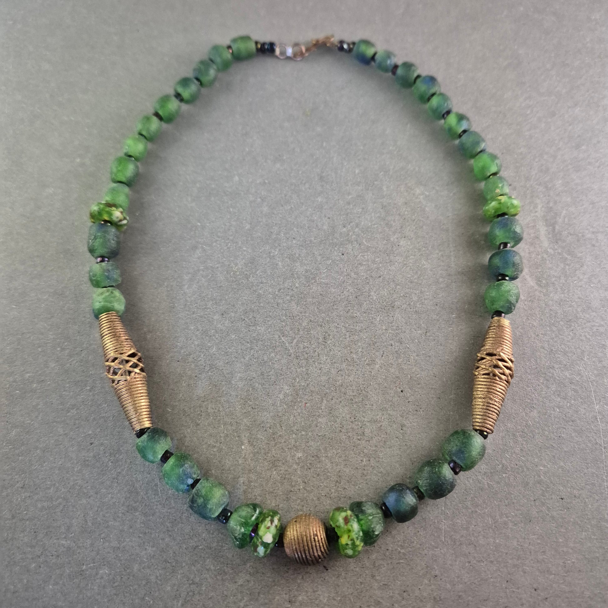 Grüne Ethno Halskette mit Messingperlen – Handgefertigter Look