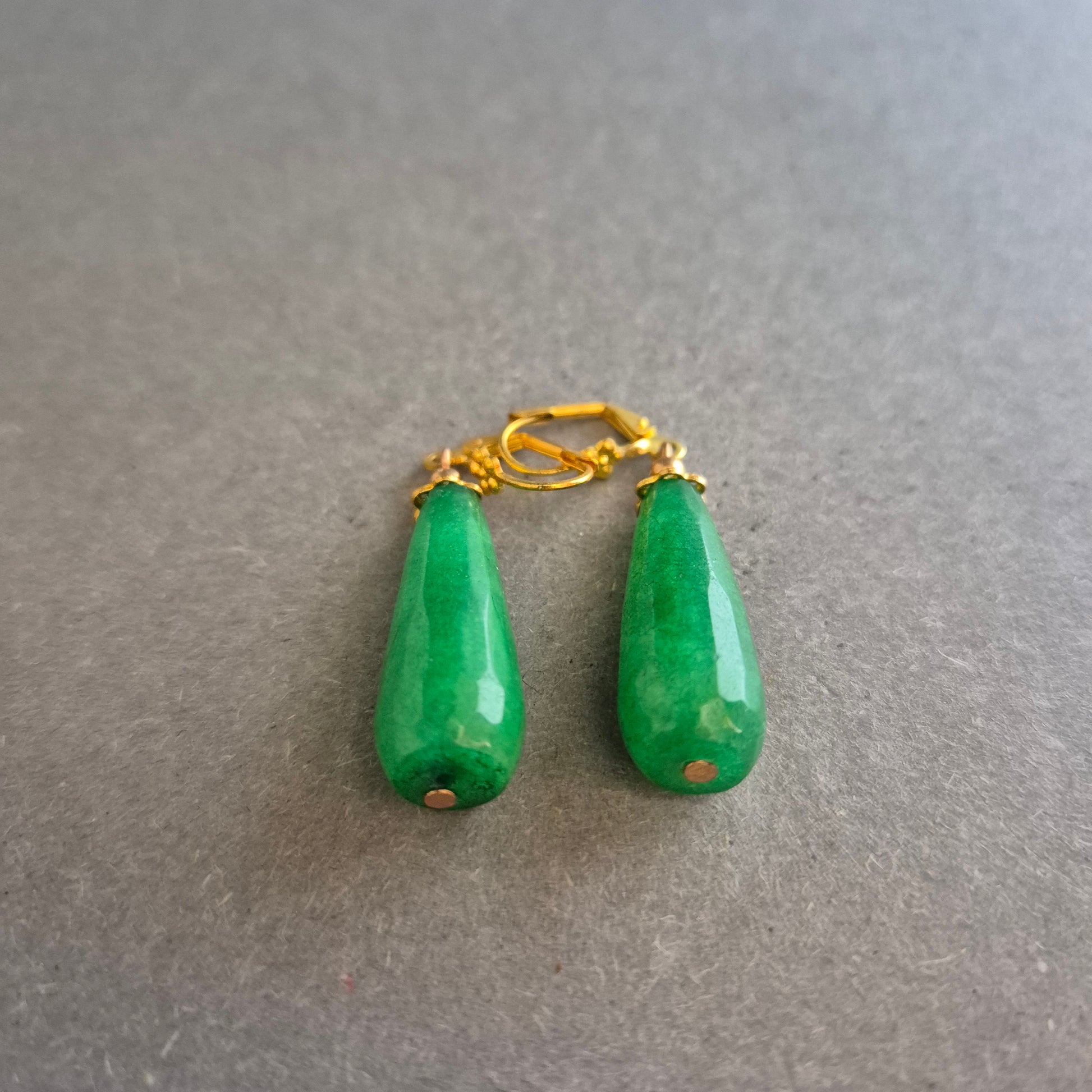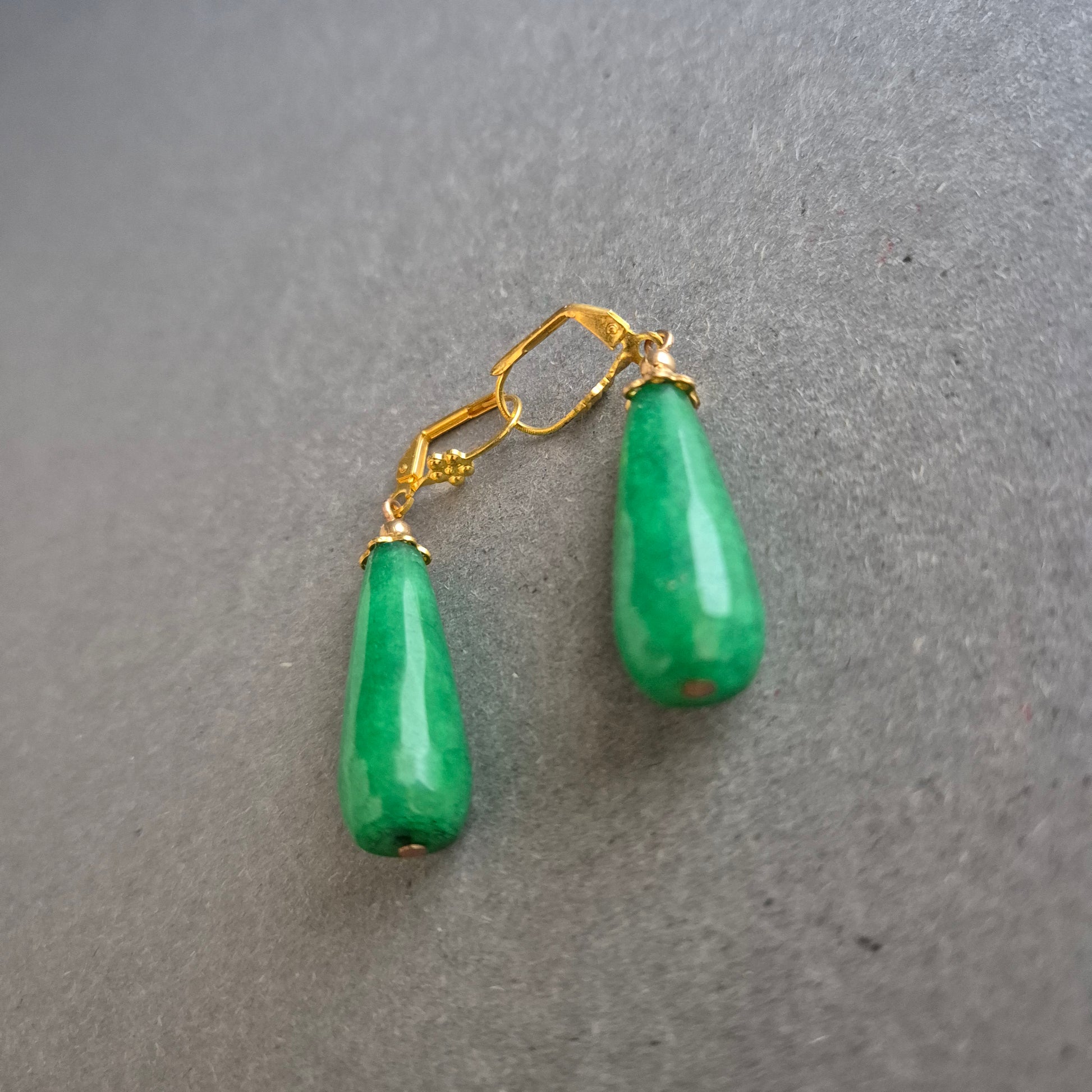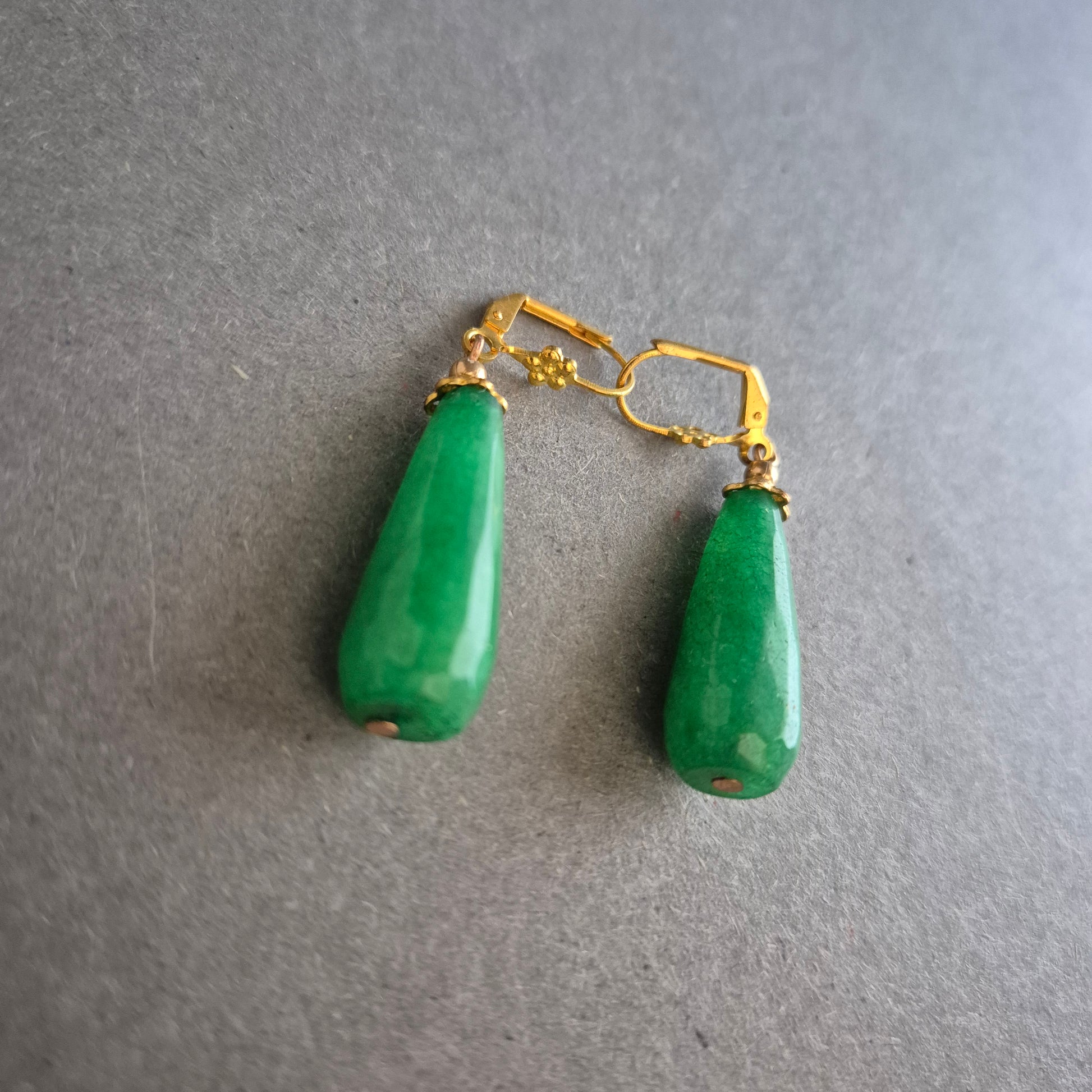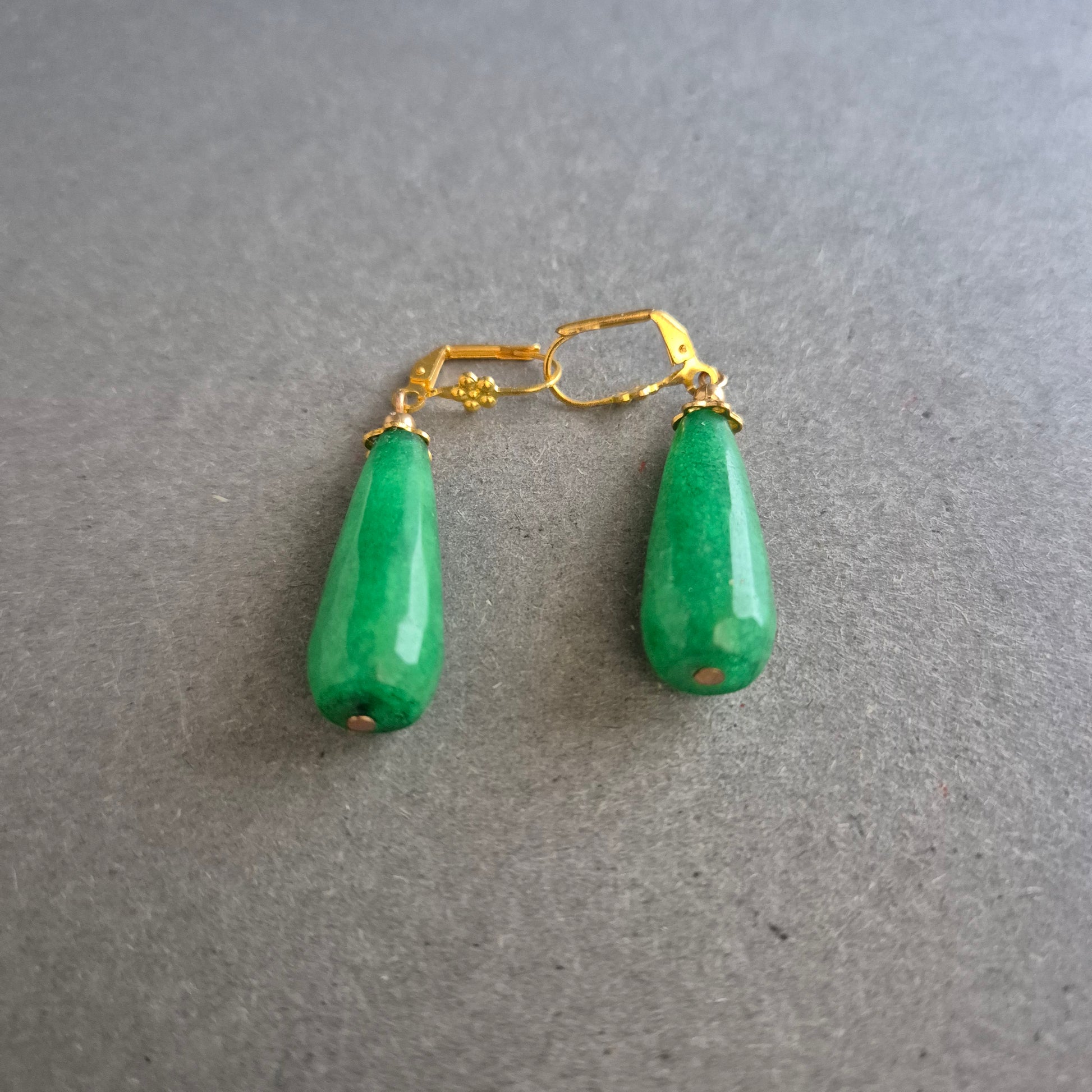Grüne Tropfenohrringe mit goldfarbenem Verschluss