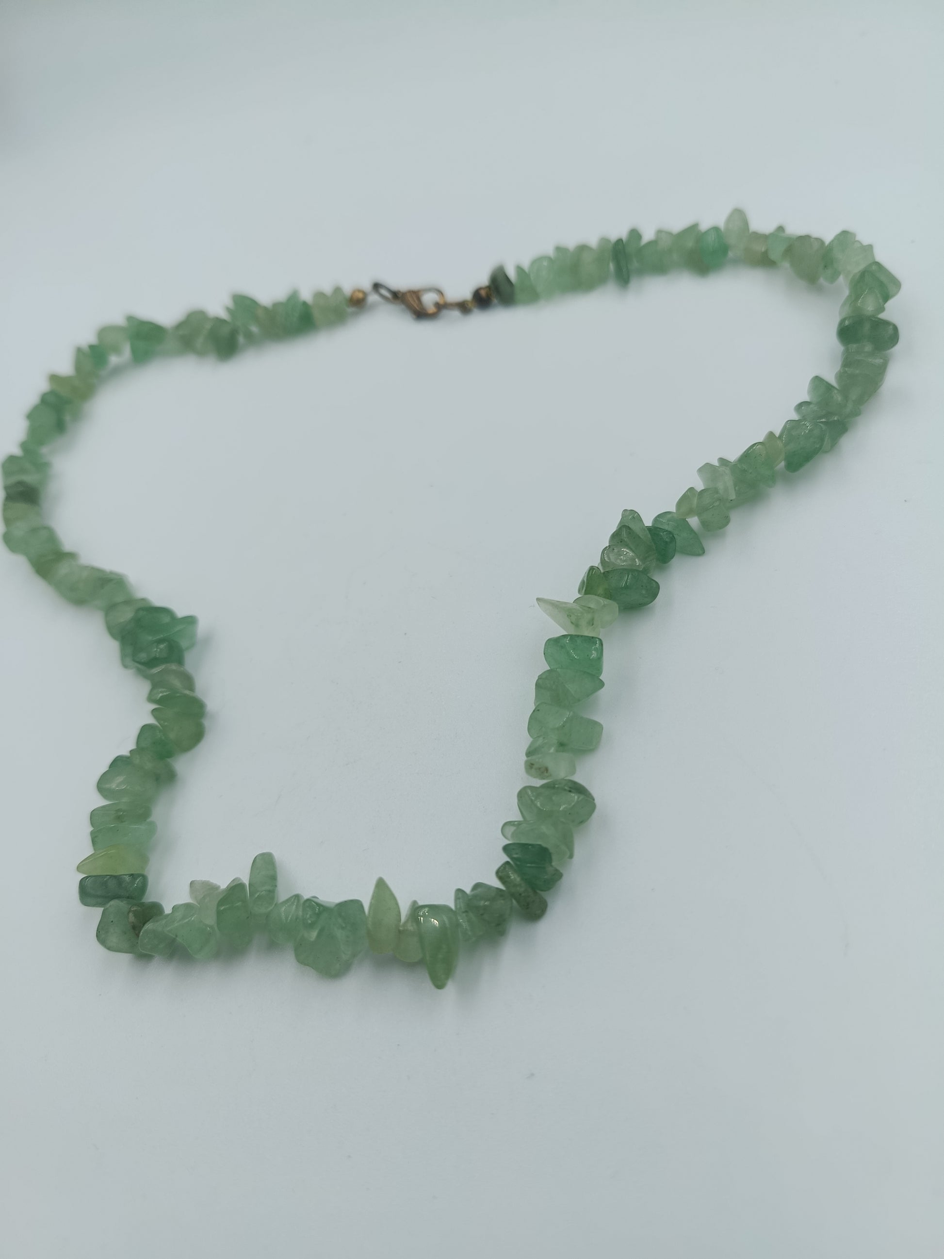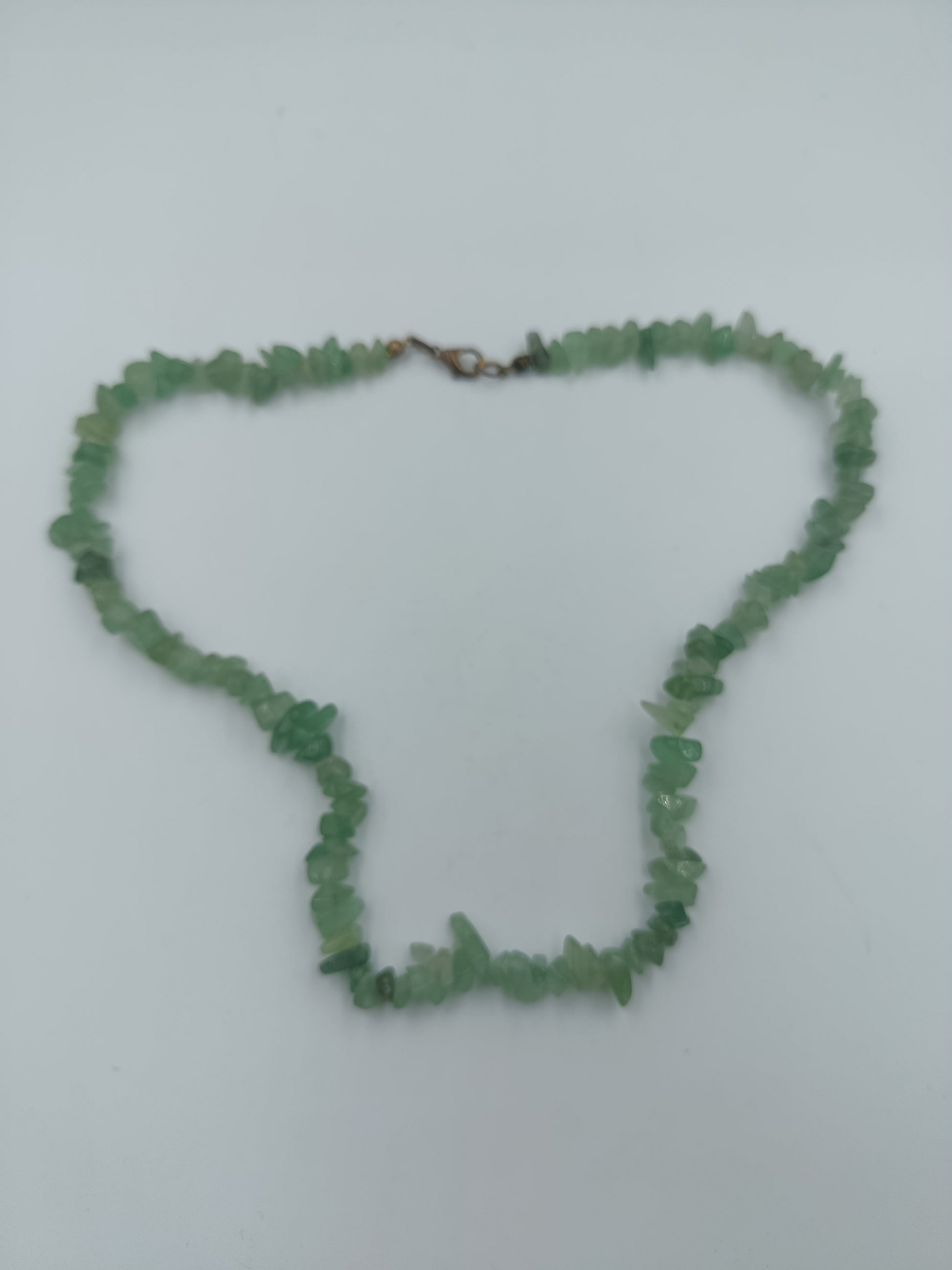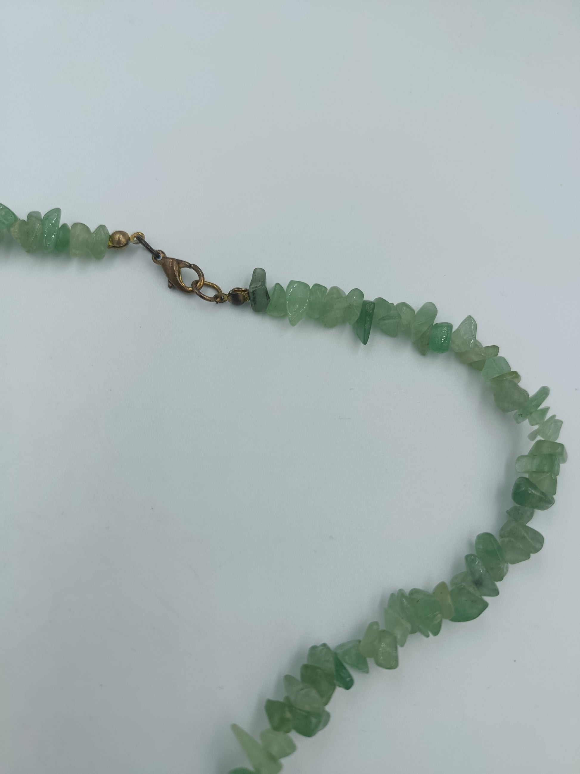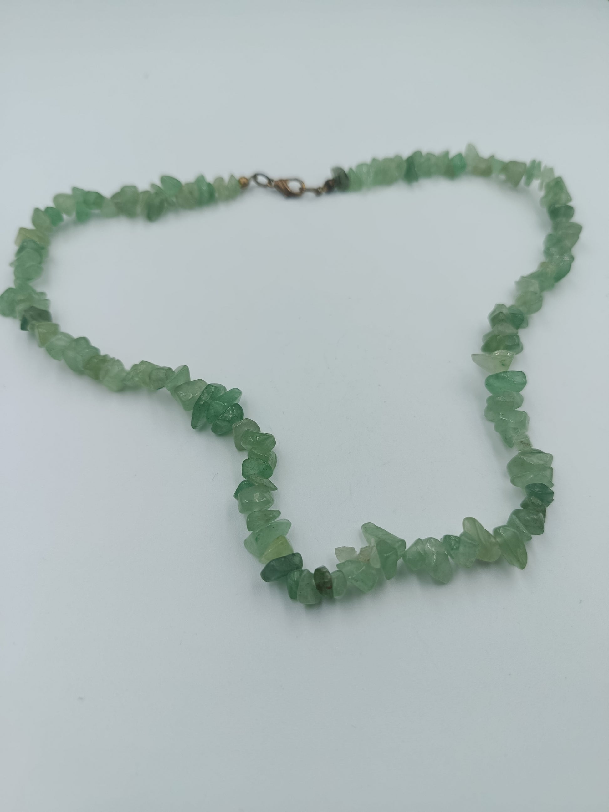Natürliche Schönheit in ihrer reinsten Form: Diese Halskette besteht aus polierten Splittern grüner Edelsteine, die ein frisches, lebendiges Farbspiel erzeugen. Jeder Stein ist einzigartig und macht die Kette zu einem Unikat. Der klassische Karabinerverschluss sorgt für sicheren Halt. Ein zeitloses Schmuckstück, das sich sowohl im Alltag als auch zu besonderen Anlässen tragen lässt.