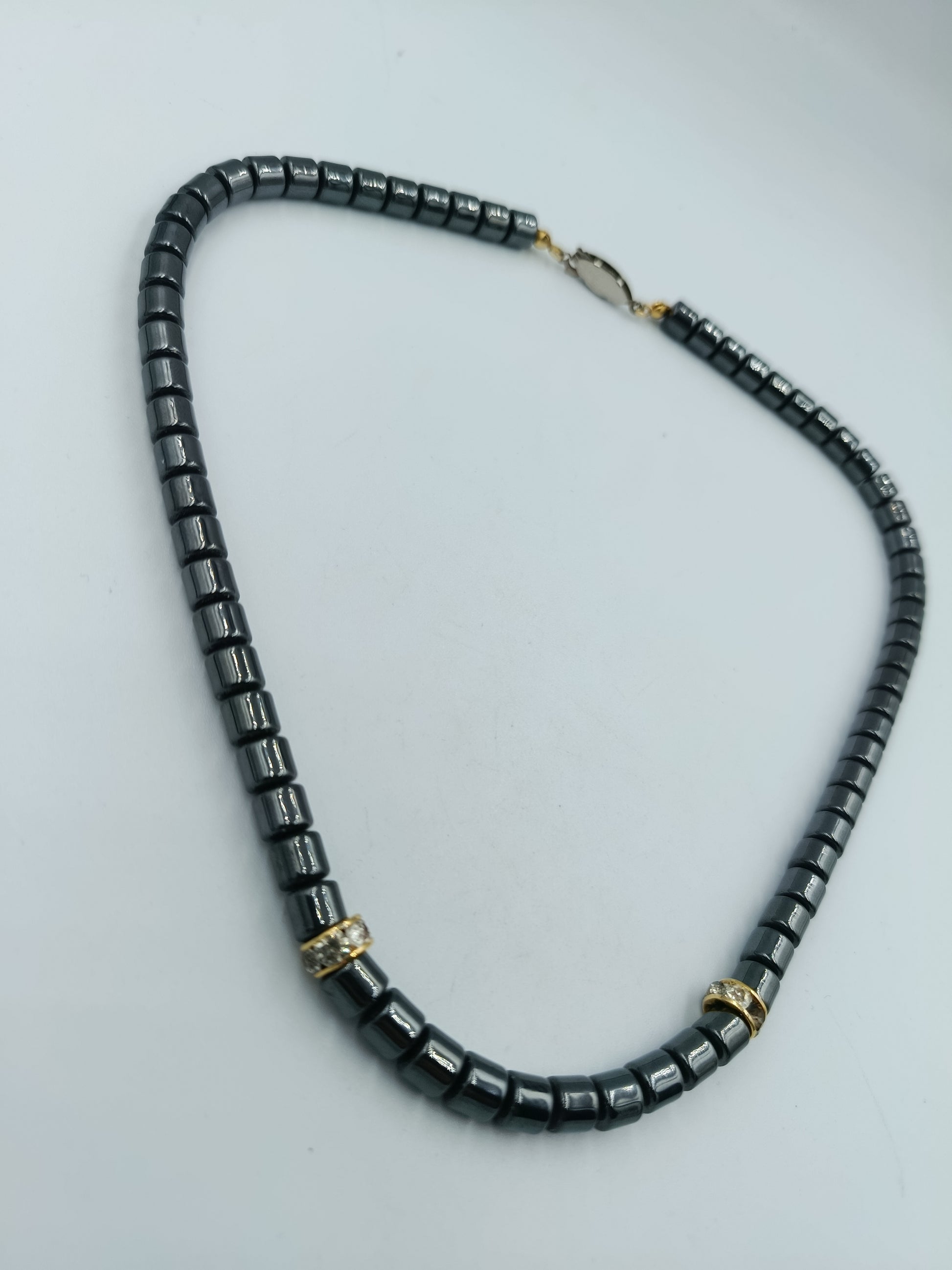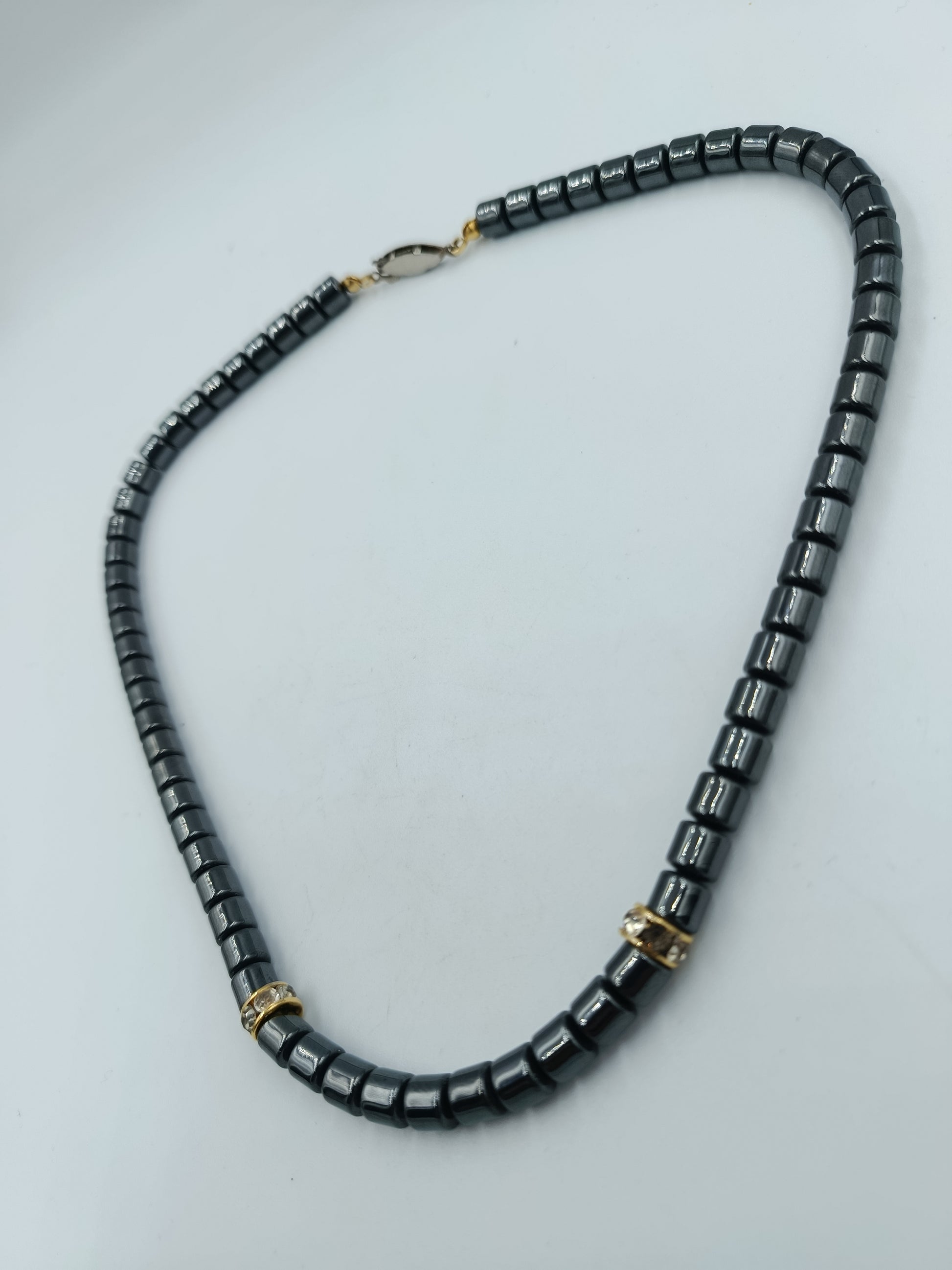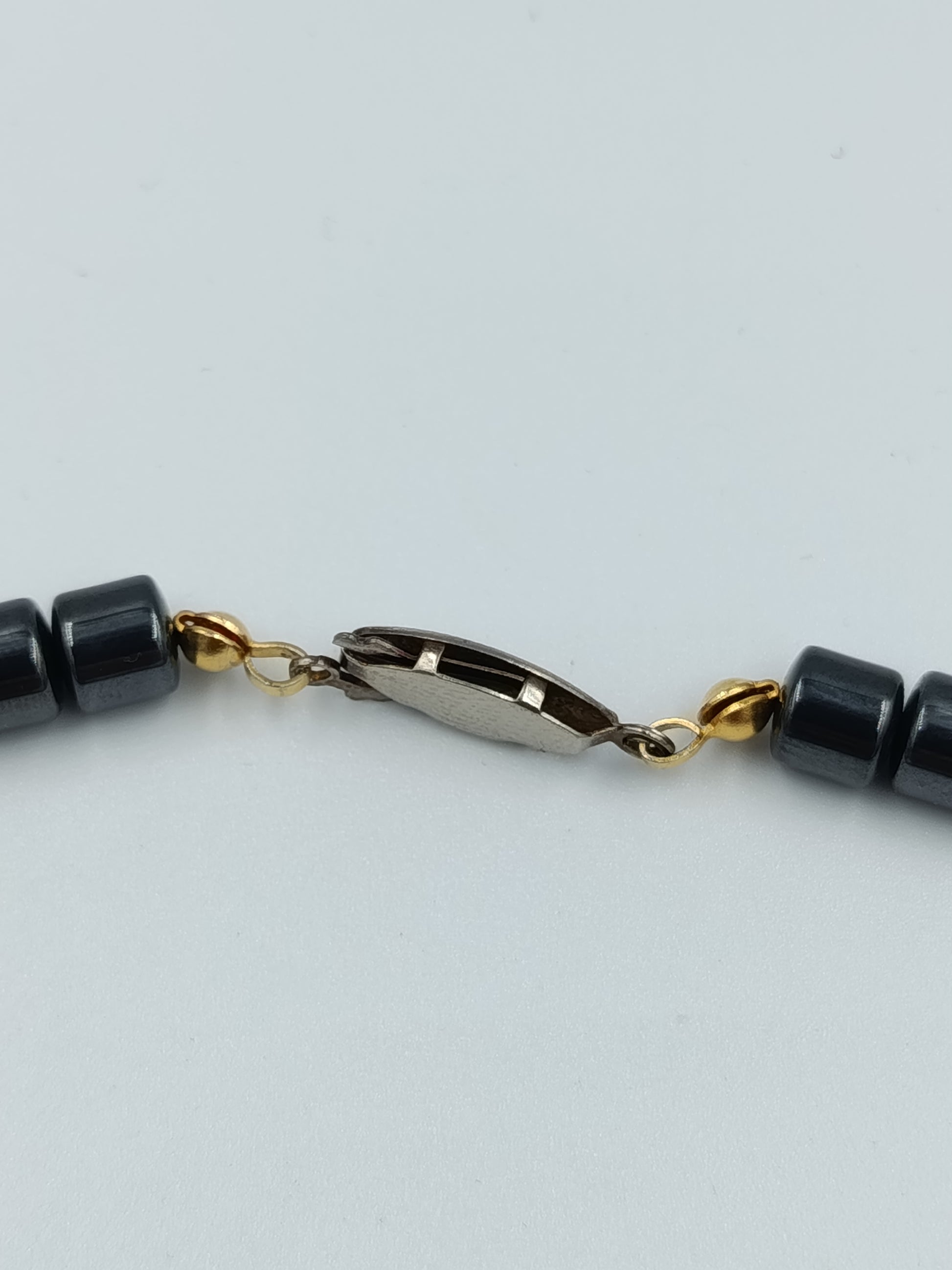 Halskette aus Hämatitwürfeln mit goldfarbenen Elementen