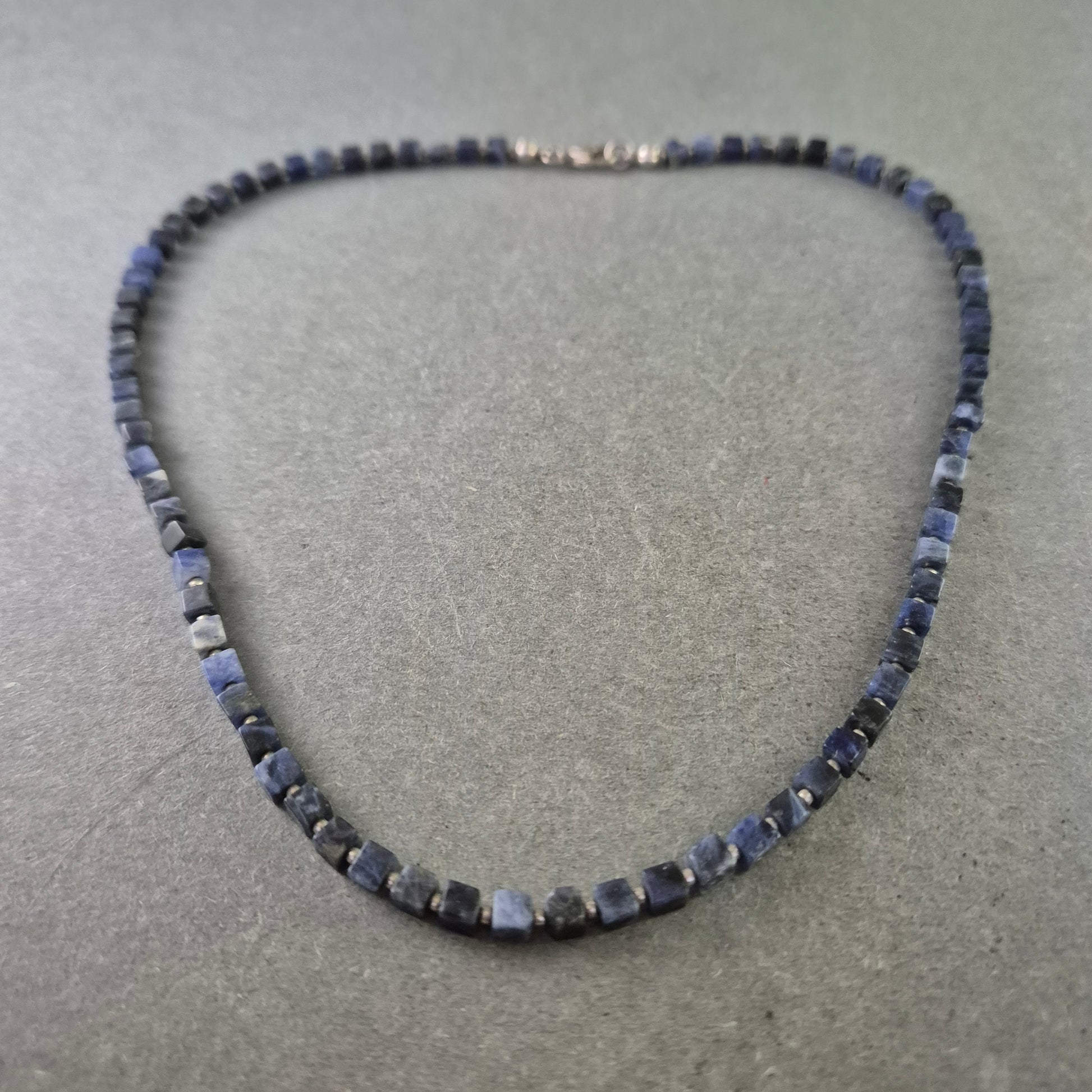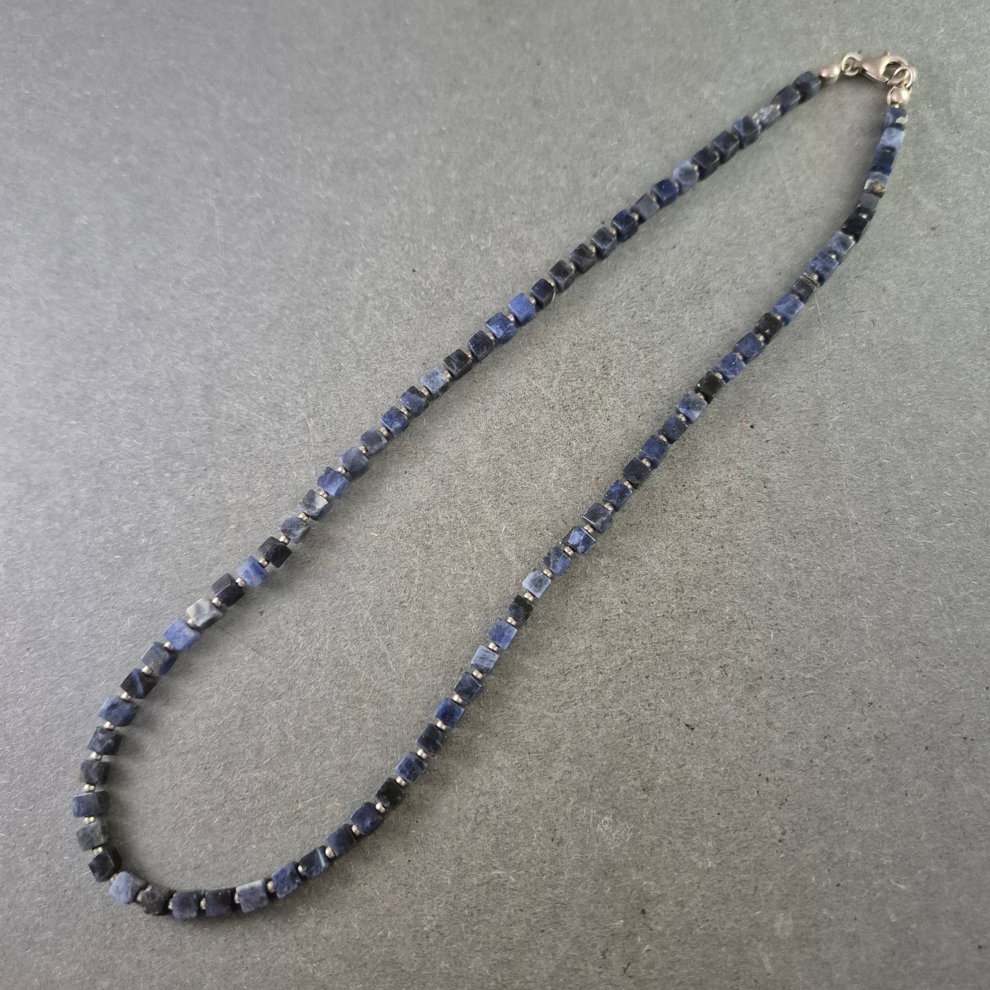 Halskette mit blauen Würfelperlen aus Naturstein – Klar & kantig