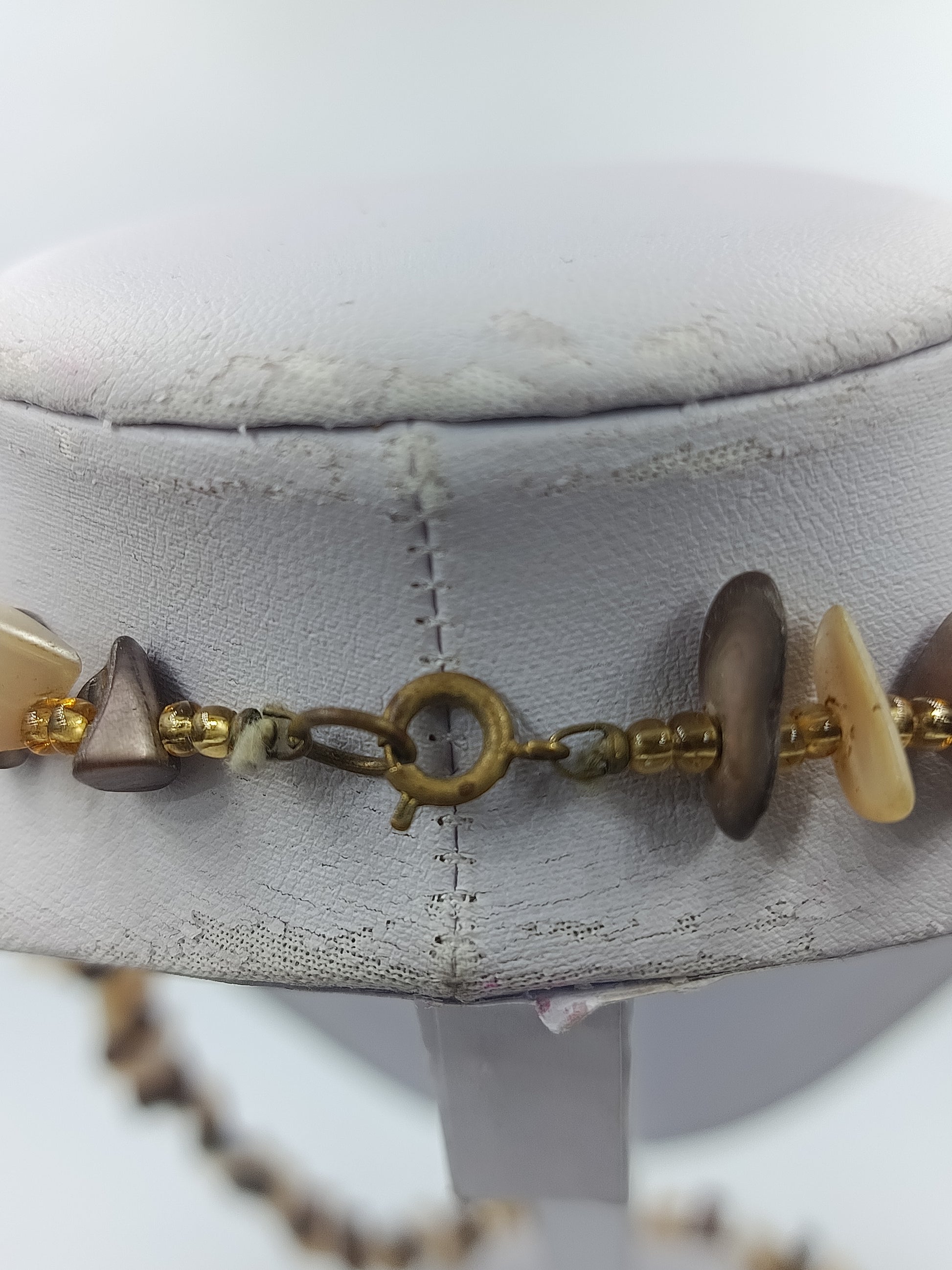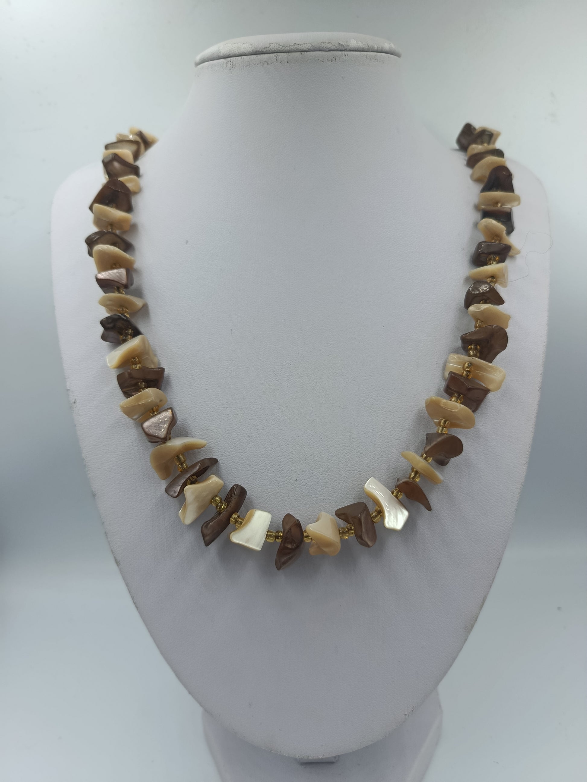 Halskette mit braunen und cremefarbenen Muschelsteinen