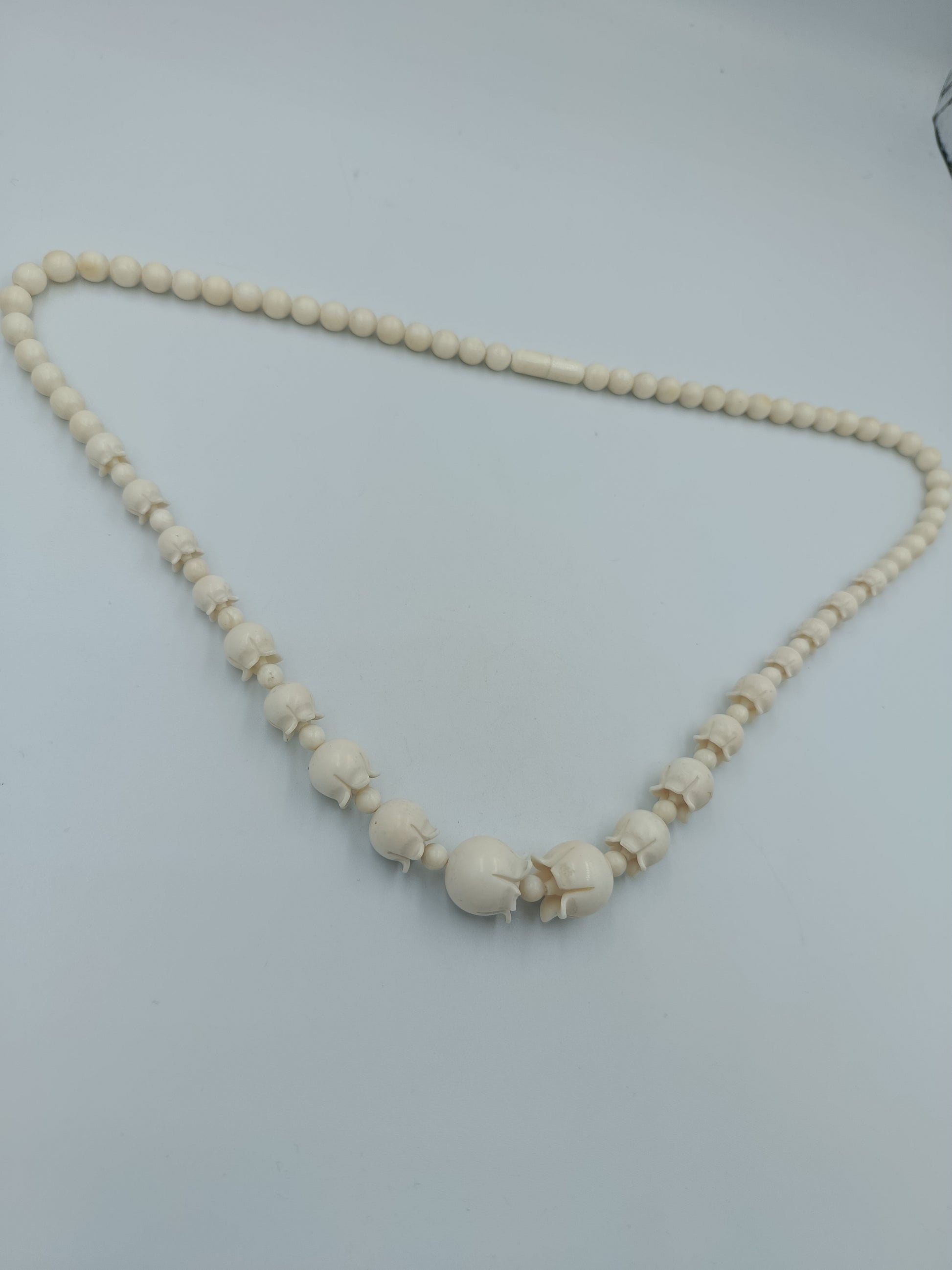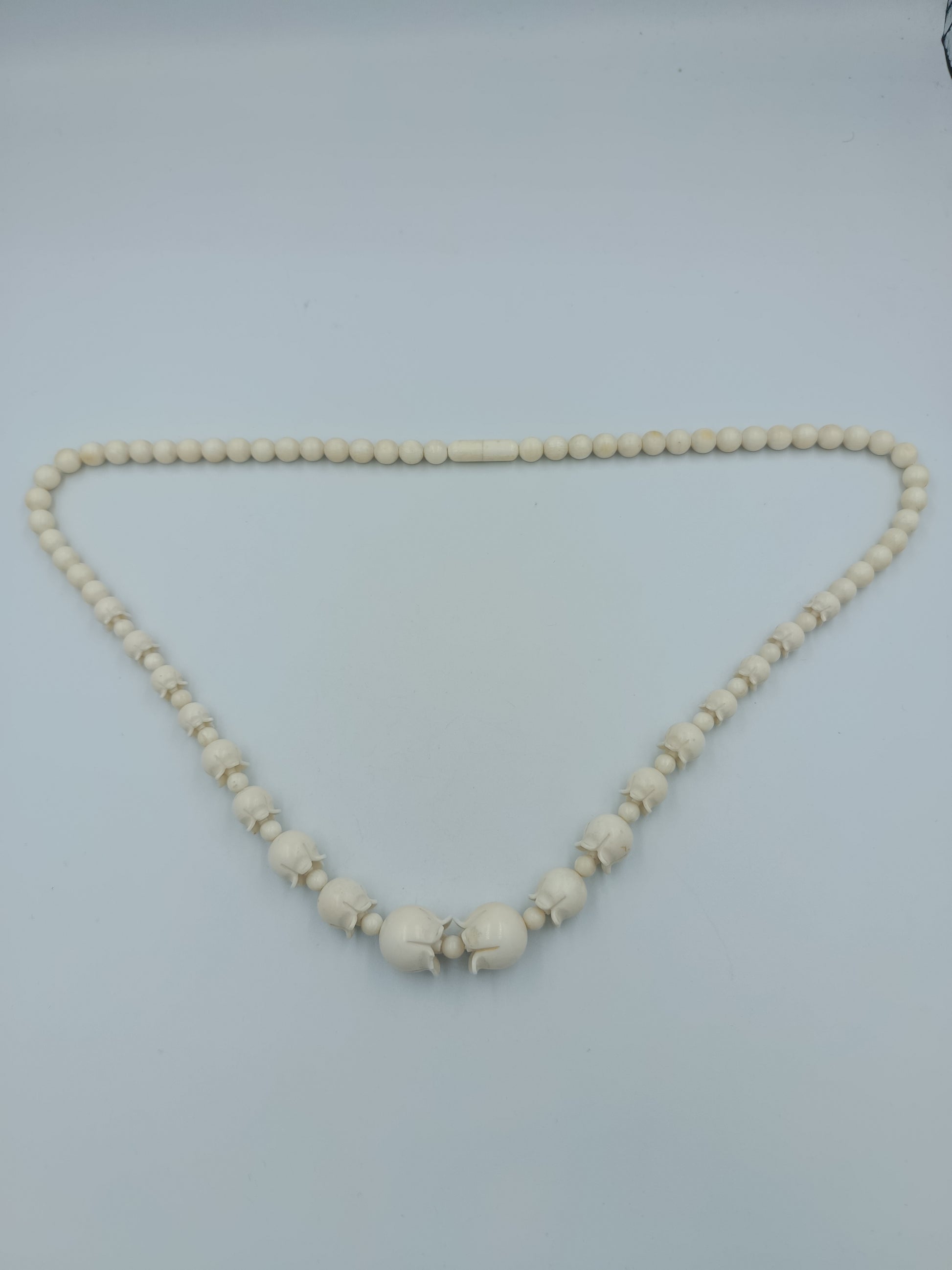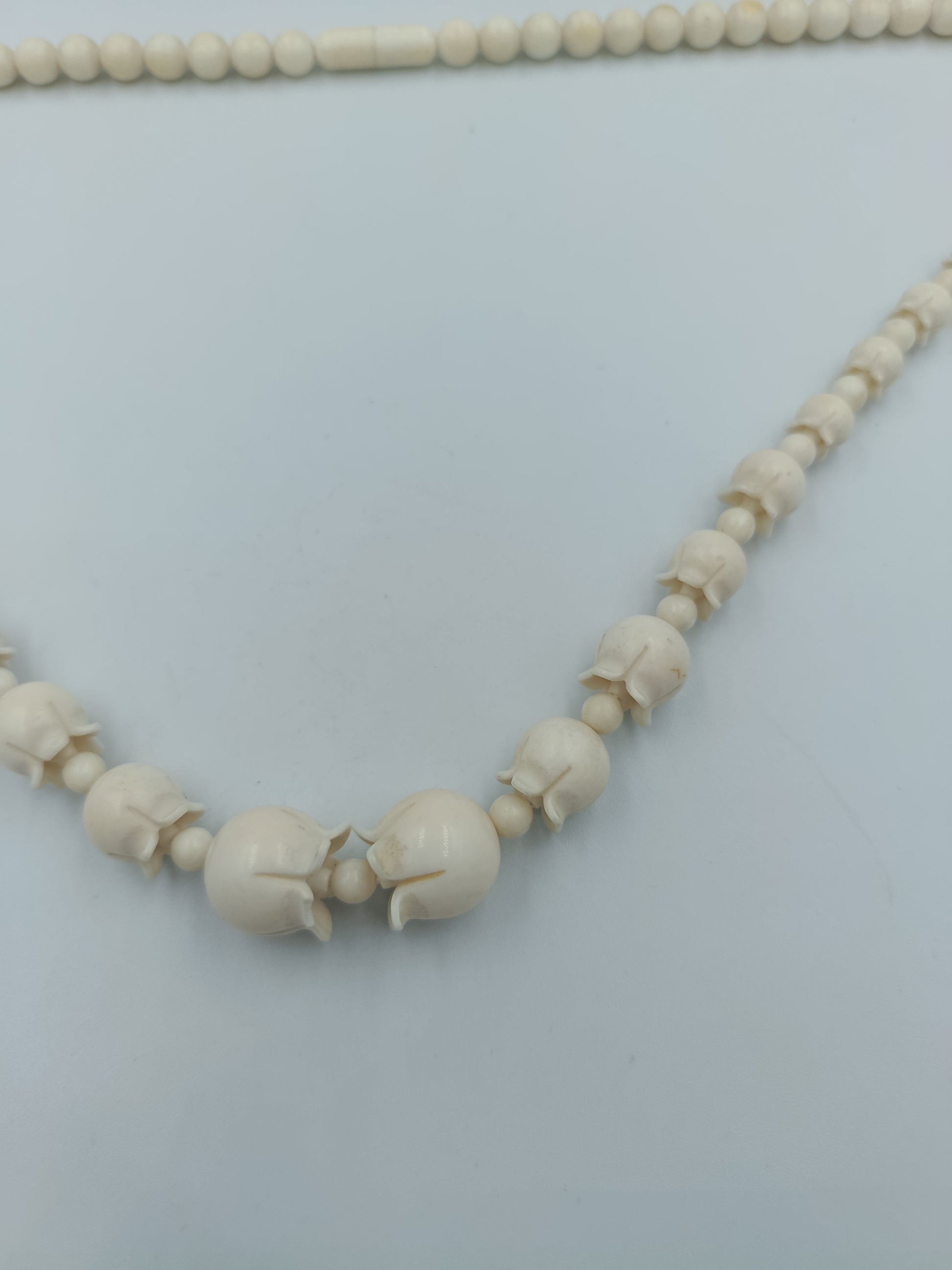 Halskette mit geschnitzten Elfenbein-Optik-Perlen