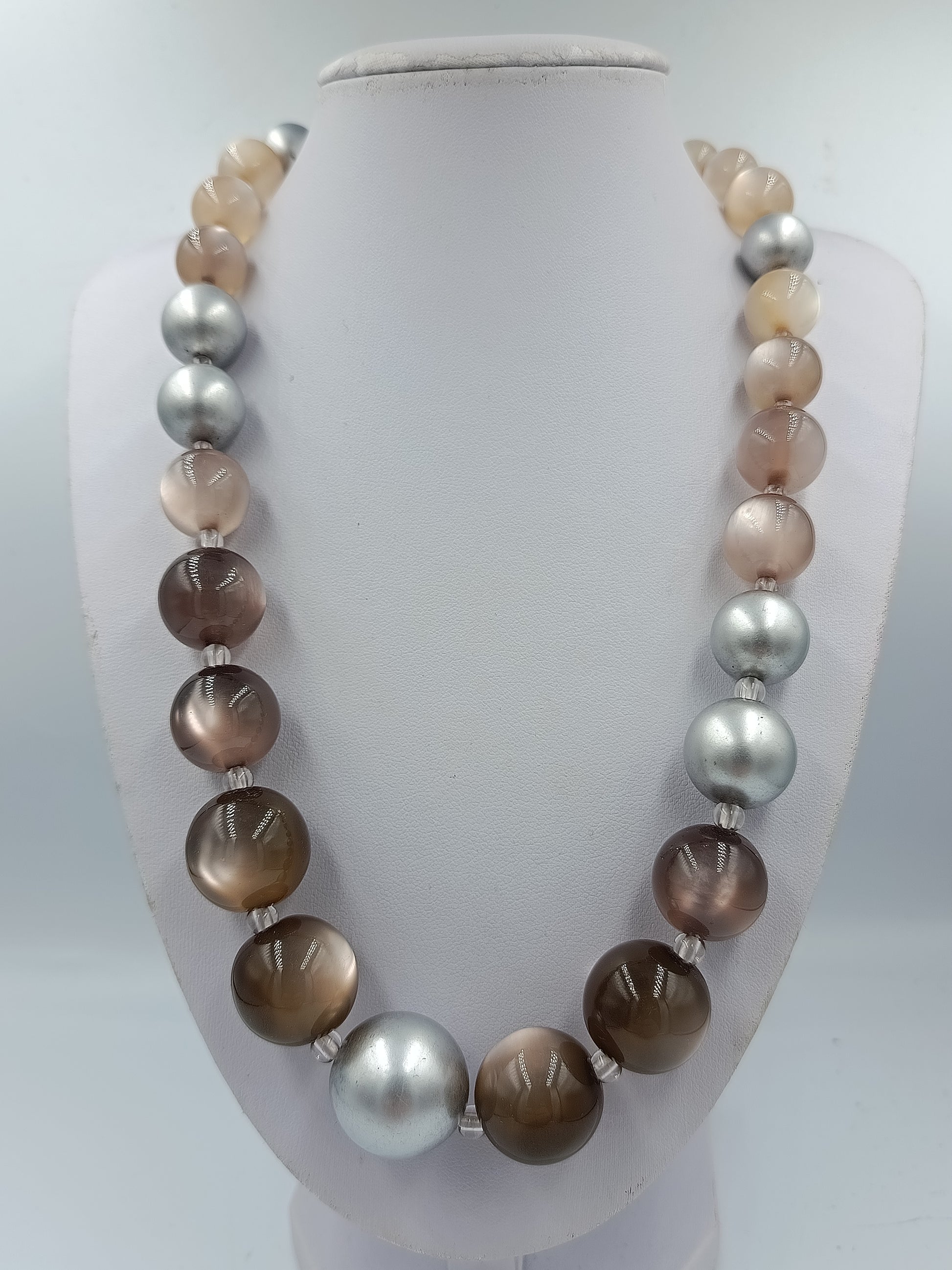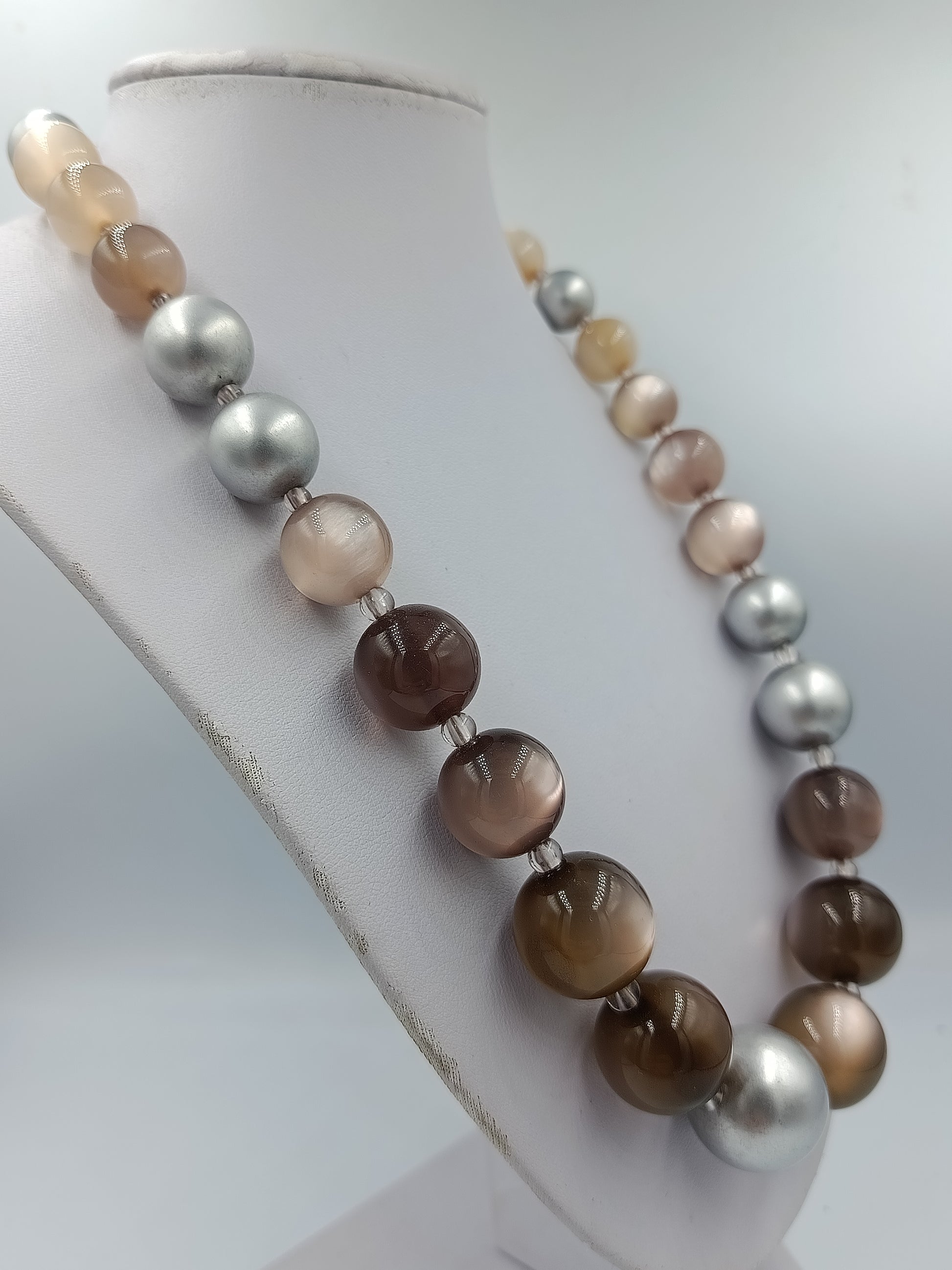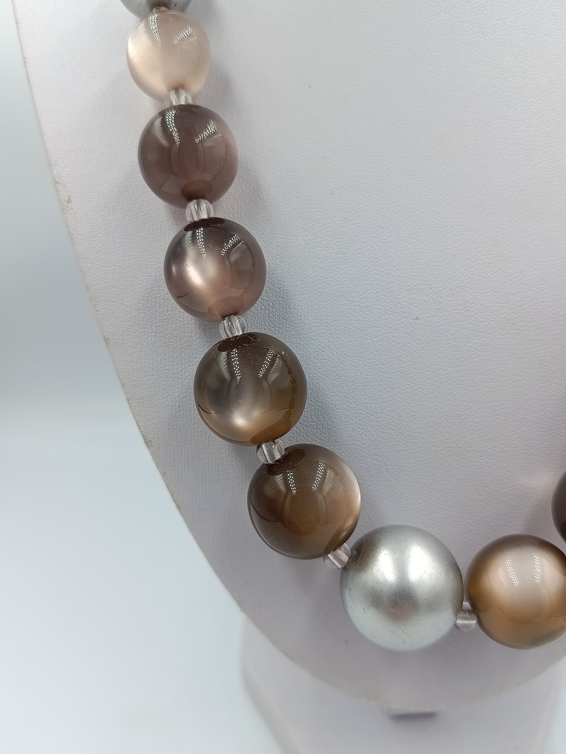 Halskette mit großen Kugelperlen in Braun und Silber Glanzeffekt