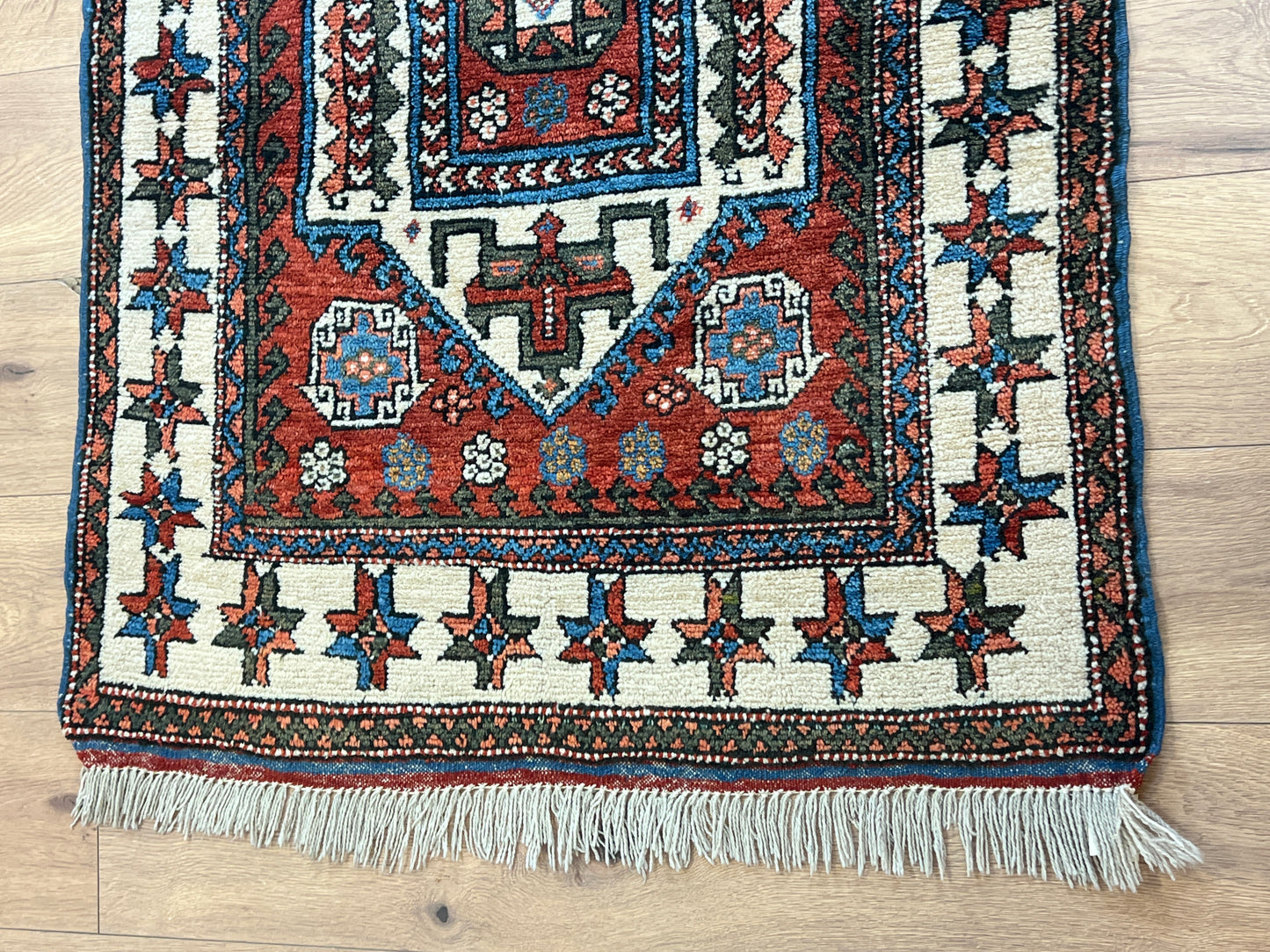 • Zustand: Dieser Teppich weist Gebrauchsspuren aufgrund seines authentischen Charakters und der traditionellen Herstellungstechniken auf. Diese Spuren verleihen ihm eine einzigartige Patina und erzählen die Geschichte seiner Nutzung.