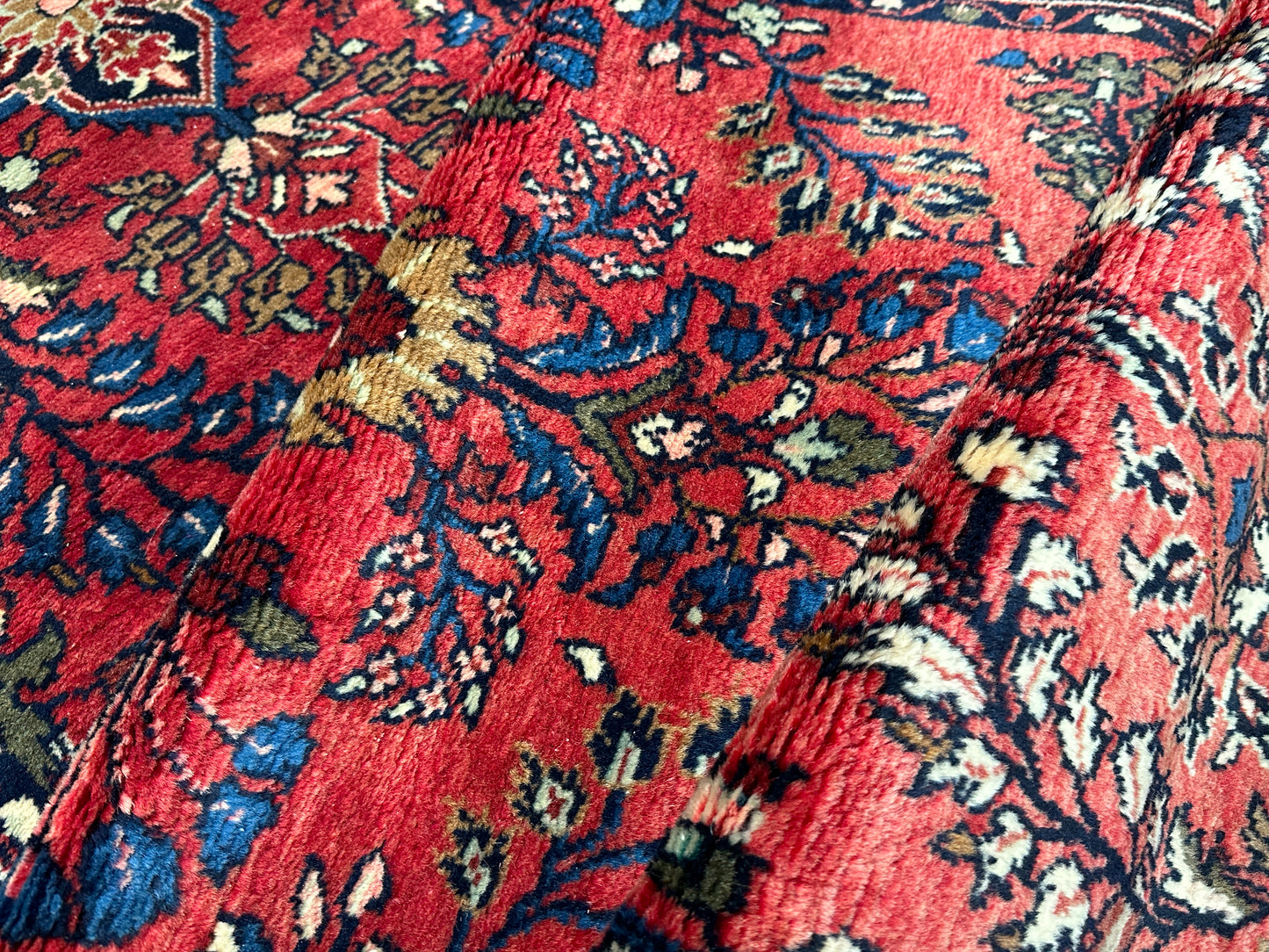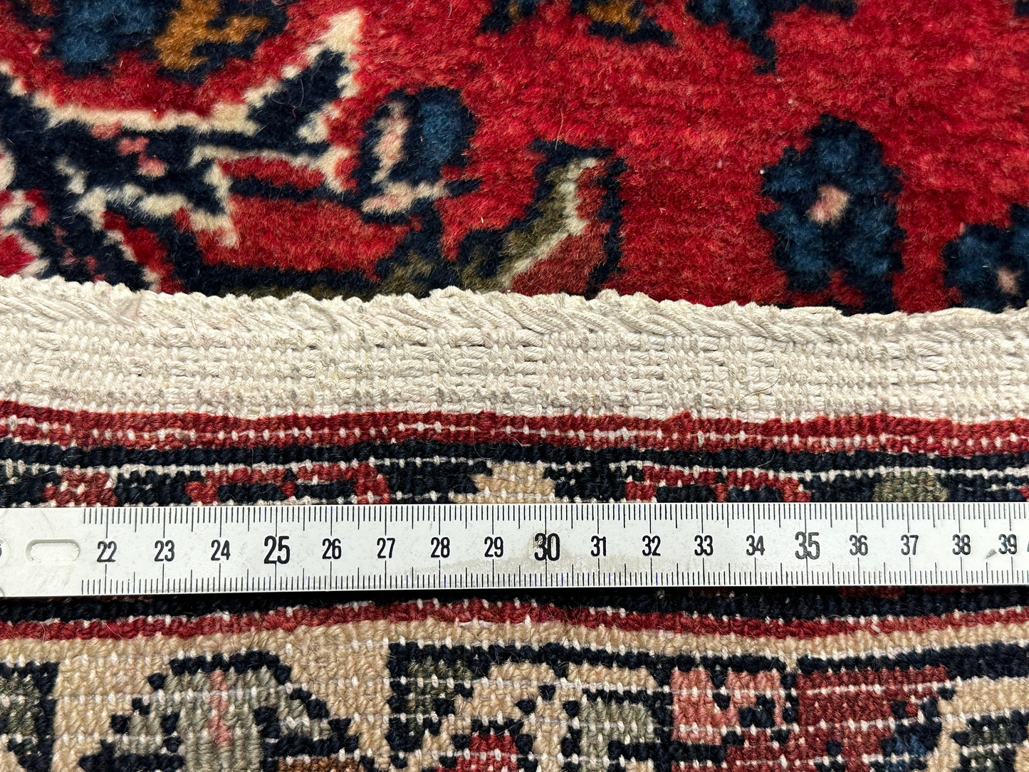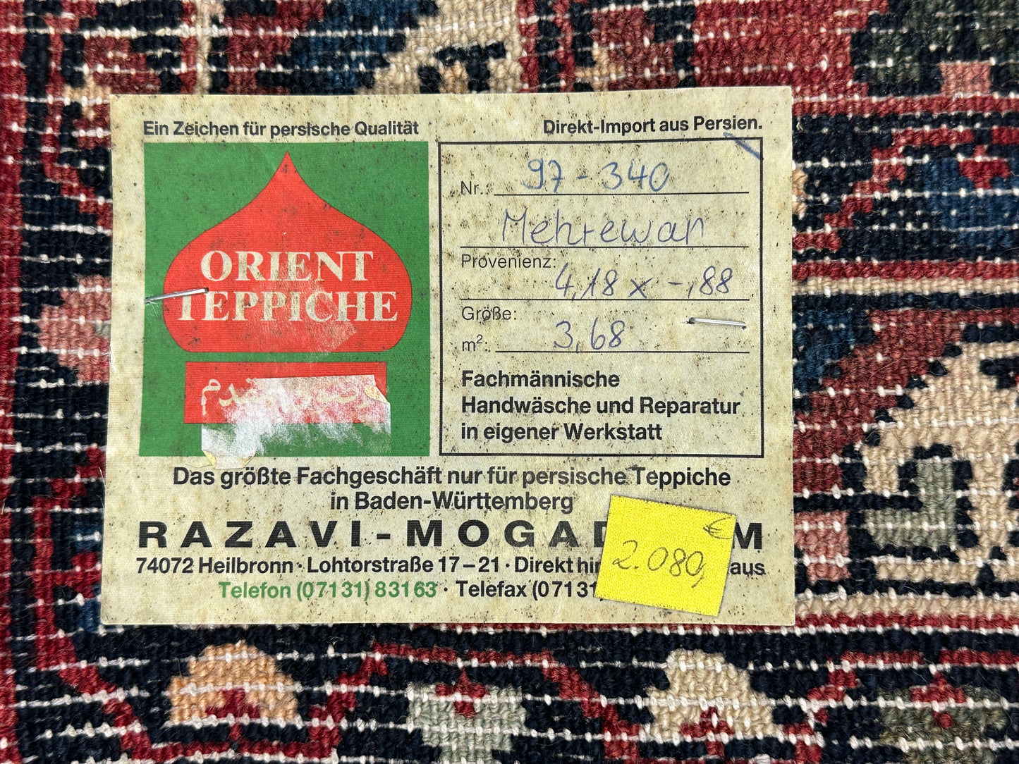 • Design und Herkunft: Dieser handgeknüpfte Teppich stammt aus Persien und ist im klassischen Mehrewan-Stil gestaltet. Der Mehrewan-Stil zeichnet sich durch seine detaillierten Muster und die Verwendung von warmen Farben aus.