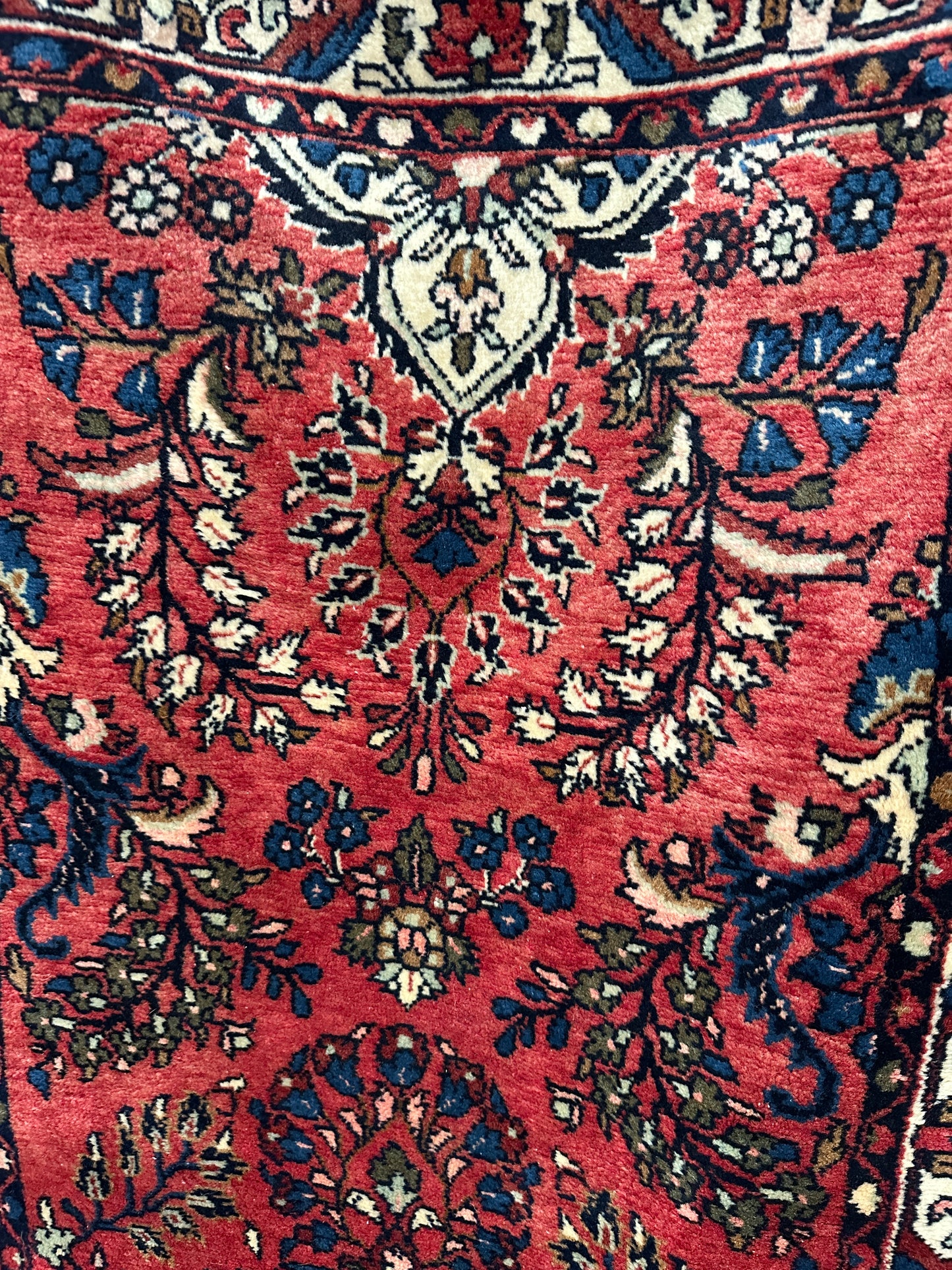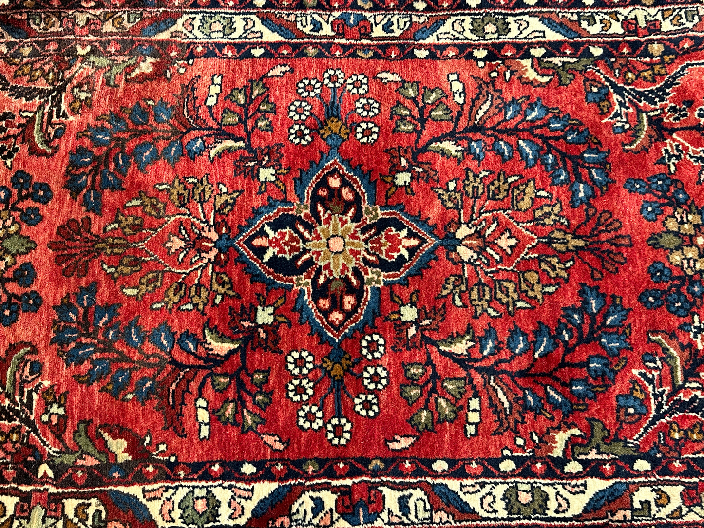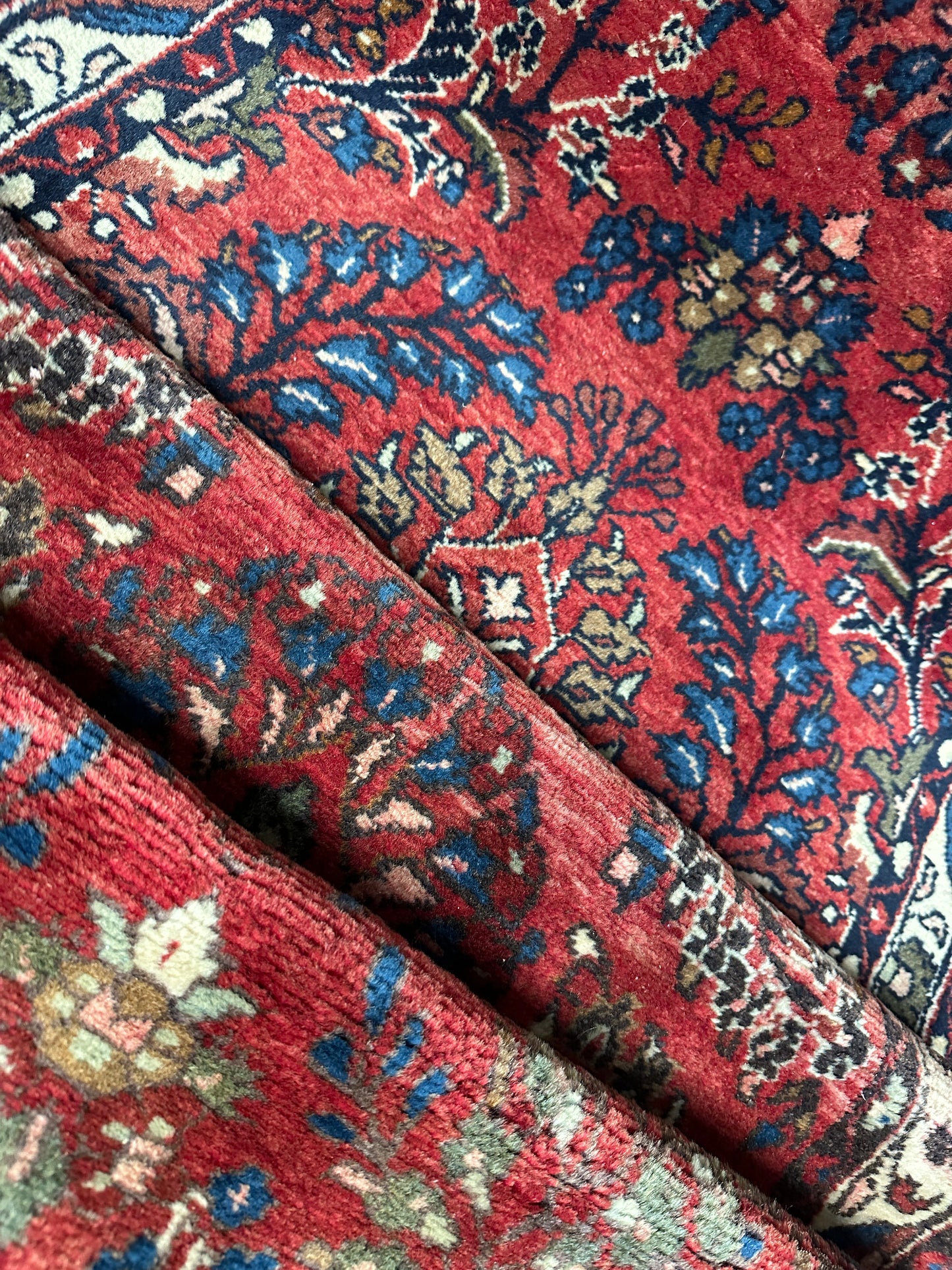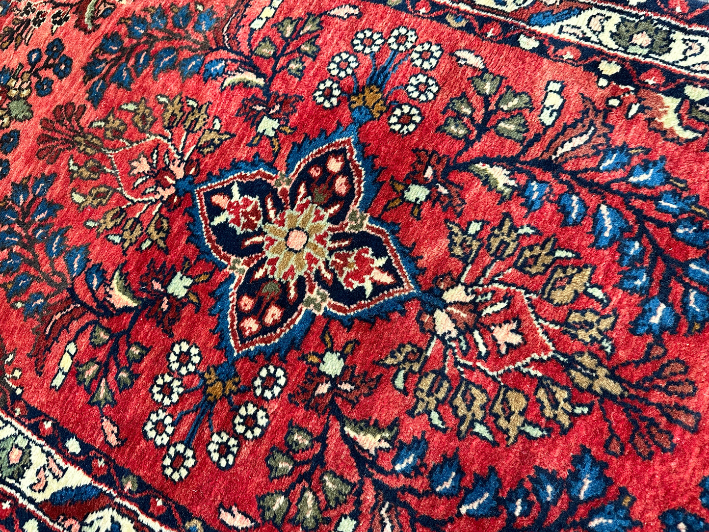 • Design und Herkunft: Dieser handgeknüpfte Teppich stammt aus Persien und ist im klassischen Mehrewan-Stil gestaltet. Der Mehrewan-Stil zeichnet sich durch seine detaillierten Muster und die Verwendung von warmen Farben aus.