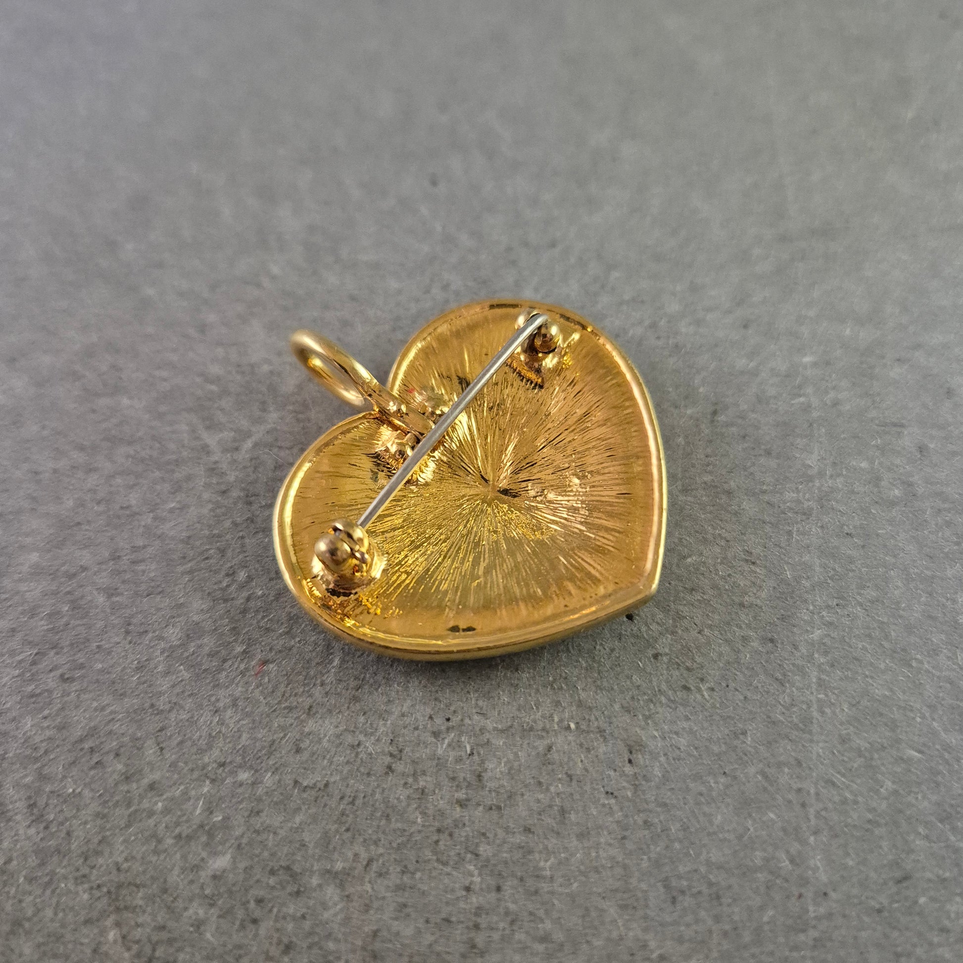 Herzförmige Brosche in Rot mit Strass und Goldfassung