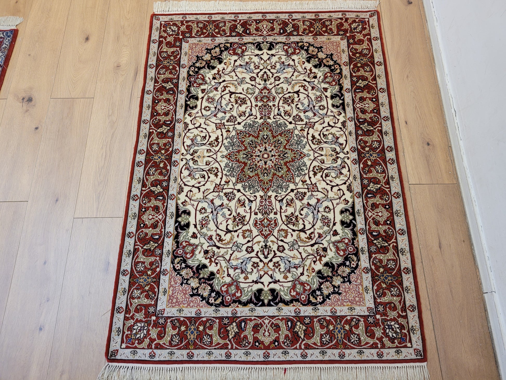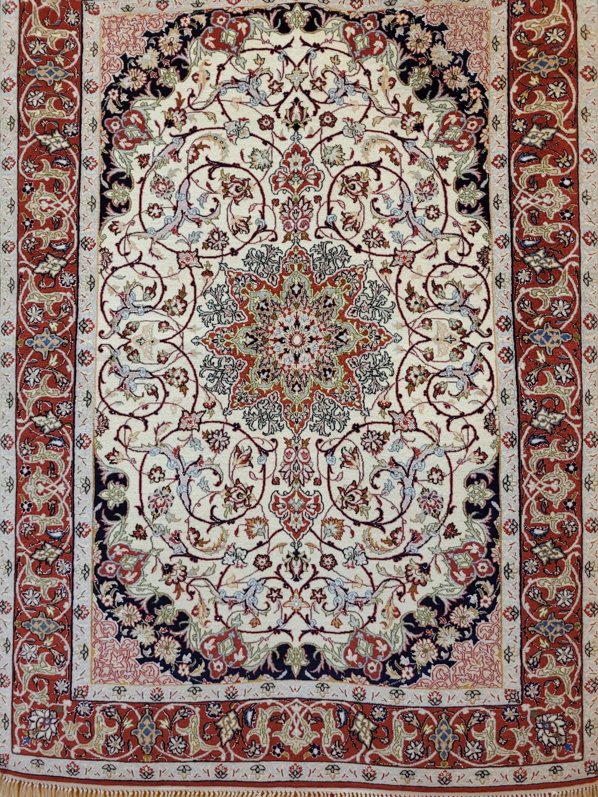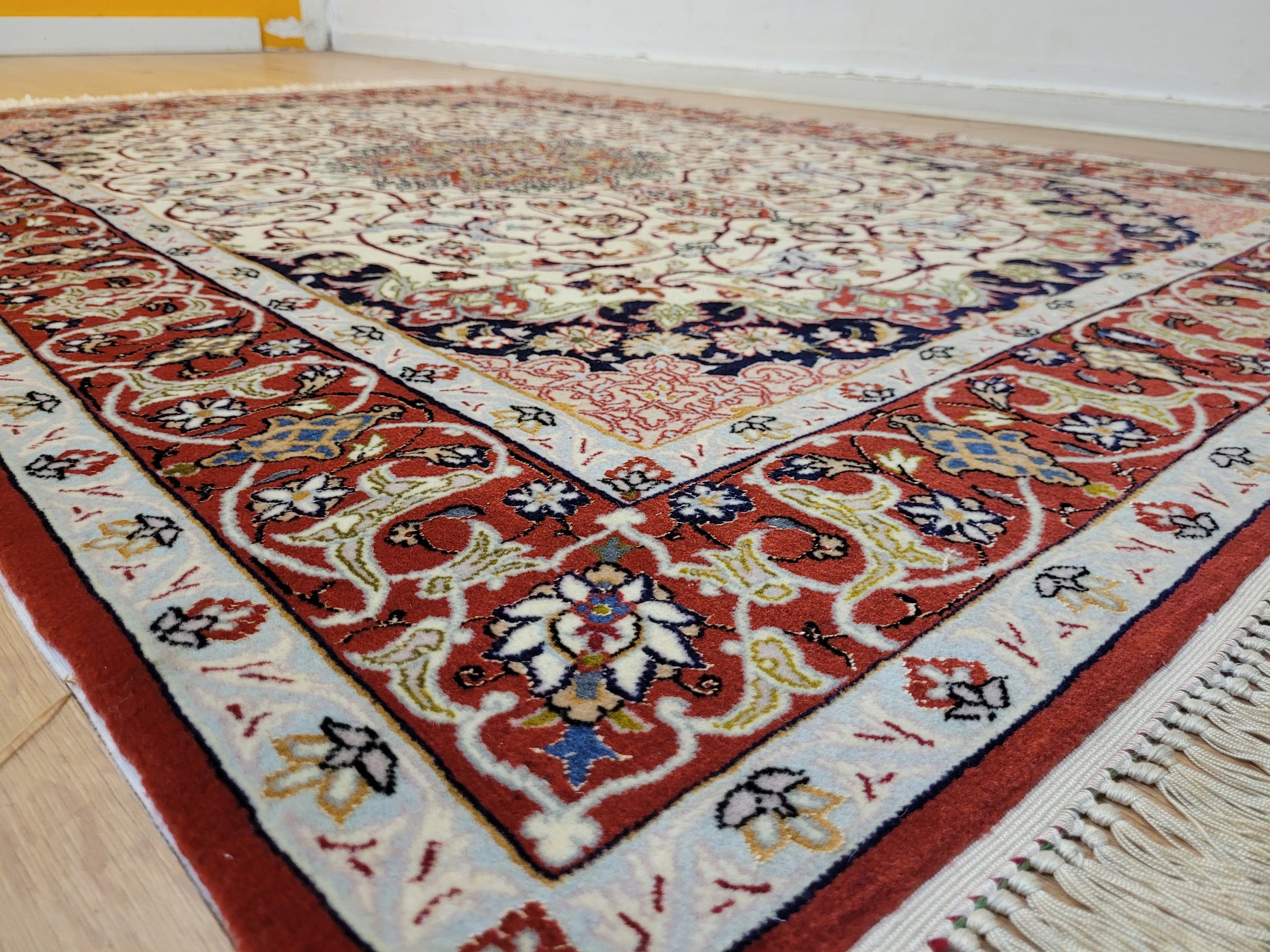 Isfahan Teppich Korkwolle Seide fein handgeknüpft