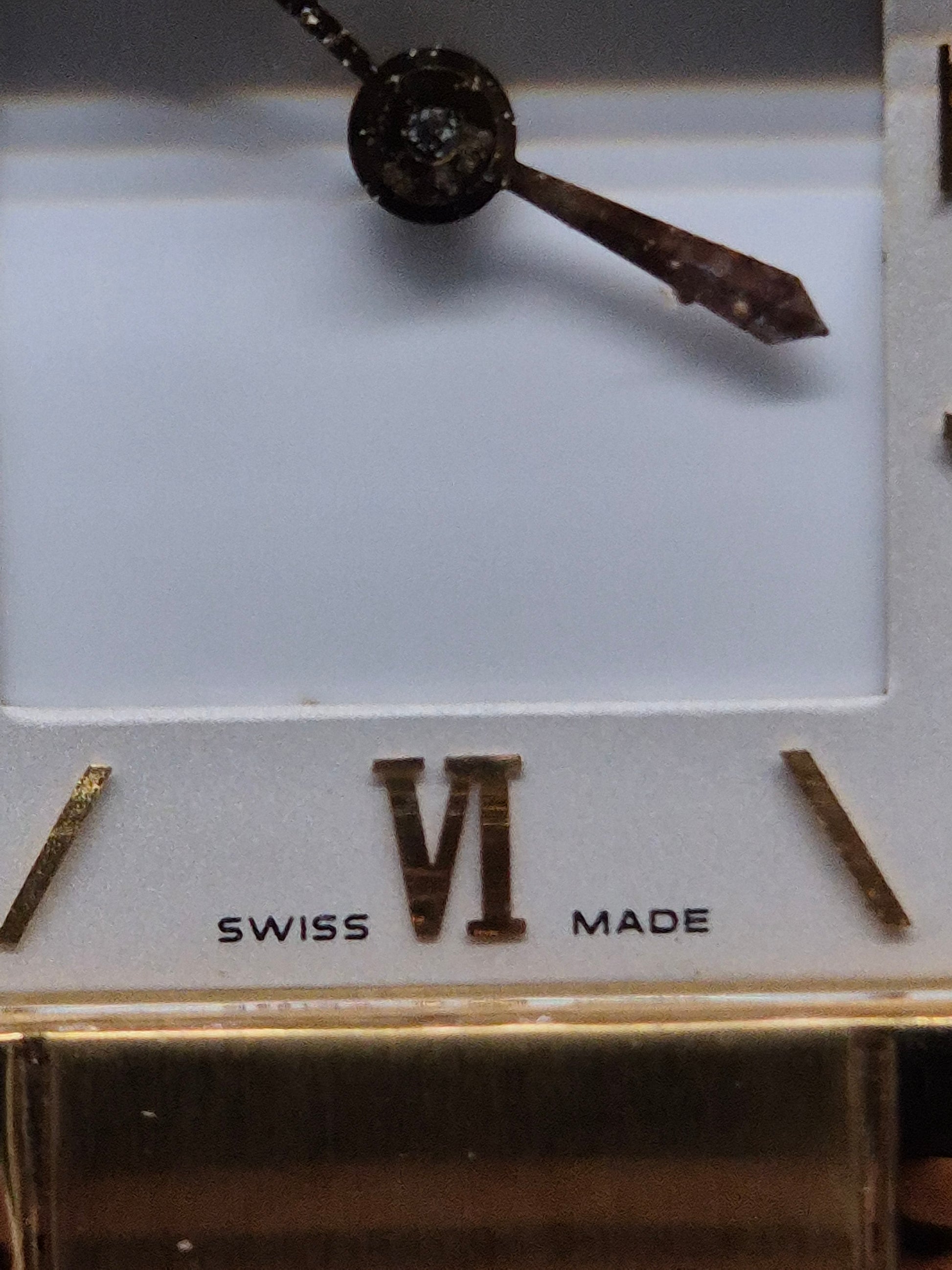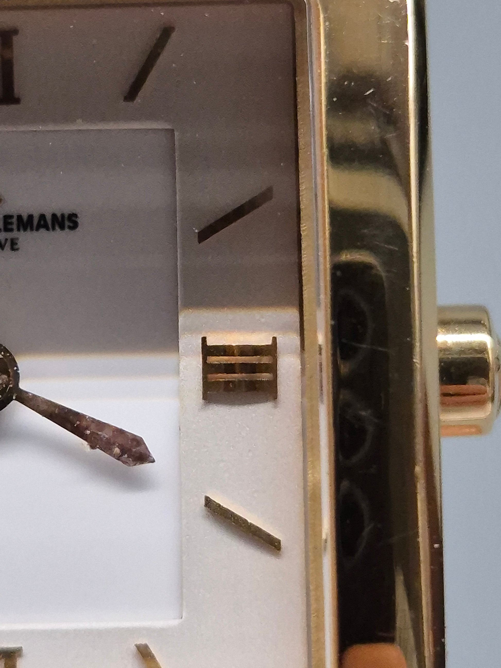 Zifferblatt: Weiß mit goldfarbenen römischen Ziffern und Indexen