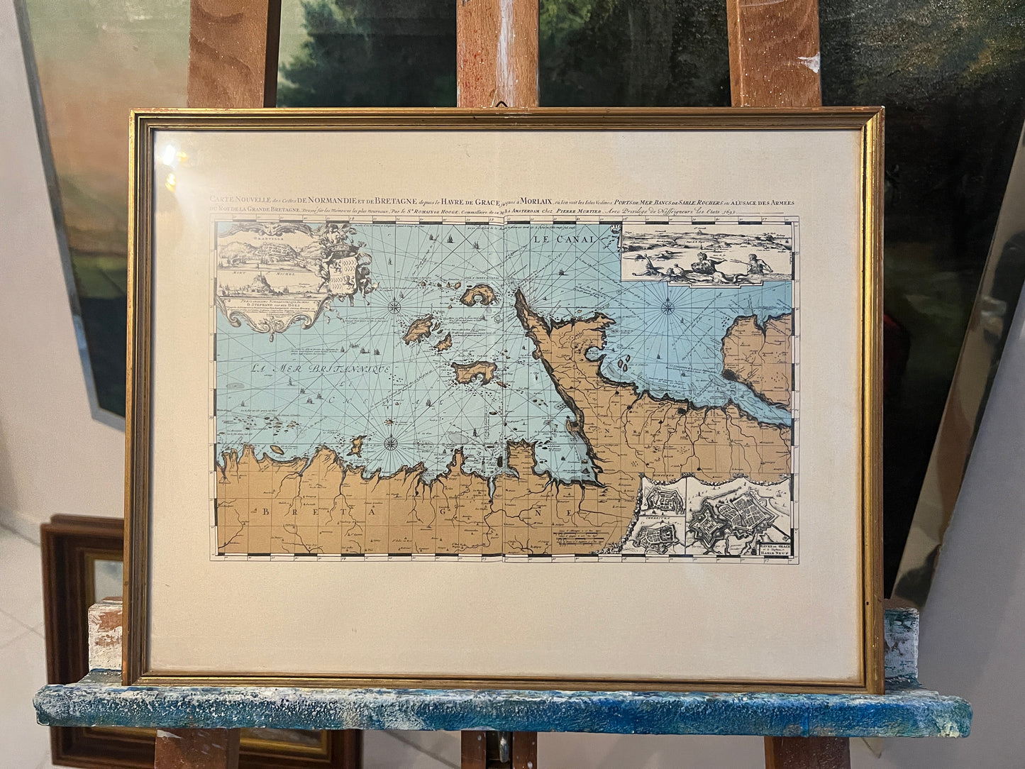 Beschreibung: Diese Grafik aus der Kartografie des 20. Jahrhunderts zeigt eine "Carte Nouvelle des Cofles de Normandie" hinter Glas gerahmt. Die Karte bietet einen neuen Blick auf die Küsten der Normandie. Mit Rahmen misst das Werk 33x41cm und ohne Rahmen 20x32cm. Der Zustand ist sehr gut, wie auf den beigefügten Fotos zu sehen ist.