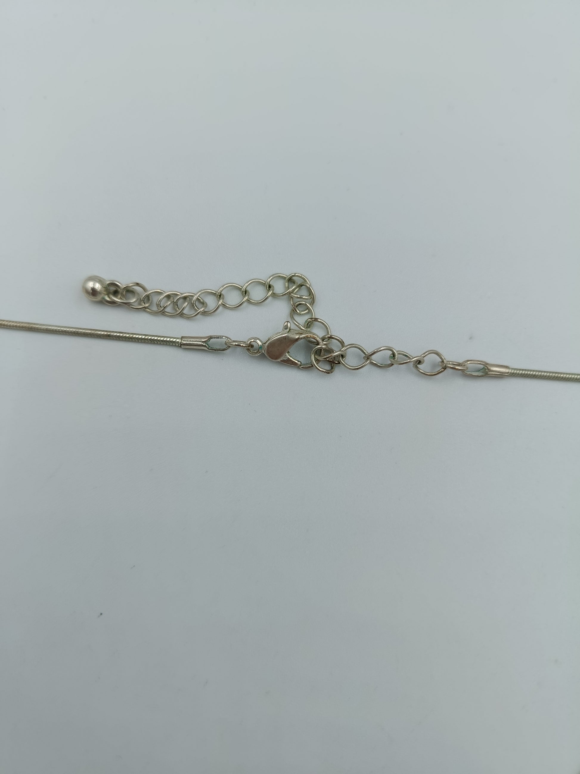 Eine elegante und feminine Halskette, die mit floralen Elementen verziert ist. In der Mitte befindet sich eine große Blüte, die mit rosa Cabochons und funkelnden pinken Strasssteinen besetzt ist. Die Kette hat einen silberfarbenen Schlangenkettenteil mit Verlängerungskettchen, sodass die Länge individuell angepasst werden kann.