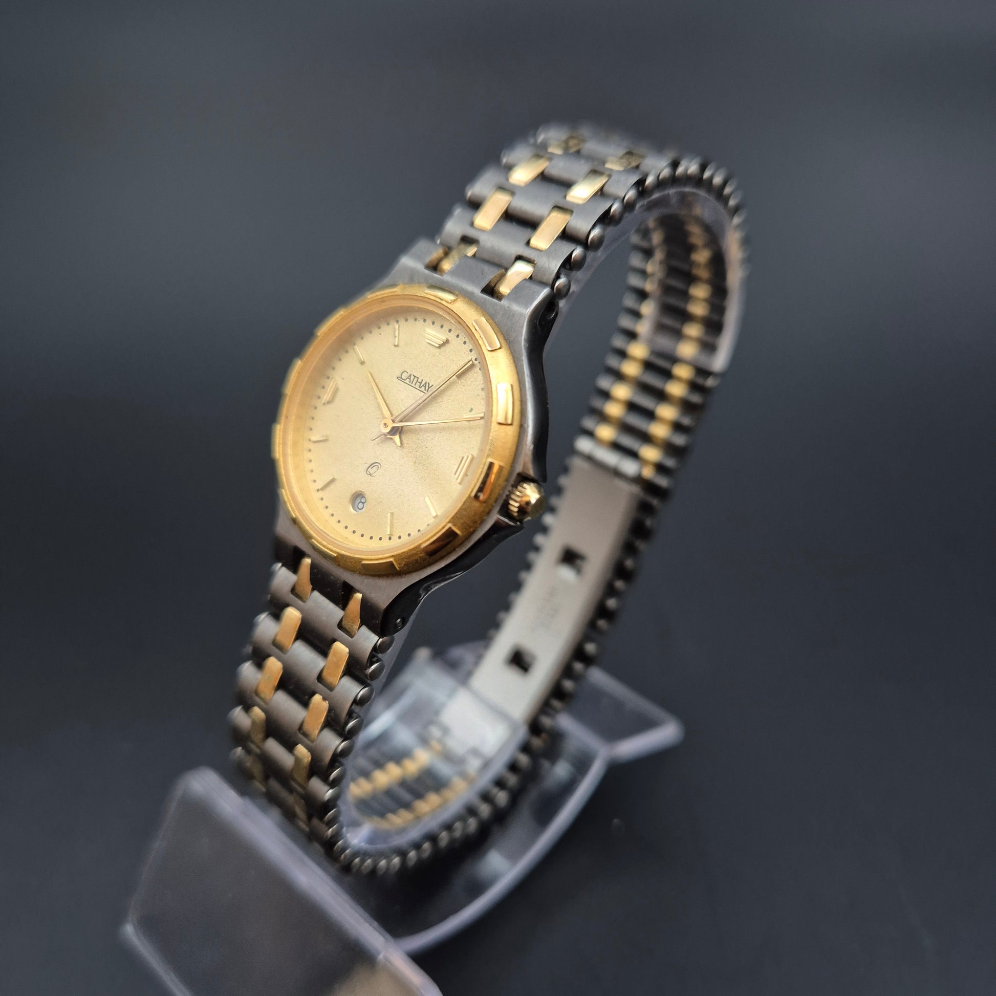 Klassische Cathay Herren Uhr – Bicolor Edelstahlarmband mit Datumsanzeige
