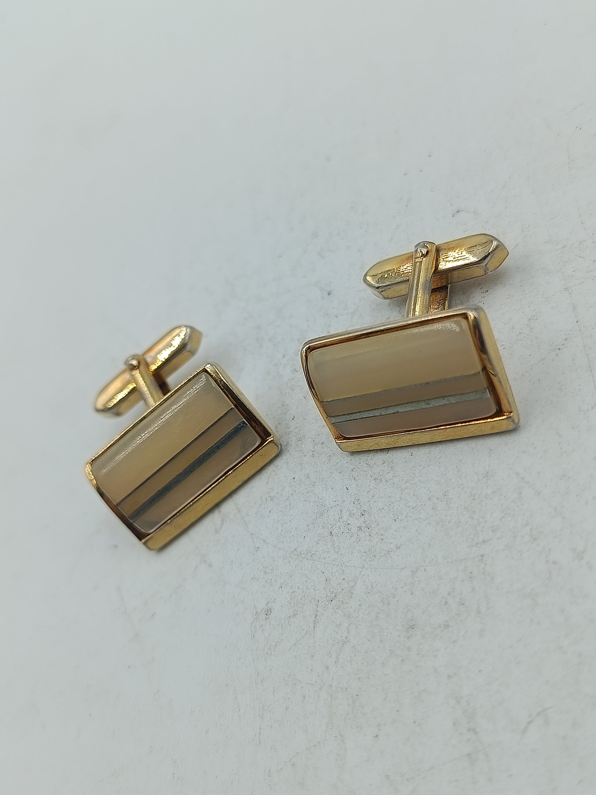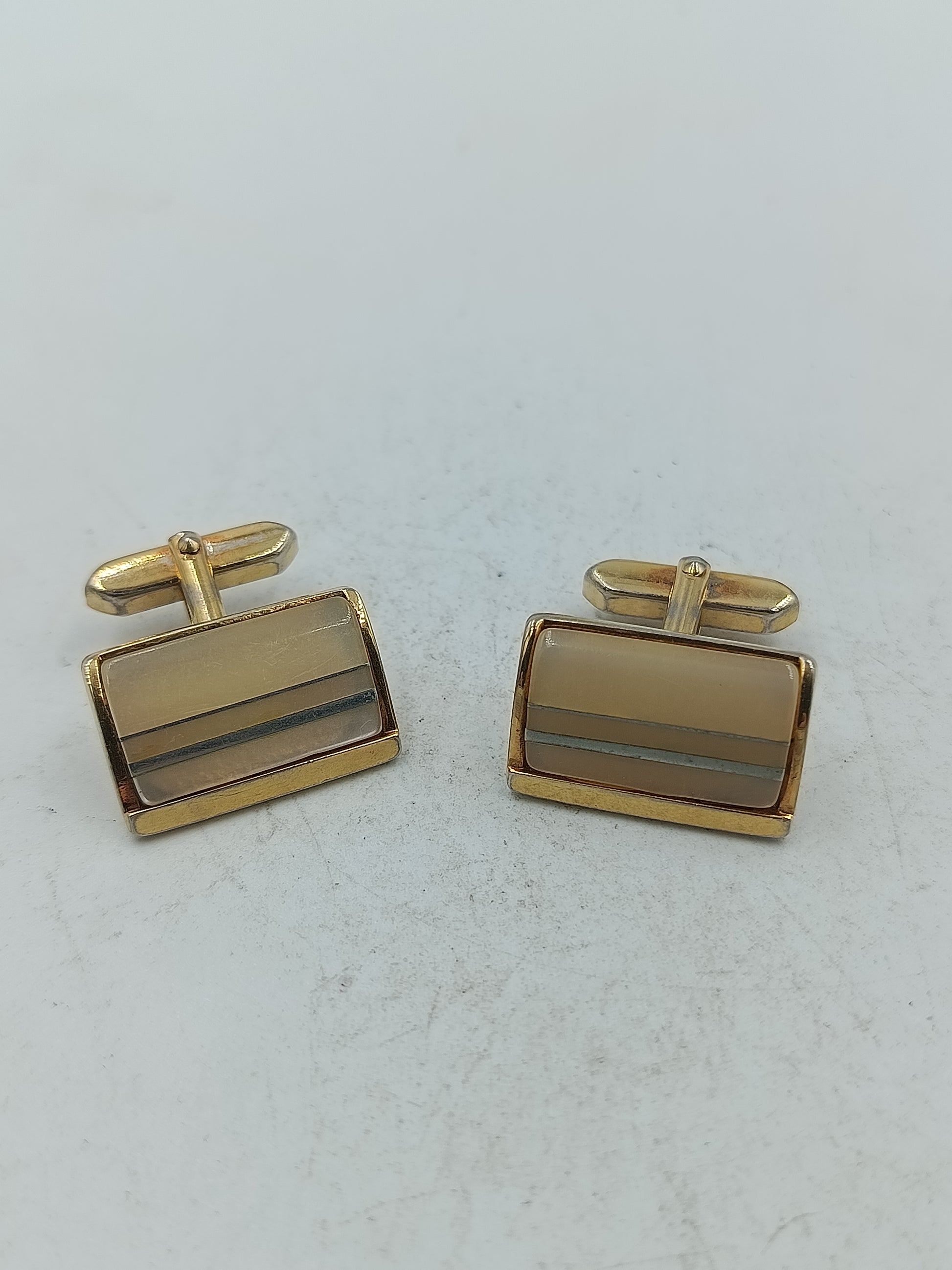 Diese stilvollen Manschettenknöpfe überzeugen durch ihr zurückhaltendes Design in warmer Goldoptik und einen fein abgestuften Streifeneinsatz in harmonischen Beigetönen. Die rechteckige Form wirkt elegant und seriös und macht dieses Paar zu einem idealen Begleiter für Business Outfits festliche Anlässe oder formelle Veranstaltungen. Ein zeitloses Accessoire mit ruhiger Ausstrahlung.