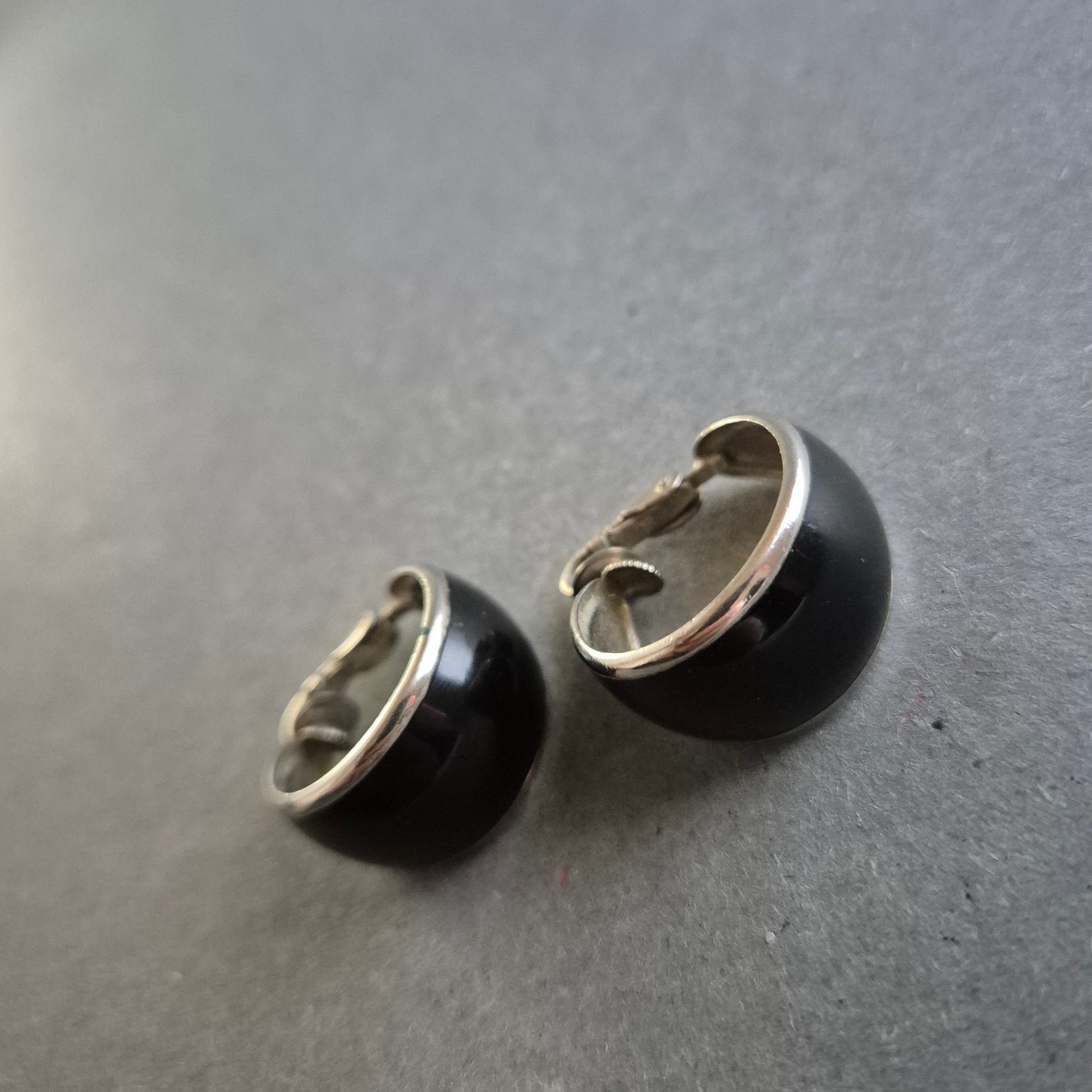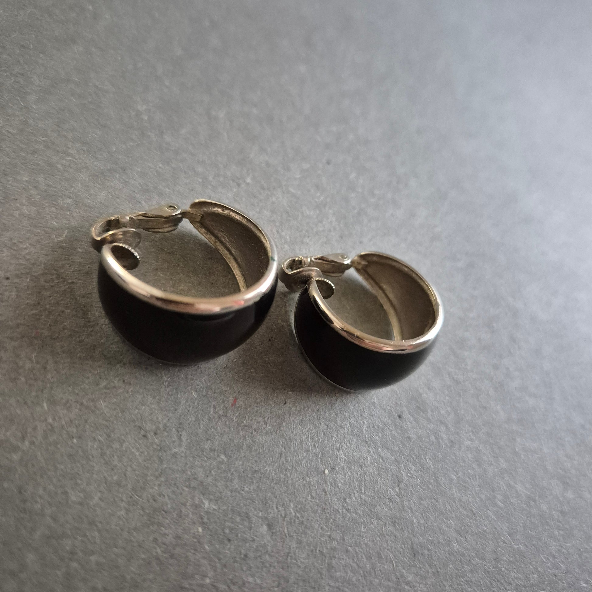 Klassische schwarze Clip-Ohrringe mit silberfarbenem Rand