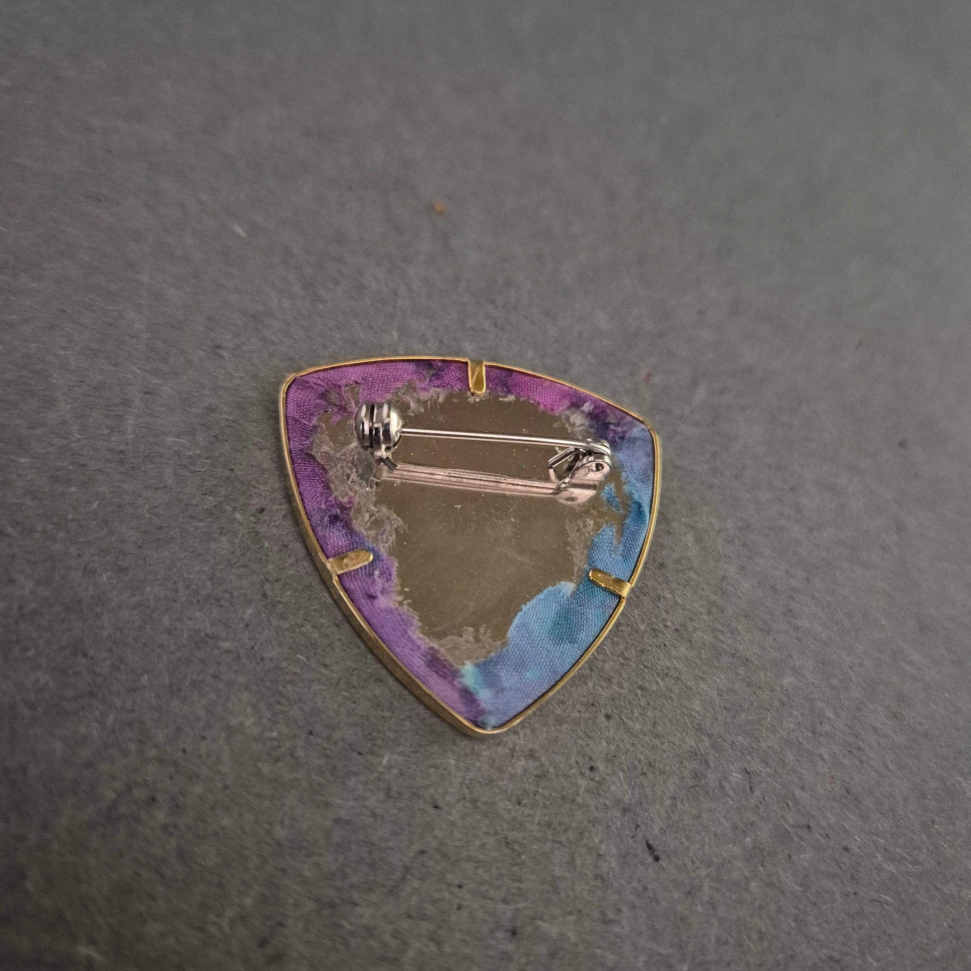 Künstlerische Brosche mit Glitzereffekt – Lila-Türkis Design in Goldrahmen