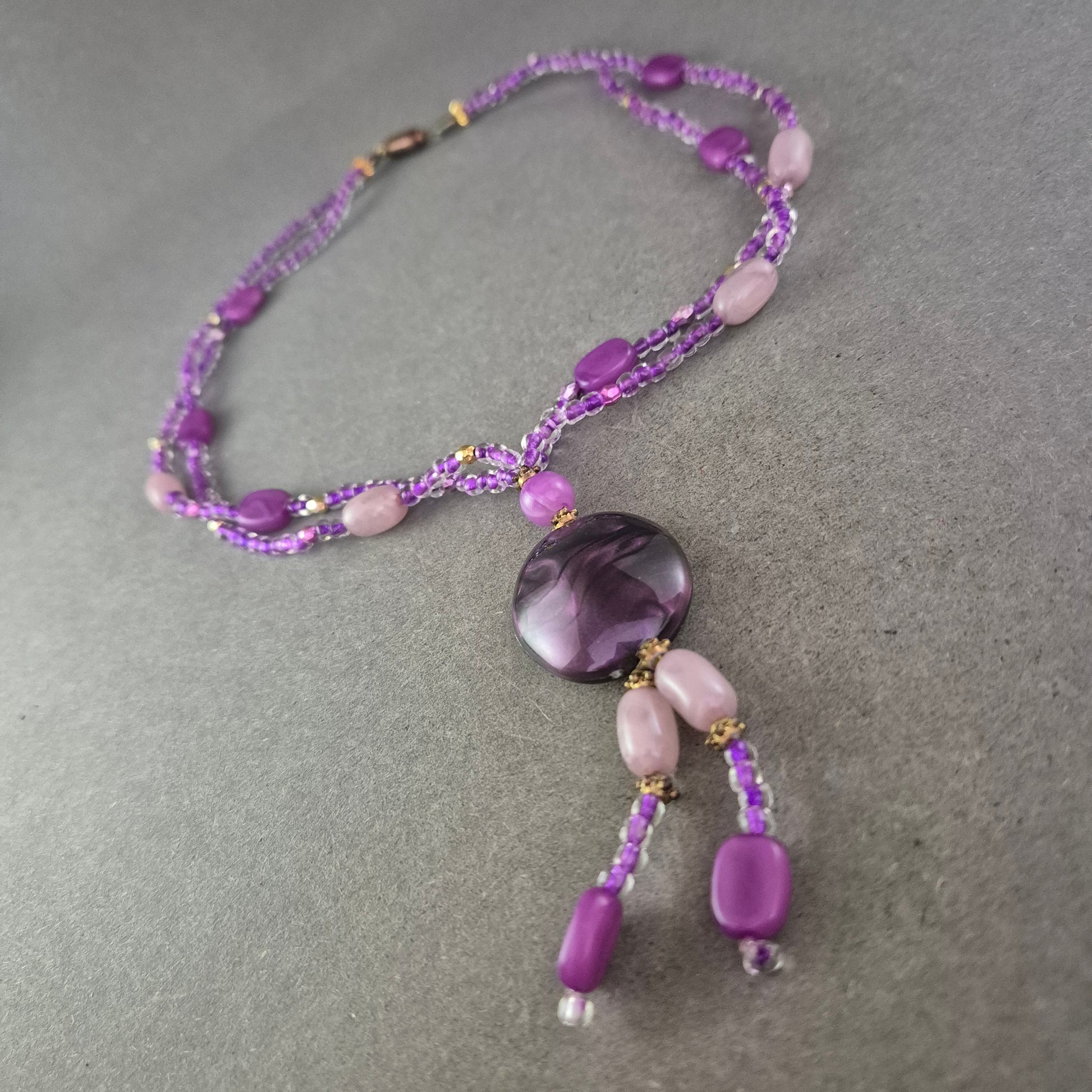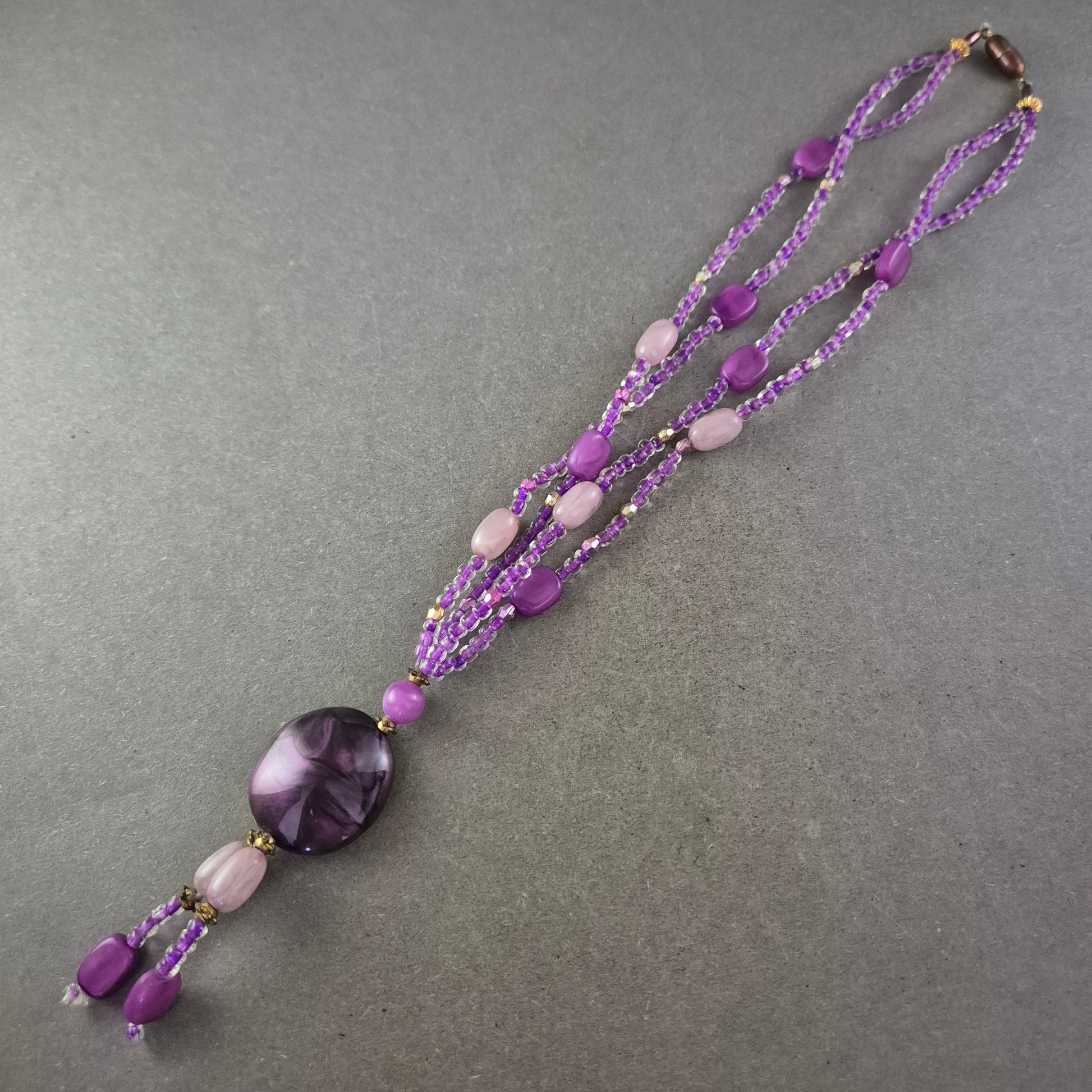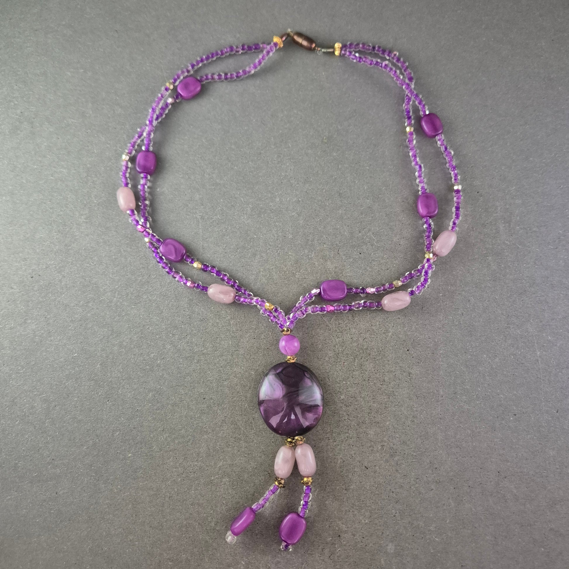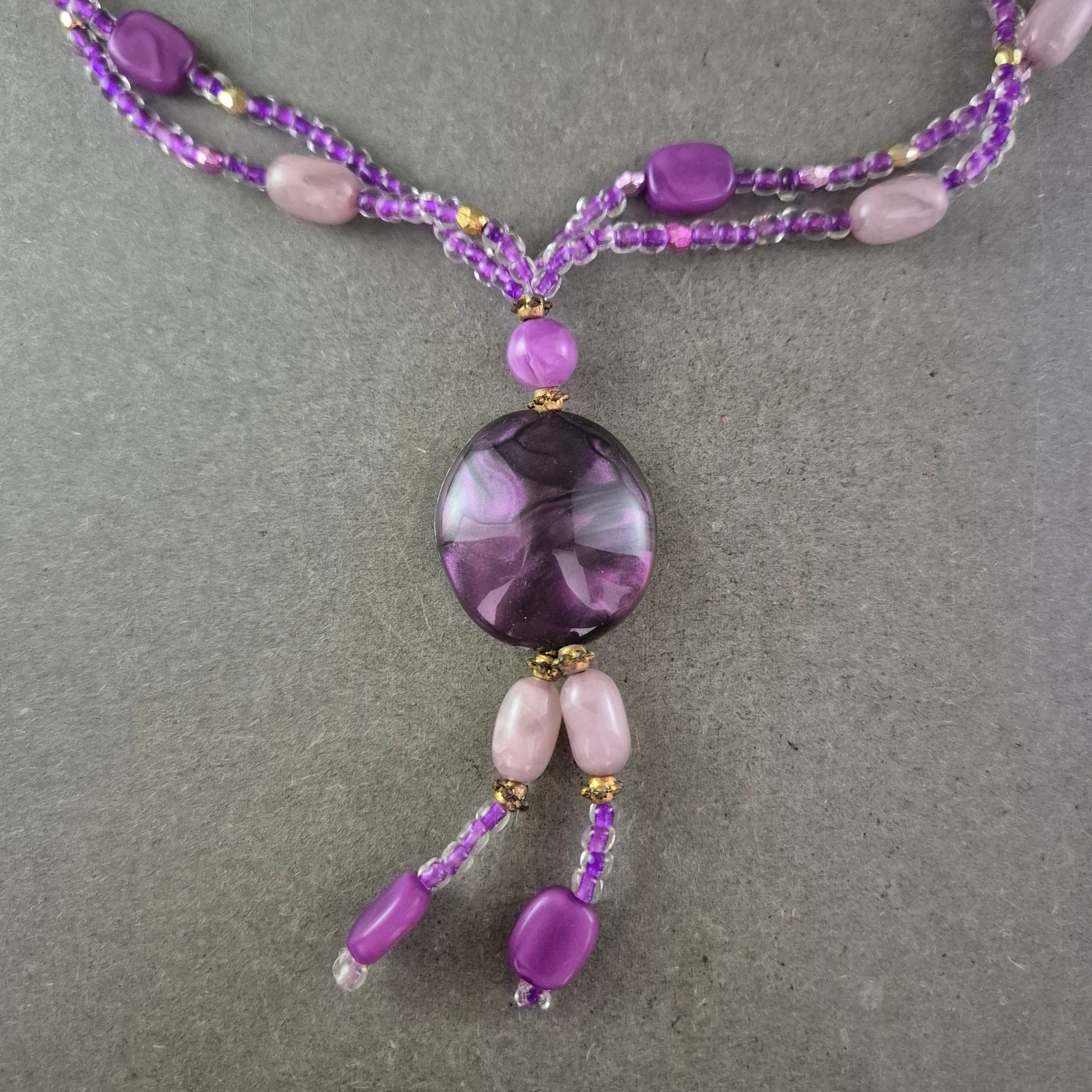 Lila Perlen Kette mit großem Anhänger – Verspielter Ethno Look