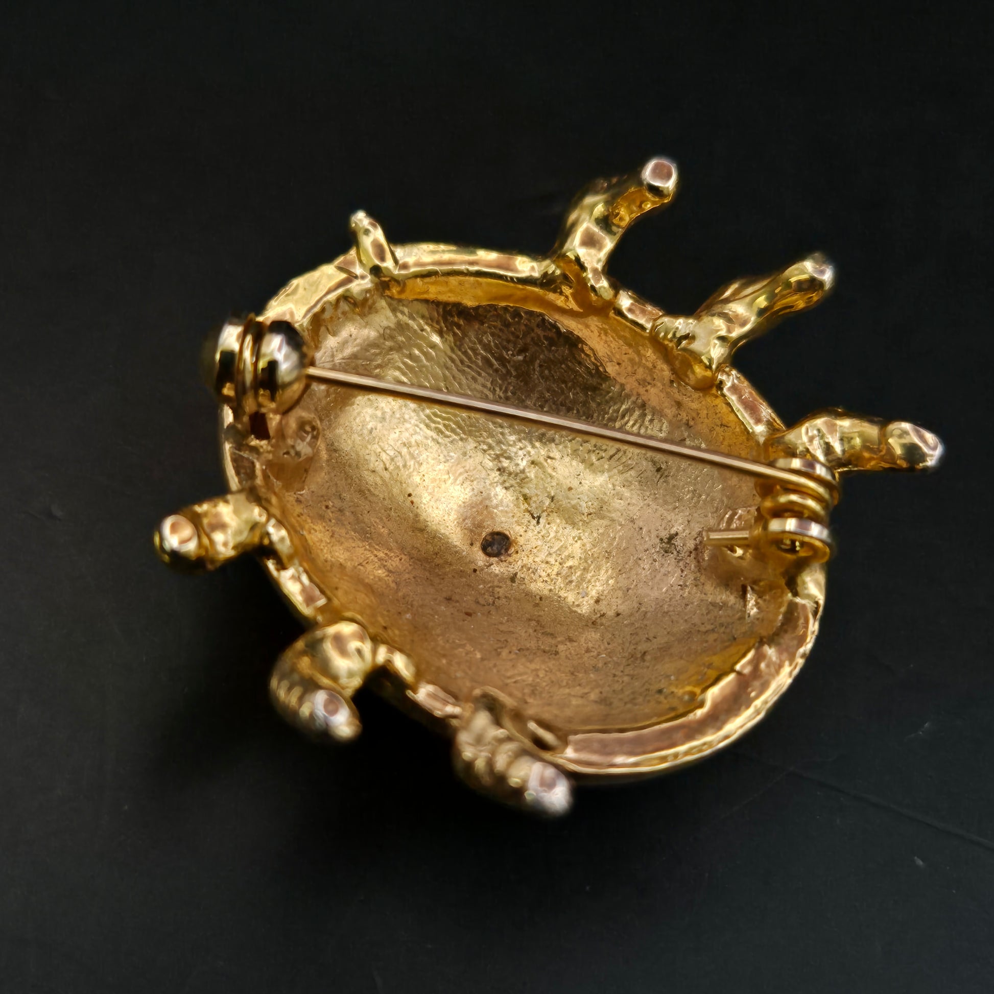 Marienkäfer Brosche – Vergoldet mit roten und schwarzen Emaille-Akzenten