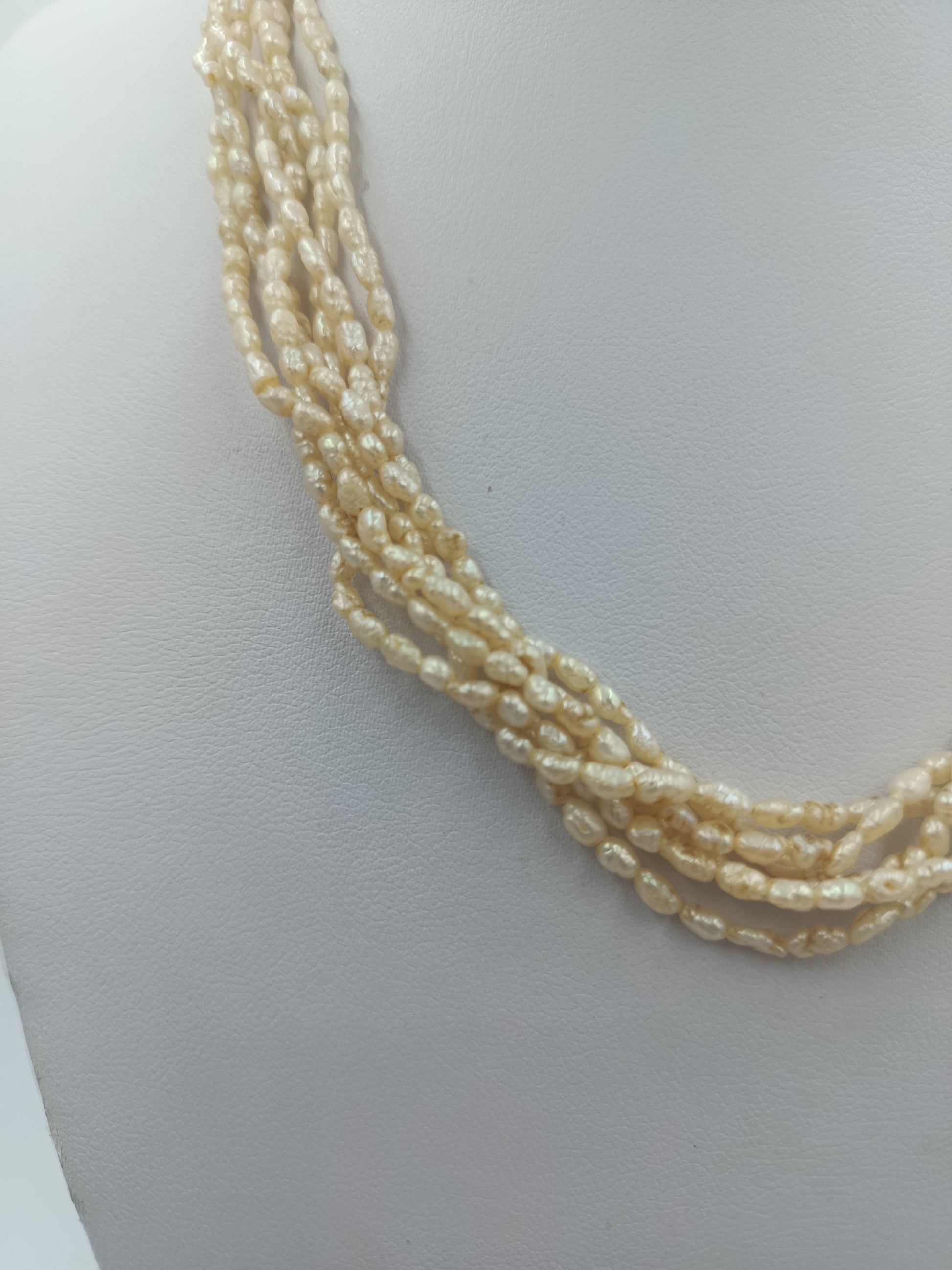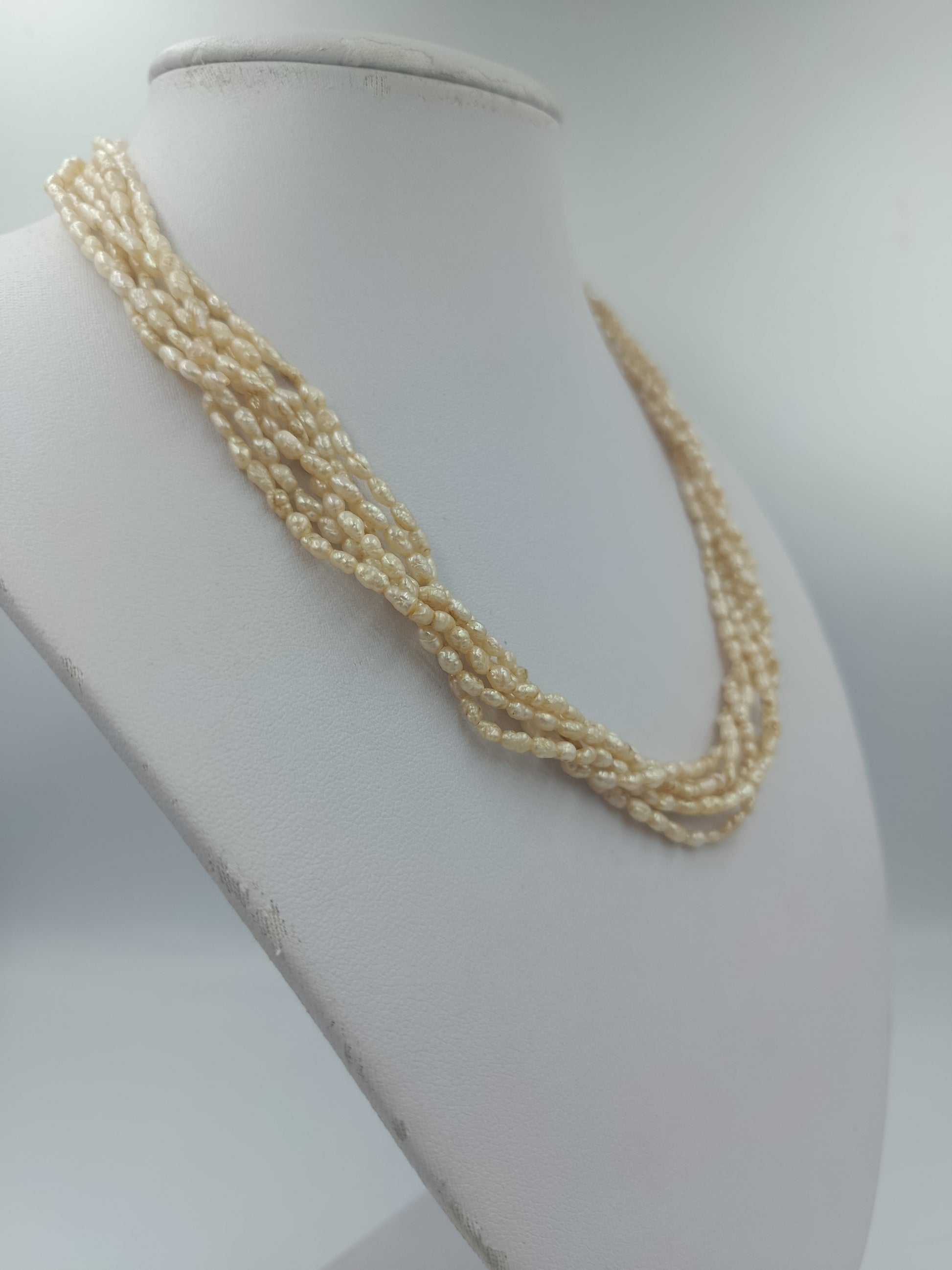 Mehrreihige Perlenkette mit kleinen Zuchtperlen in Cremeweiß