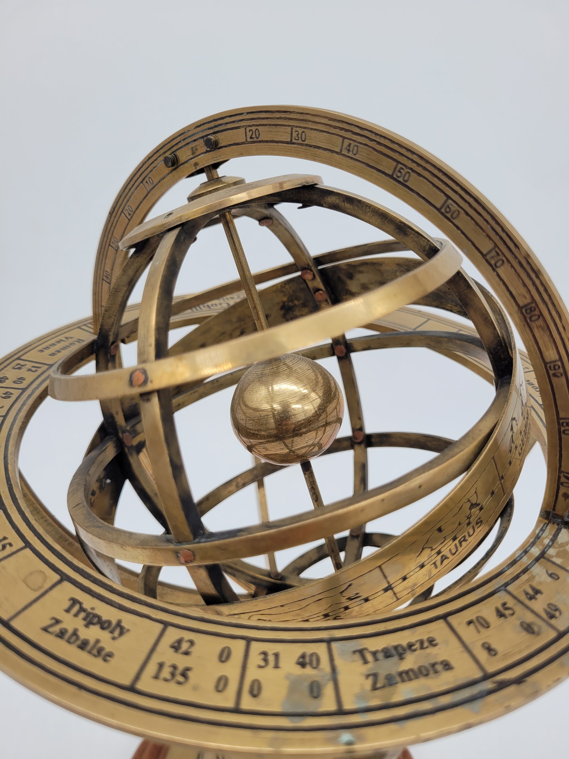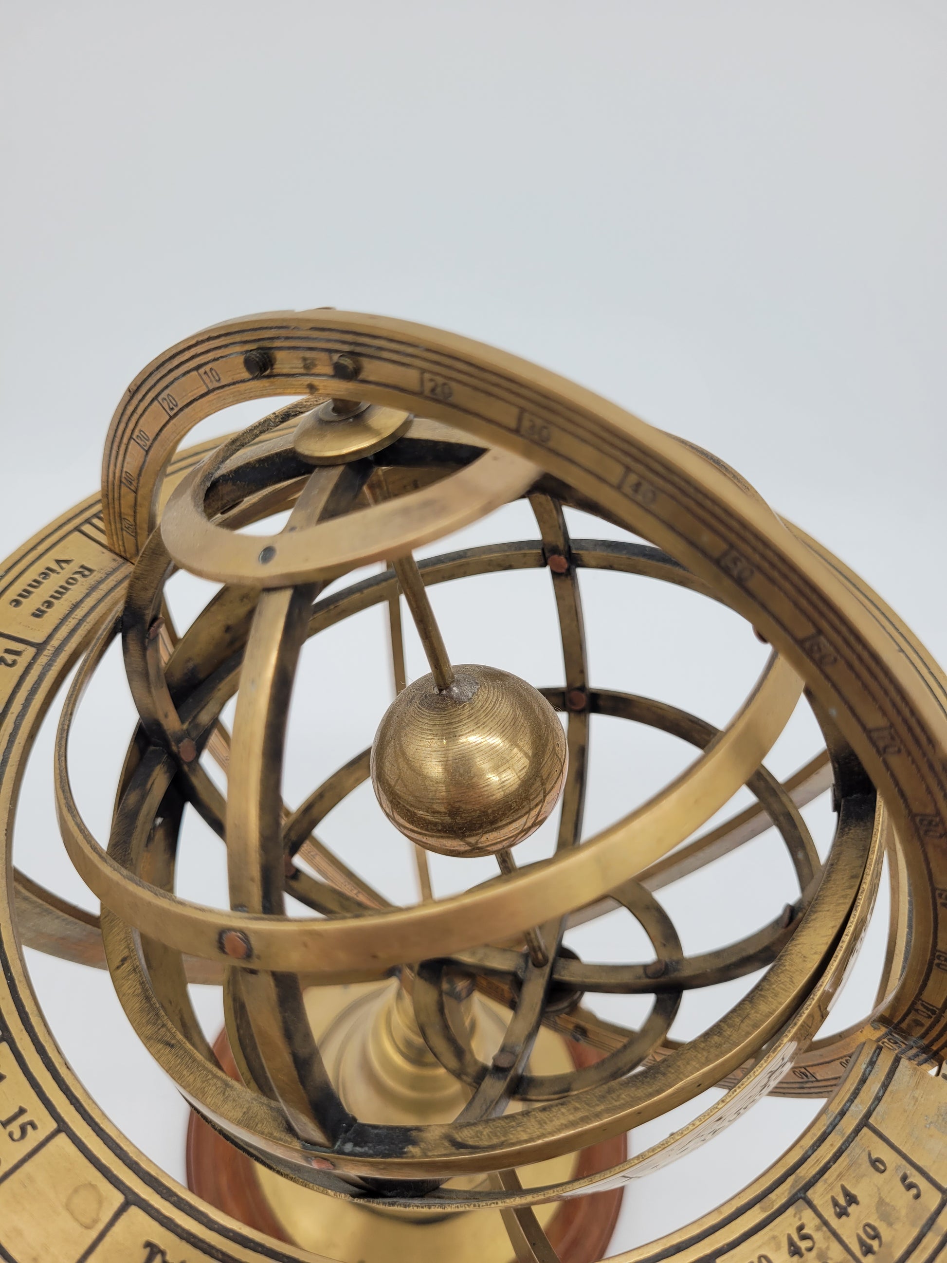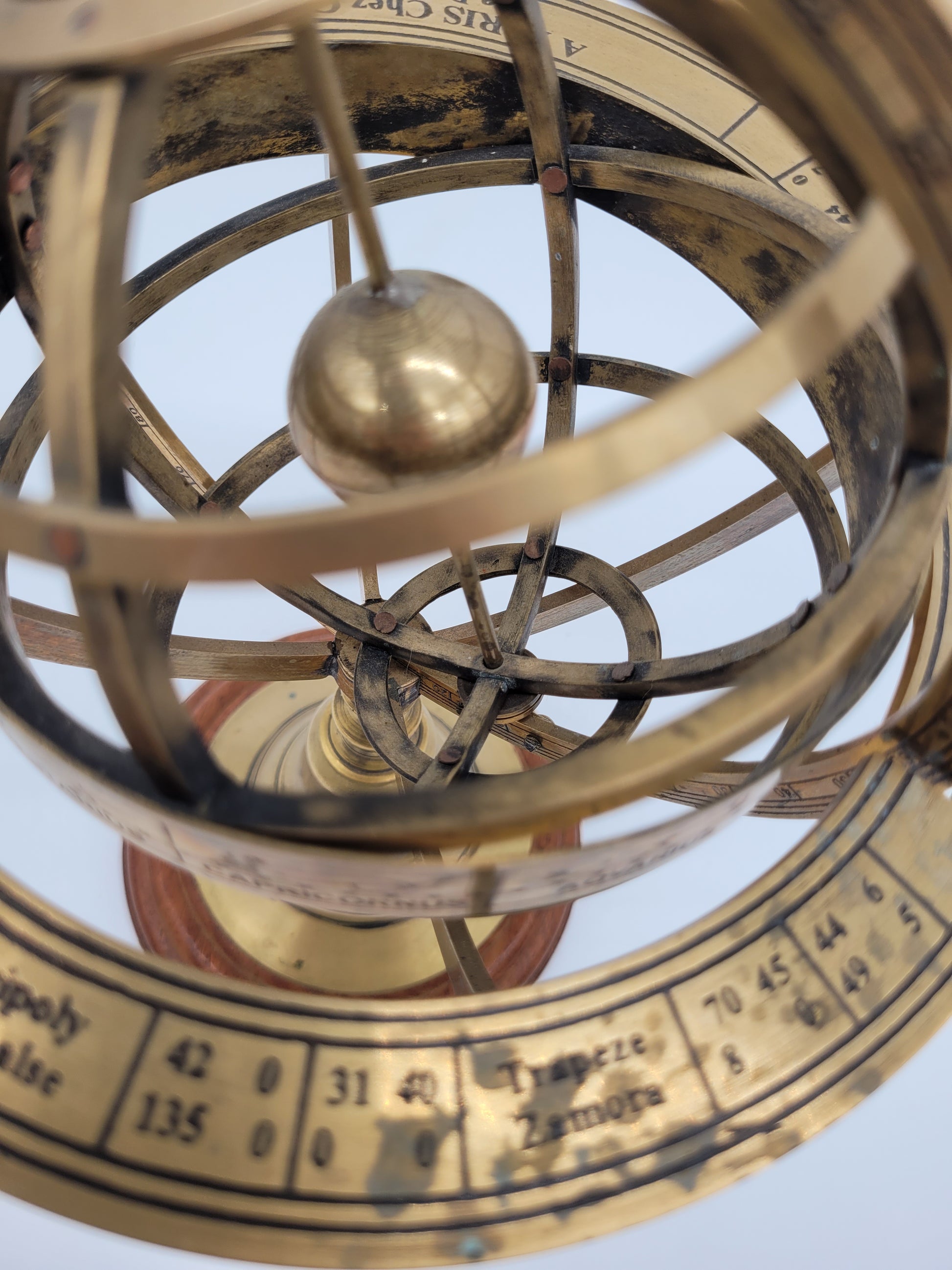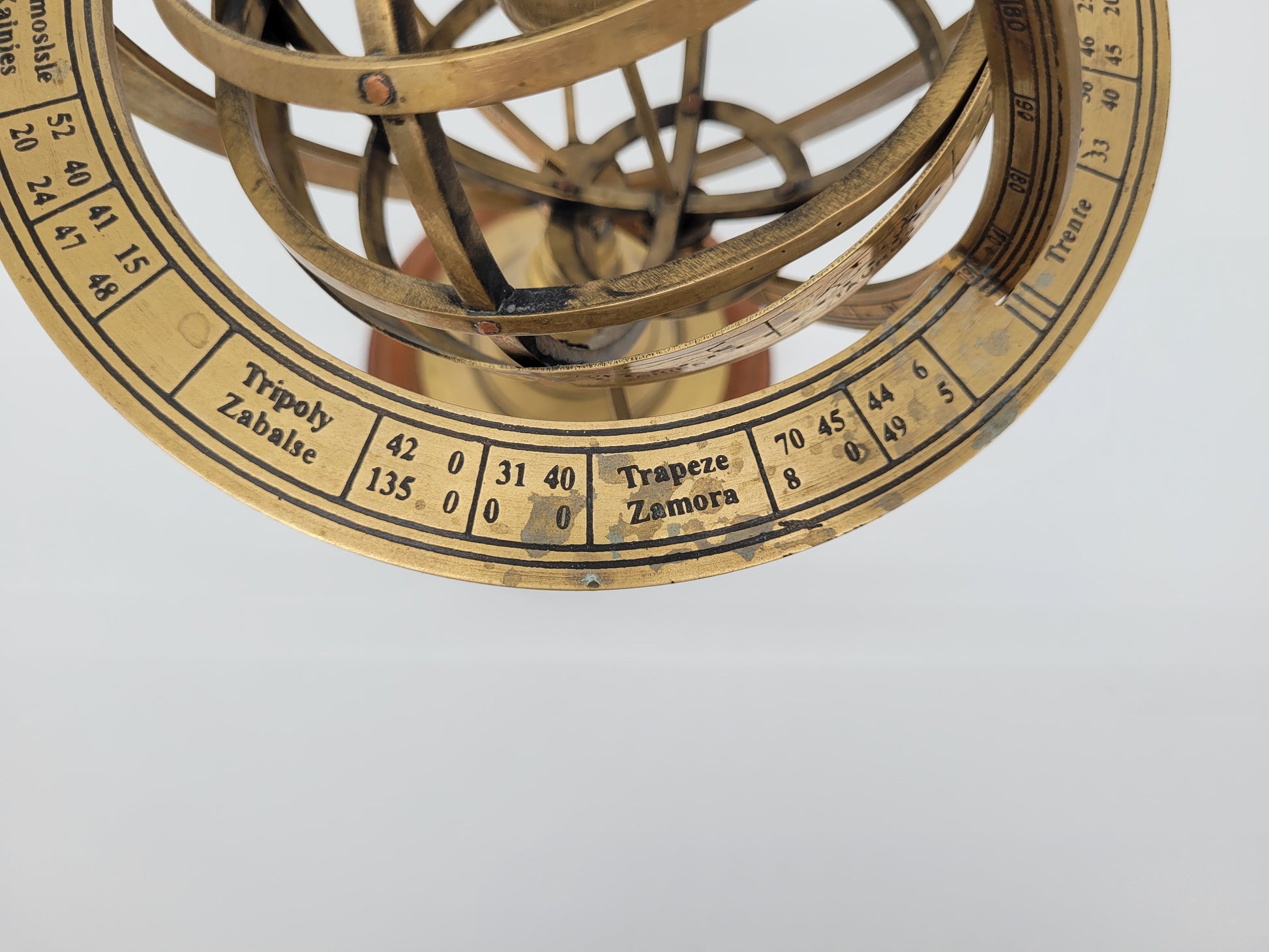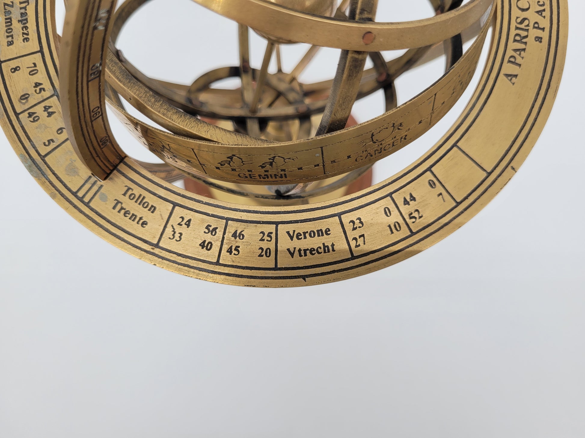 Messing Armillarsphäre Weltmaschine auf Holzsockel APARIS Chez G P Ache Royalle
