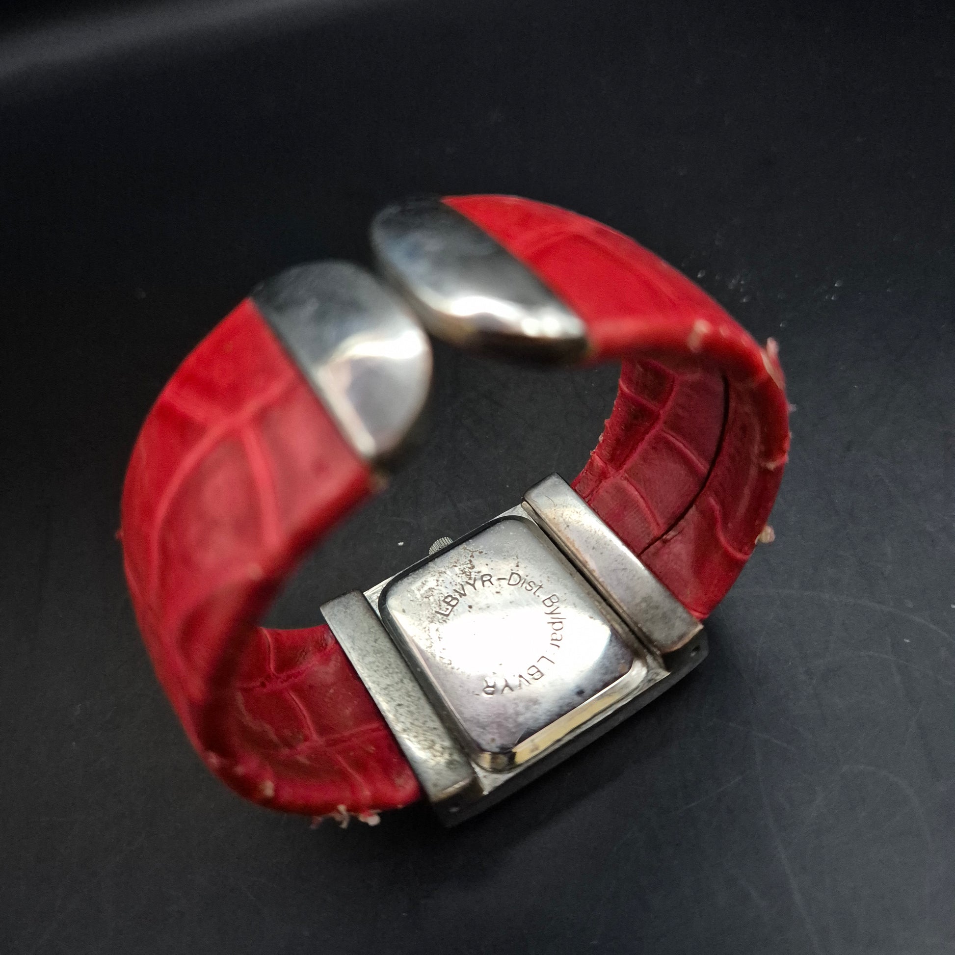 Moderne Damen Uhr mit rotem Lederarmband und rechteckigem Gehäuse