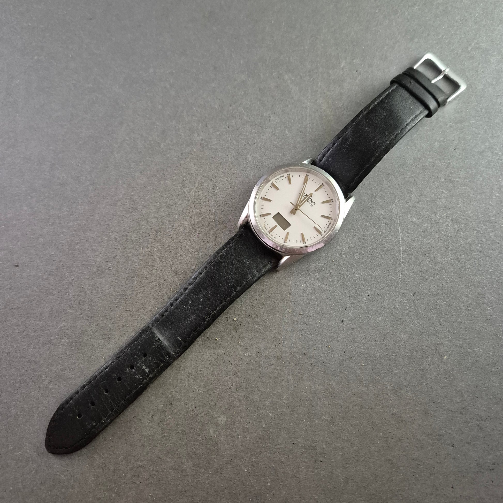 Diese moderne Herren Uhr von Dugena vereint präzise Funktechnologie mit einem klaren, funktionalen Design. Das robuste silberfarbene Gehäuse und das klassische schwarze Lederarmband umschließen ein minimalistisches weißes Zifferblatt mit deutlichen Indizes und einem diskreten Digitaldisplay für zusätzliche Informationen. Das kratzfeste Saphirglas und die Wasserdichtigkeit bis 5 bar machen sie zu einem idealen Begleiter für den anspruchsvollen Alltag. Eine hochwertige Uhr, die Tradition und Innovation elegant verbindet.