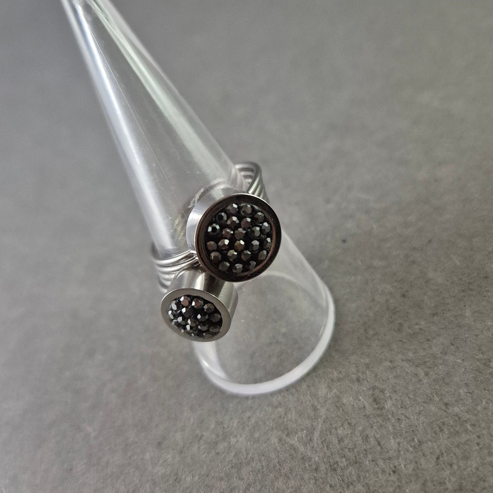 Moderner Edelstahlring mit schwarzen Kristallen – verstellbar