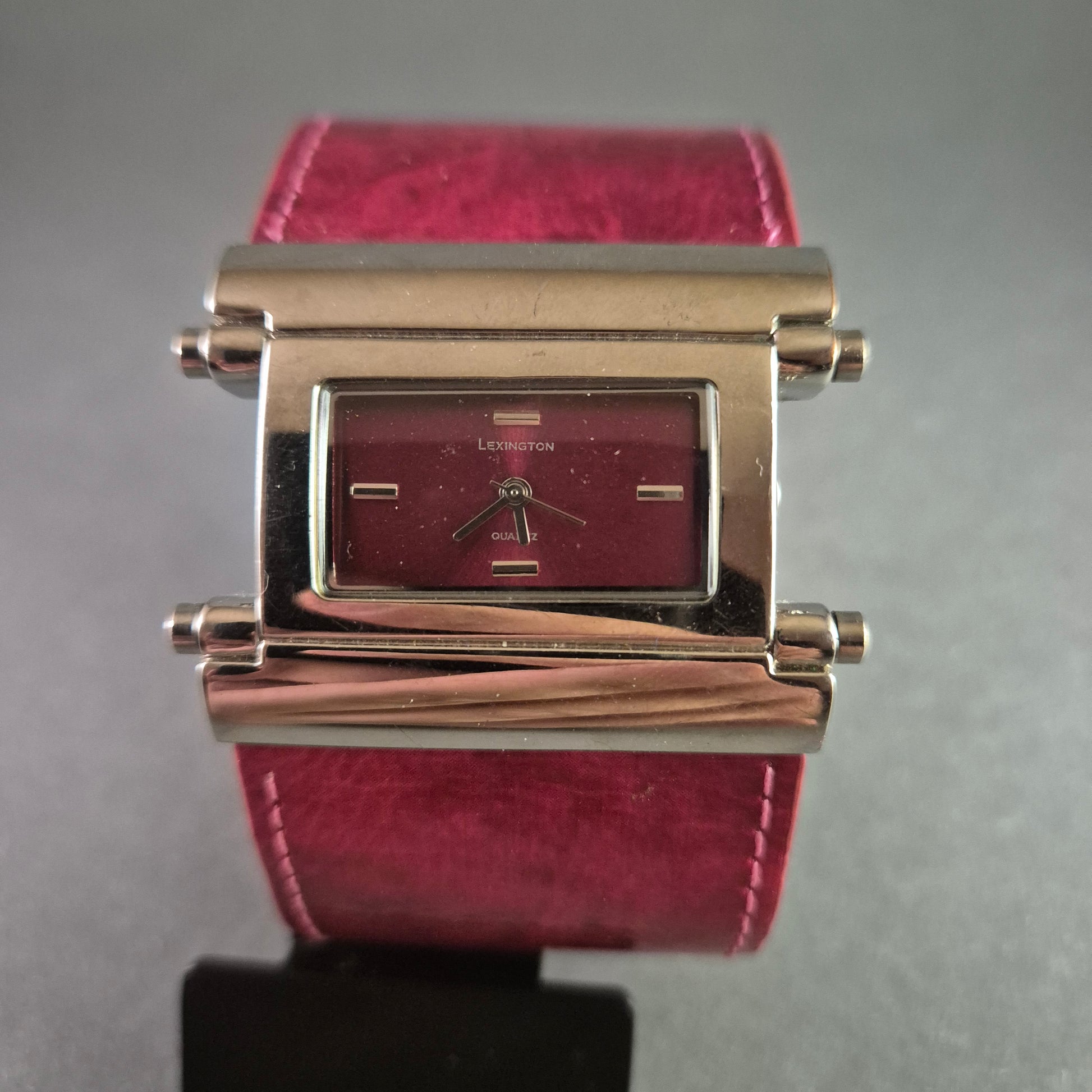 Diese stilvolle Lexington Damenarmbanduhr besticht durch ihr modernes Design und ihre auffällige Farbgebung. Das rechteckige Gehäuse in glänzendem Edelstahl wird durch das kräftige rote Armband und das passende Zifferblatt perfekt ergänzt. Ein hochwertiger Begleiter, der sowohl modische Akzente setzt als auch praktische Funktionalität bietet.