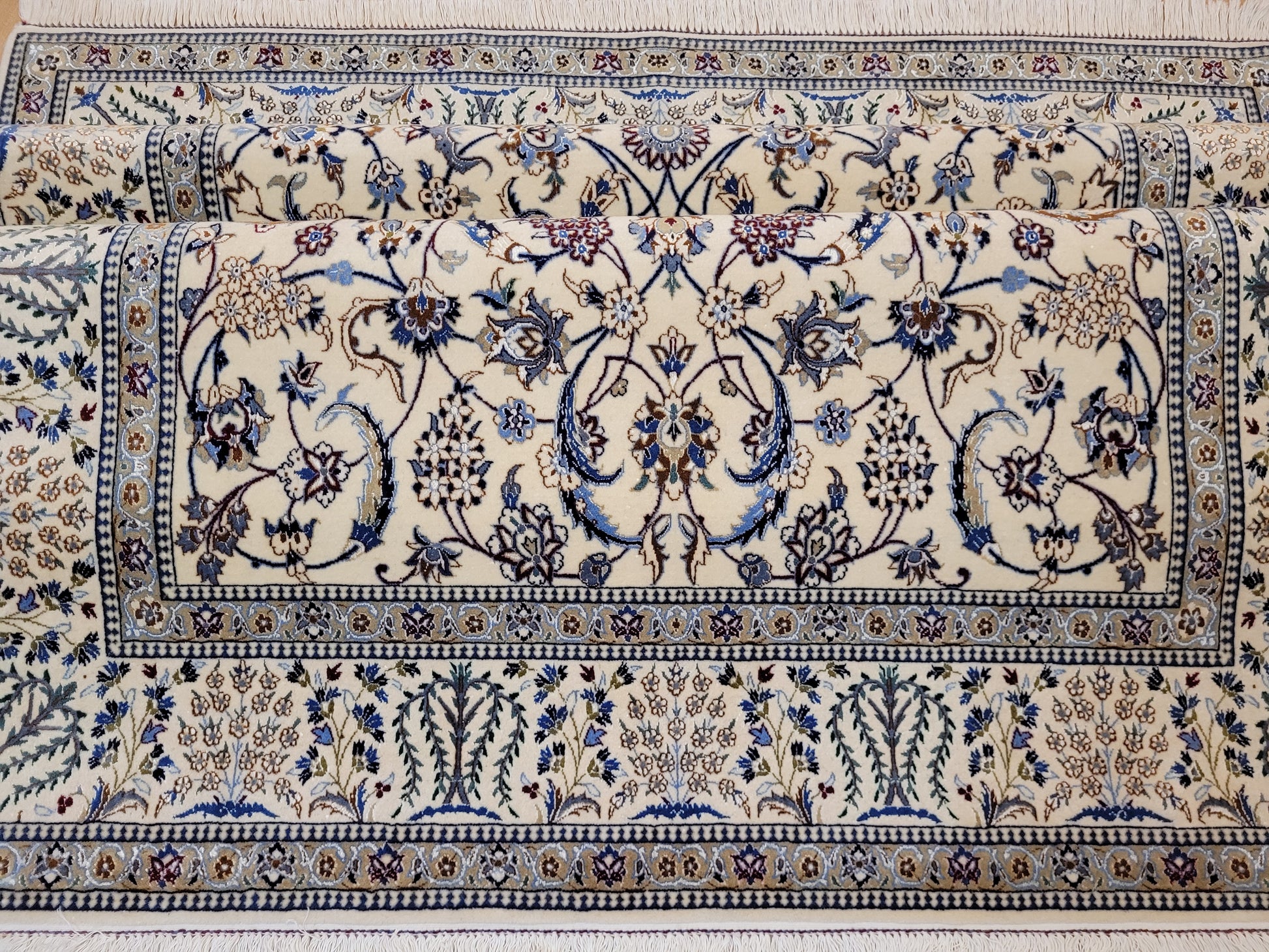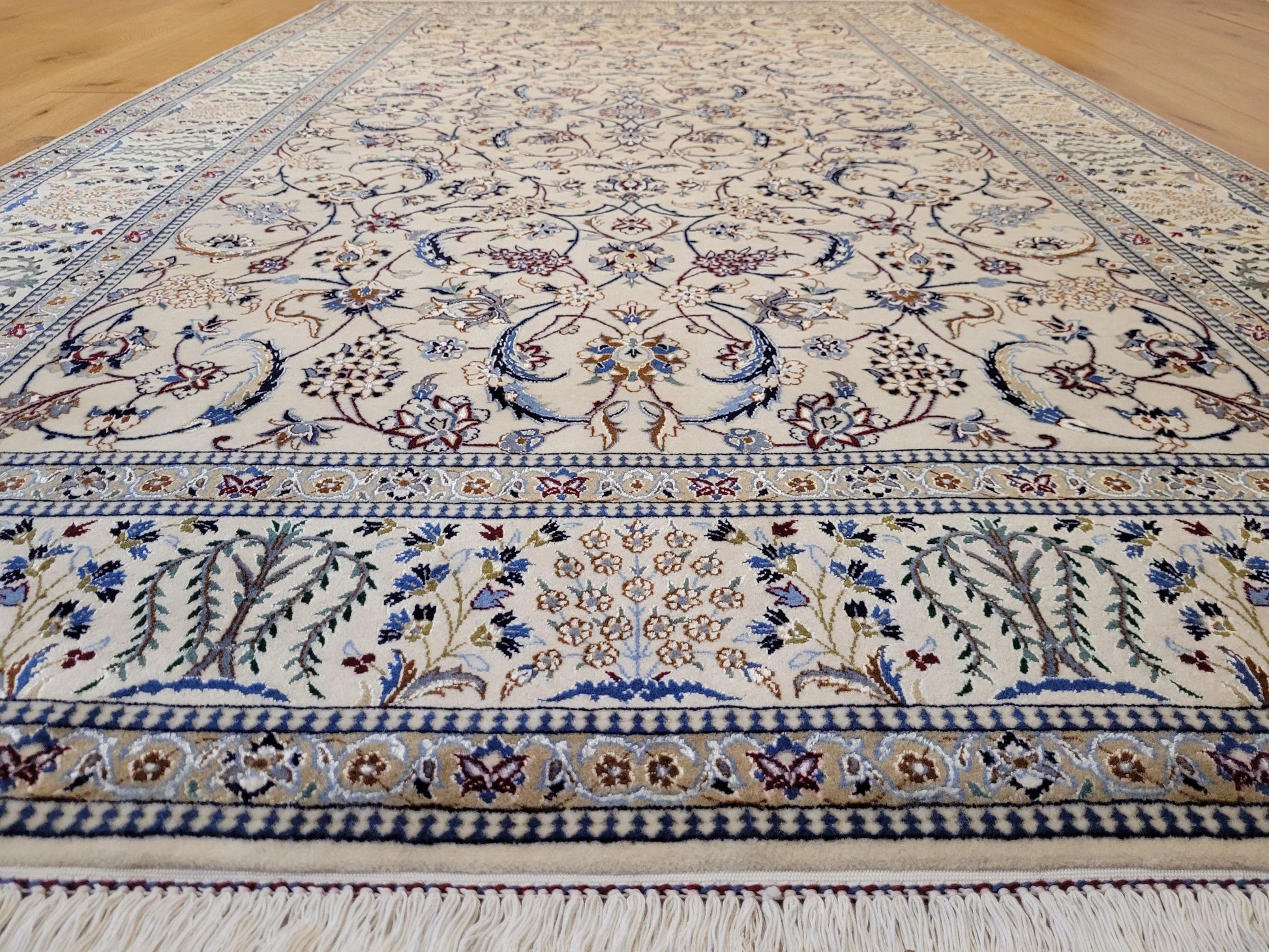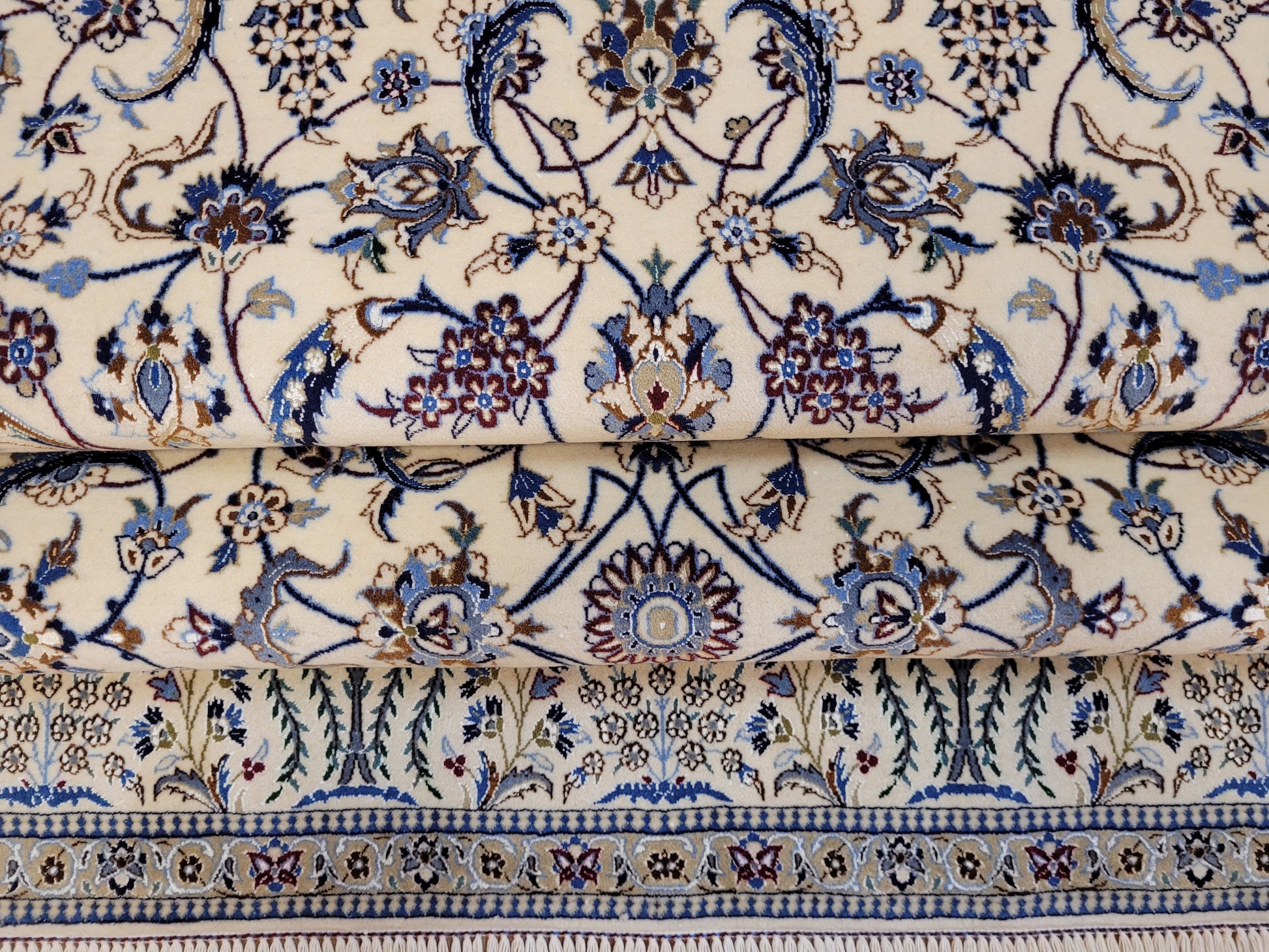 Nain Teppich Korkwolle mit Seide feine Handknüpfung cremeblau