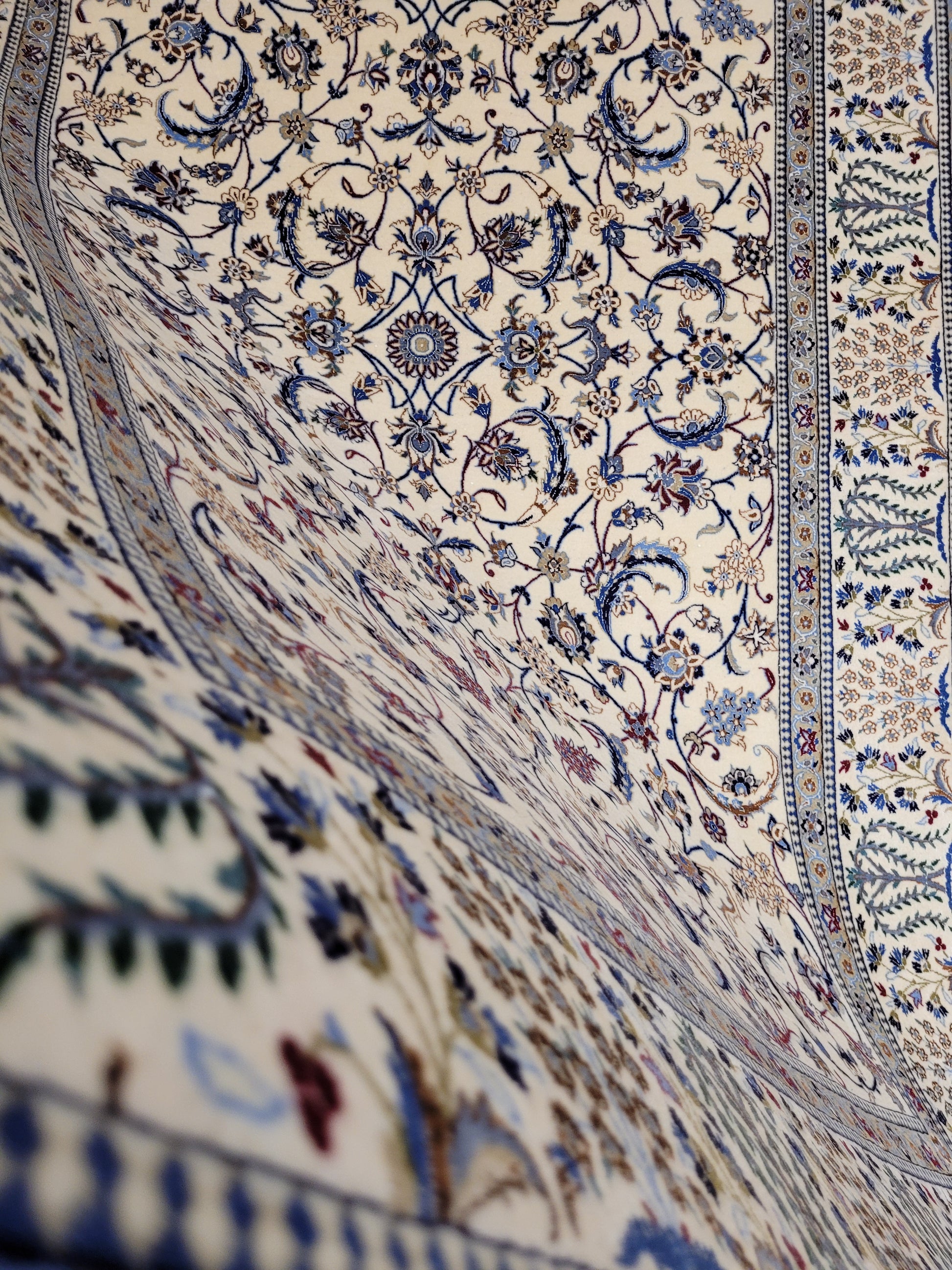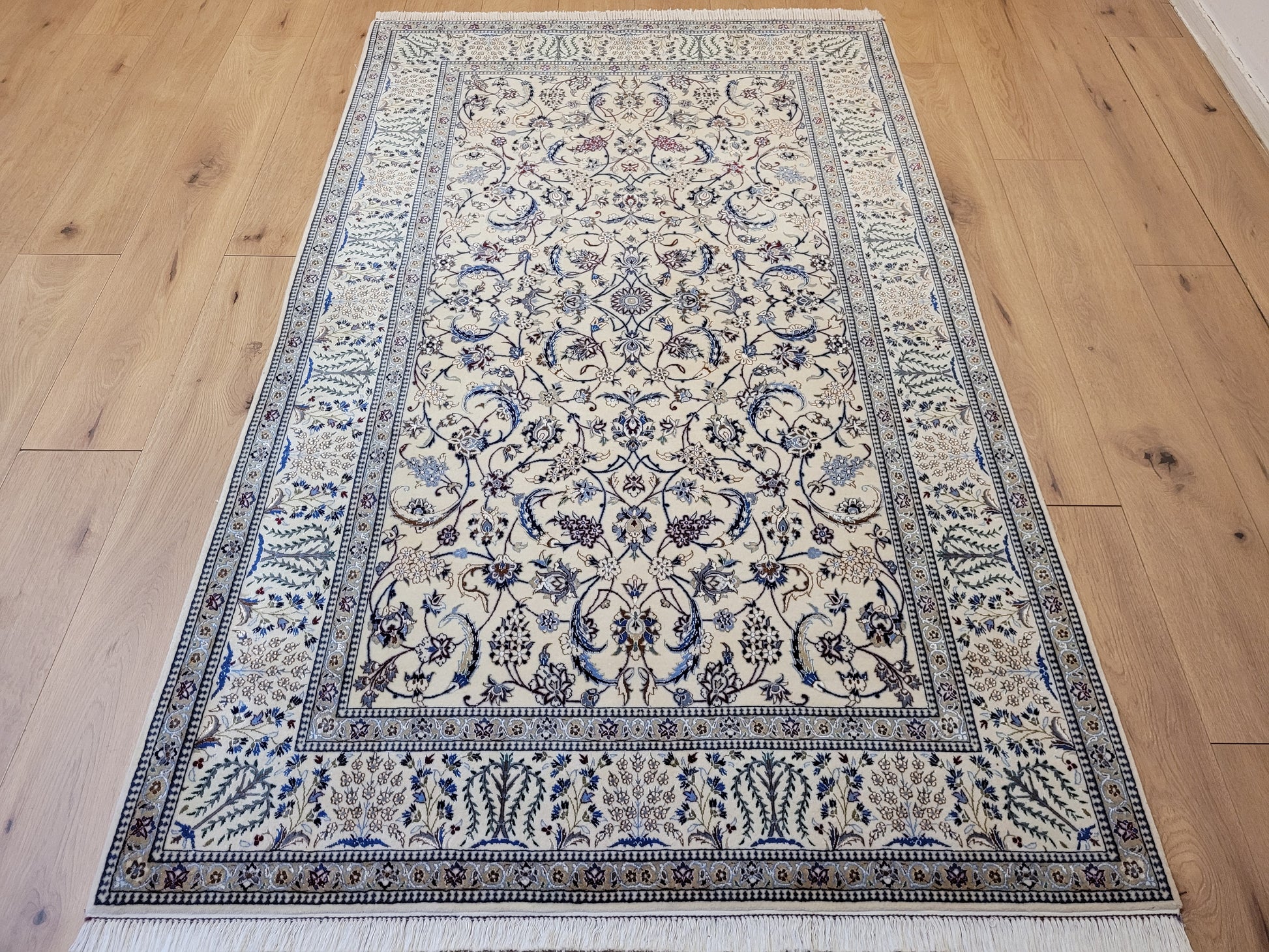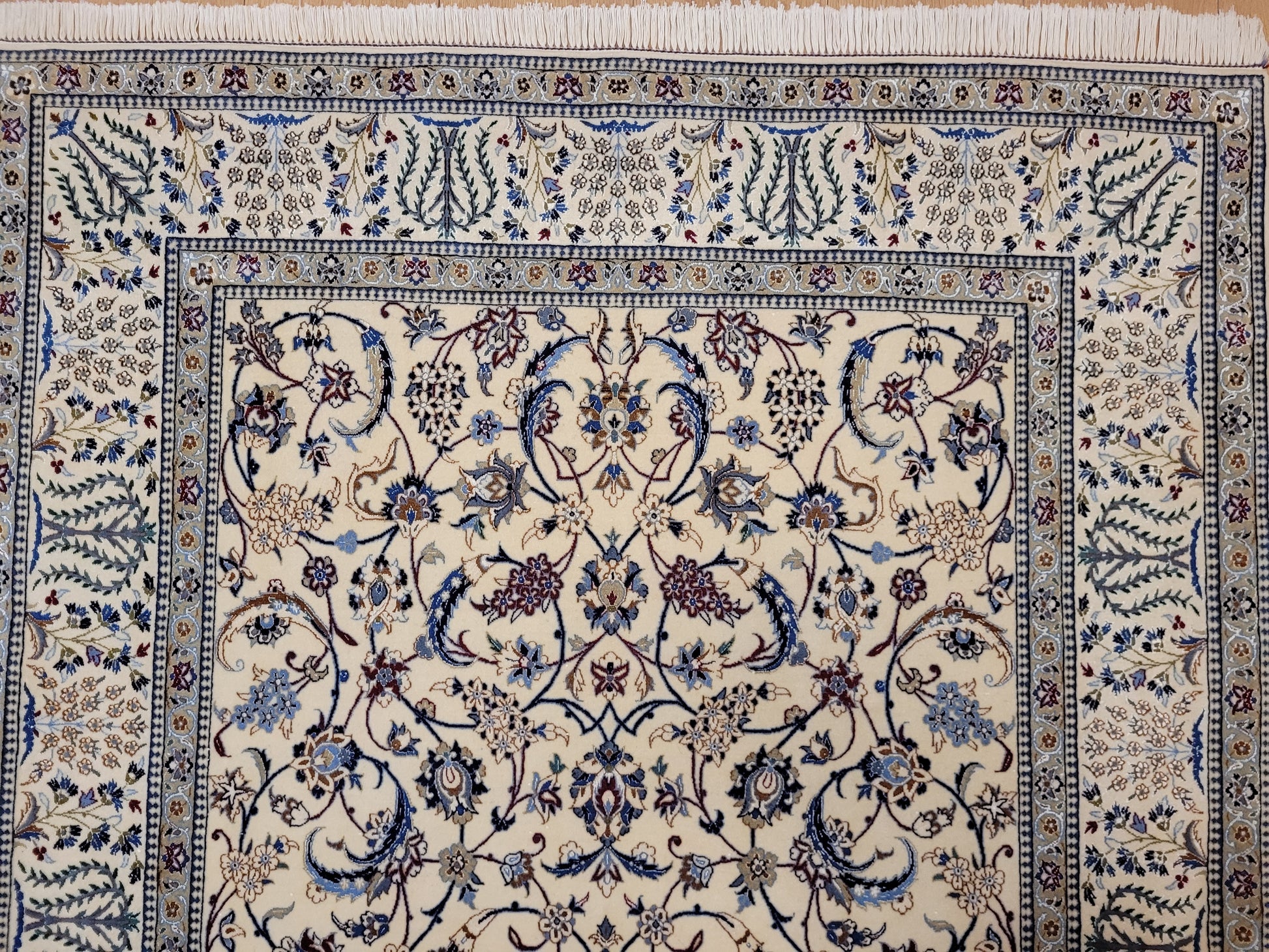 Nain Teppich Korkwolle mit Seide feine Handknüpfung cremeblau