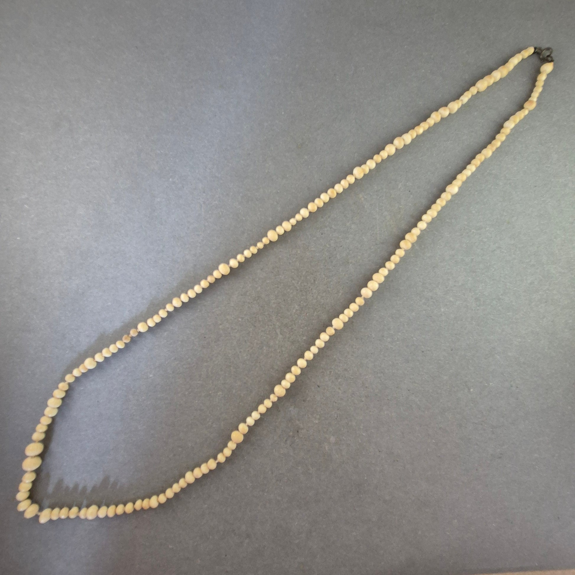 Diese schlichte und doch charmante Halskette besteht aus feinen, naturbelassenen Holzperlen in verschiedenen Größen. Ihre matte Oberfläche und das warme Beige verleihen dem Schmuckstück eine organische Ausstrahlung und machen es zum perfekten Begleiter für natürliche Looks im Boho- oder Ethno-Stil. Dank ihres leichten Gewichts ist sie besonders angenehm zu tragen.
