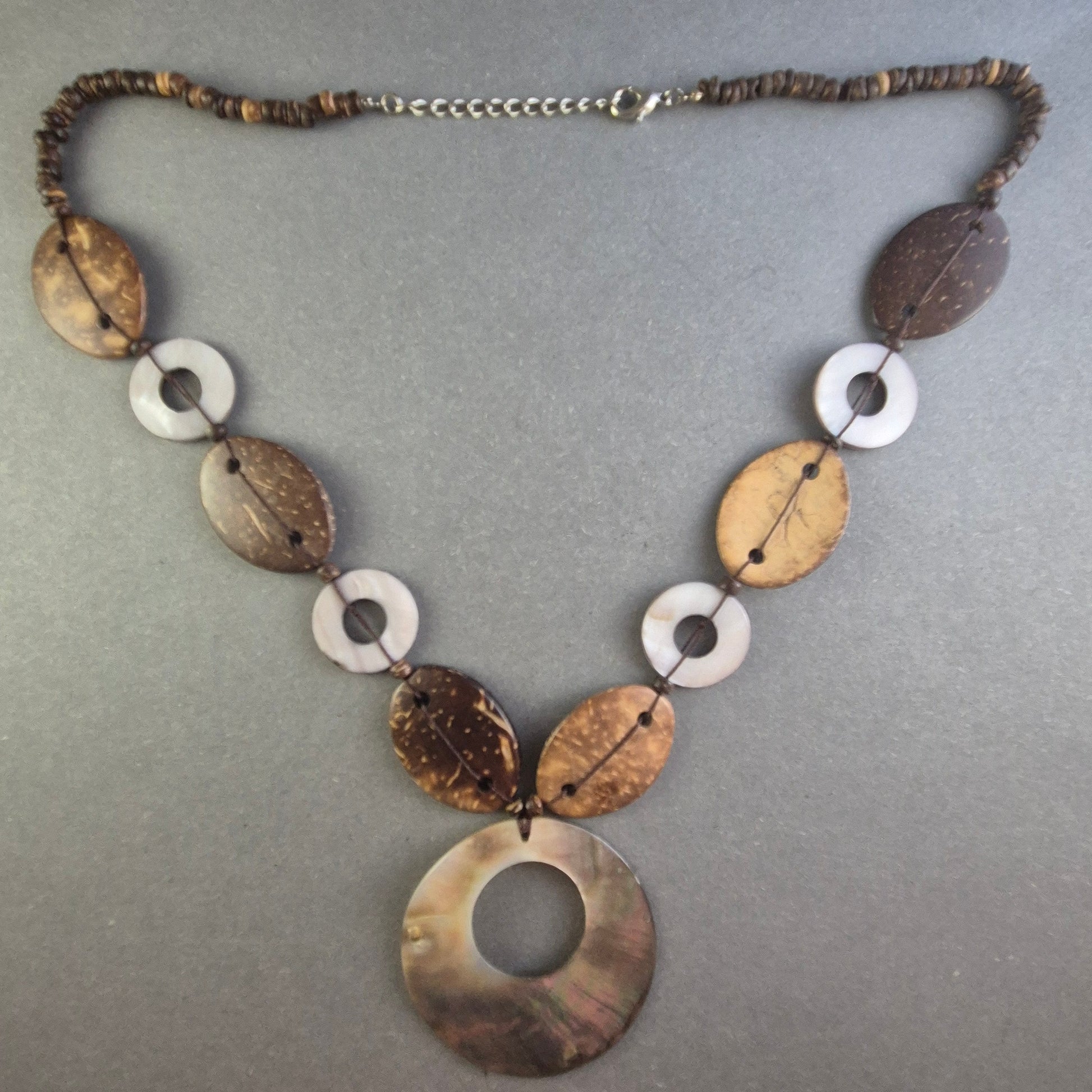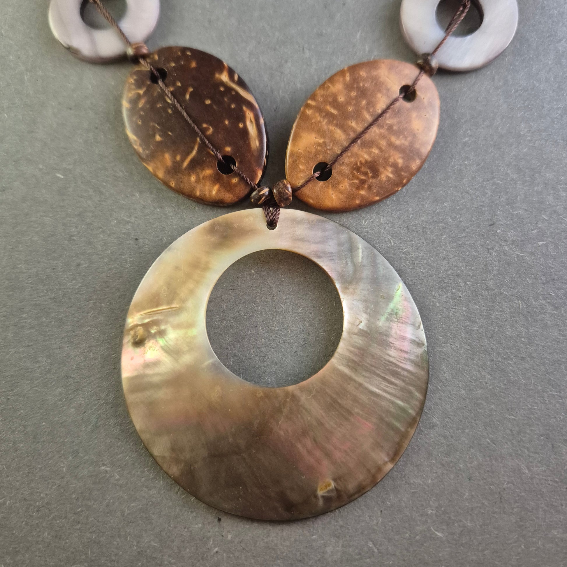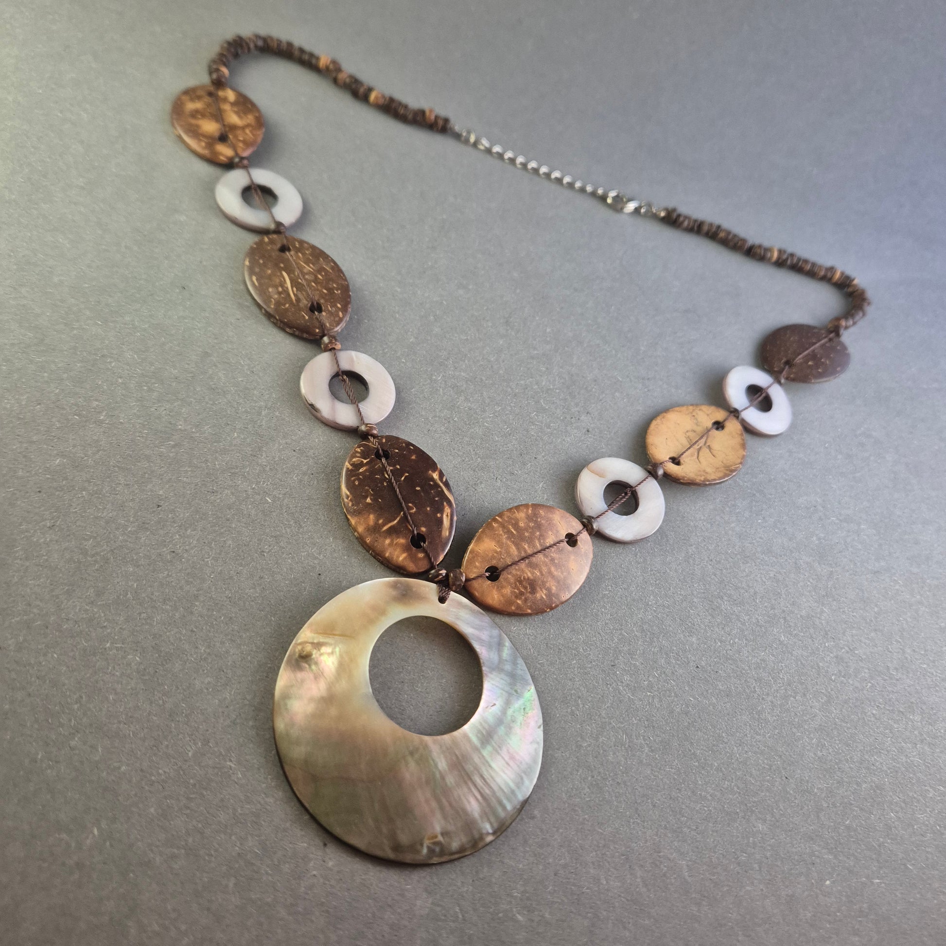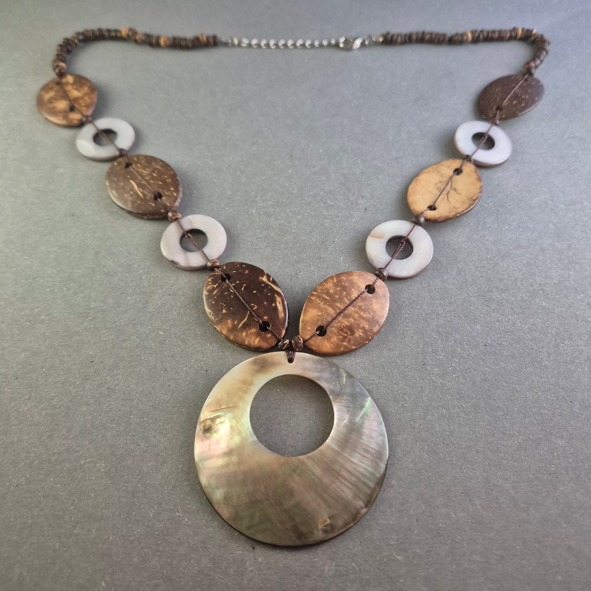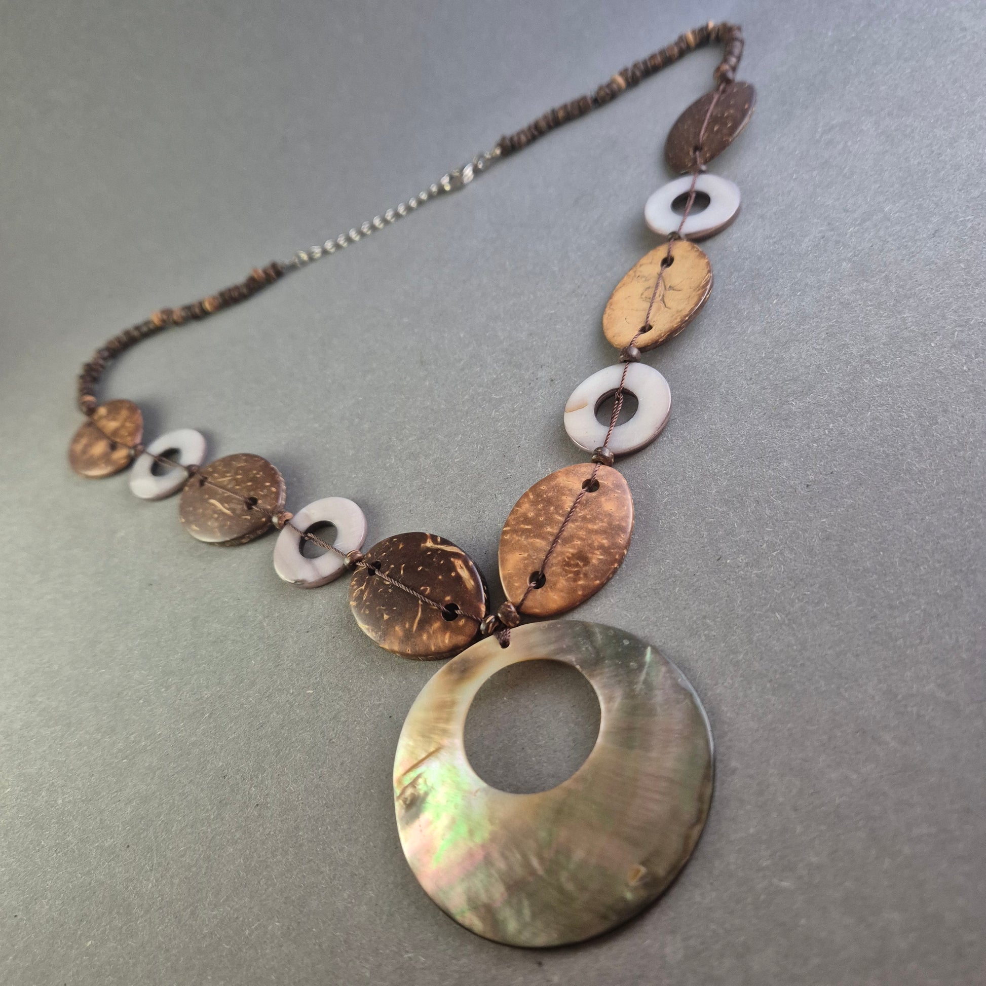 Natürliche Kokosnuss-Schmuckkette – Ethno-Stil mit Perlmutt-Akzenten