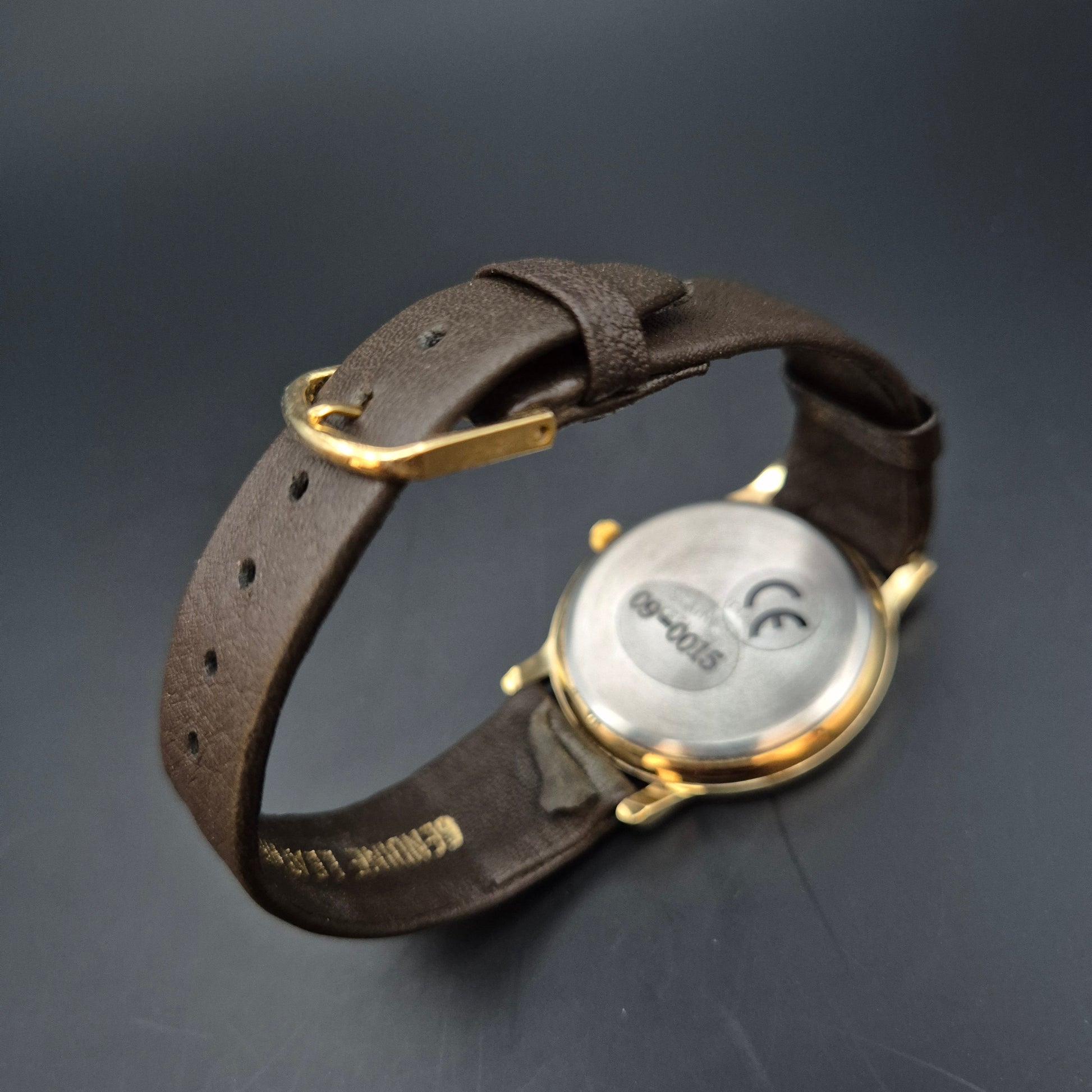 • Material: Edelstahlgehäuse, goldfarben, Lederarmband