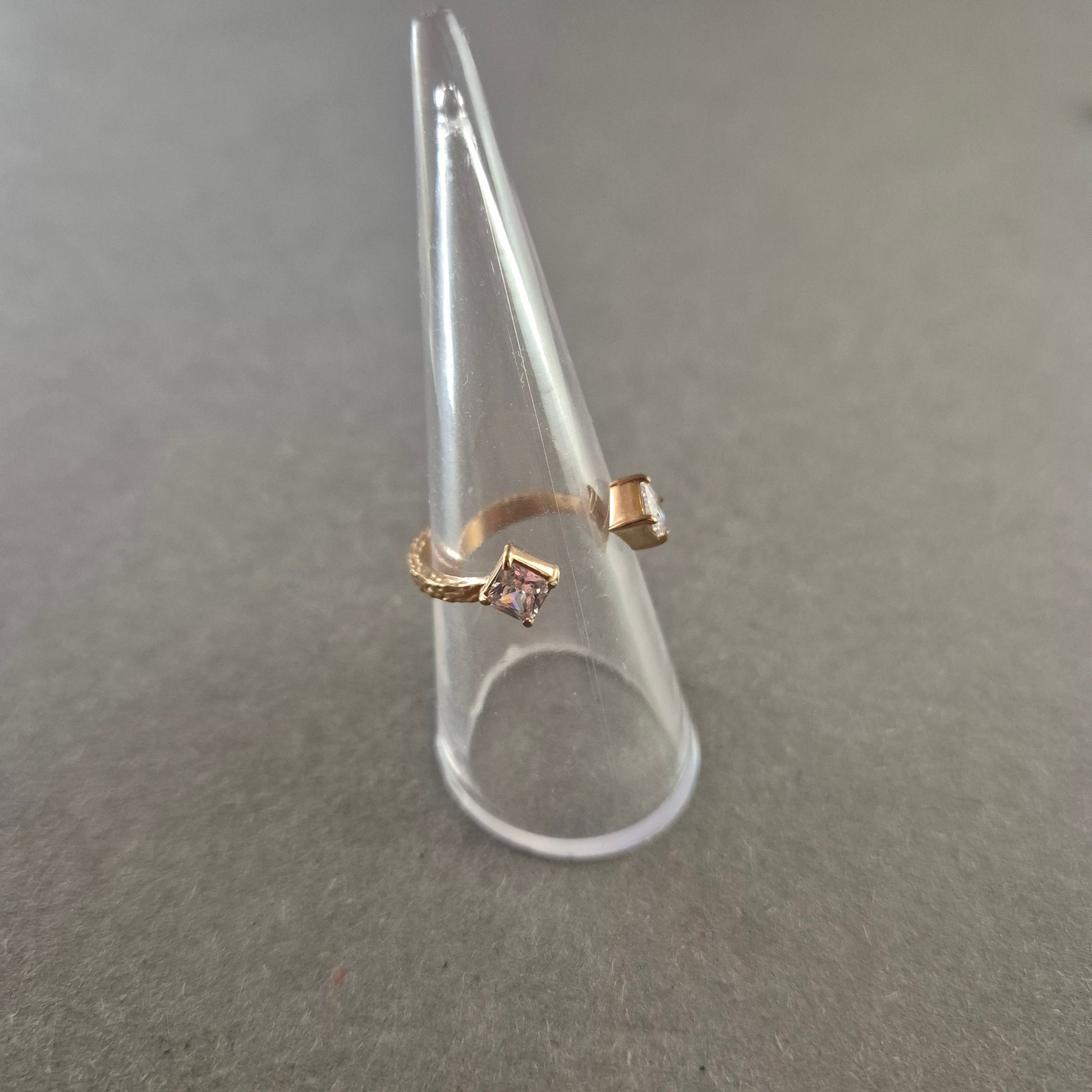 Dieser edle, offene Ring besticht durch sein modernes und filigranes Design. Die vergoldete, leicht gedrehte Ringschiene wird an beiden Enden von funkelnden Zirkonia-Steinen geziert, die für einen eleganten Glanz sorgen.