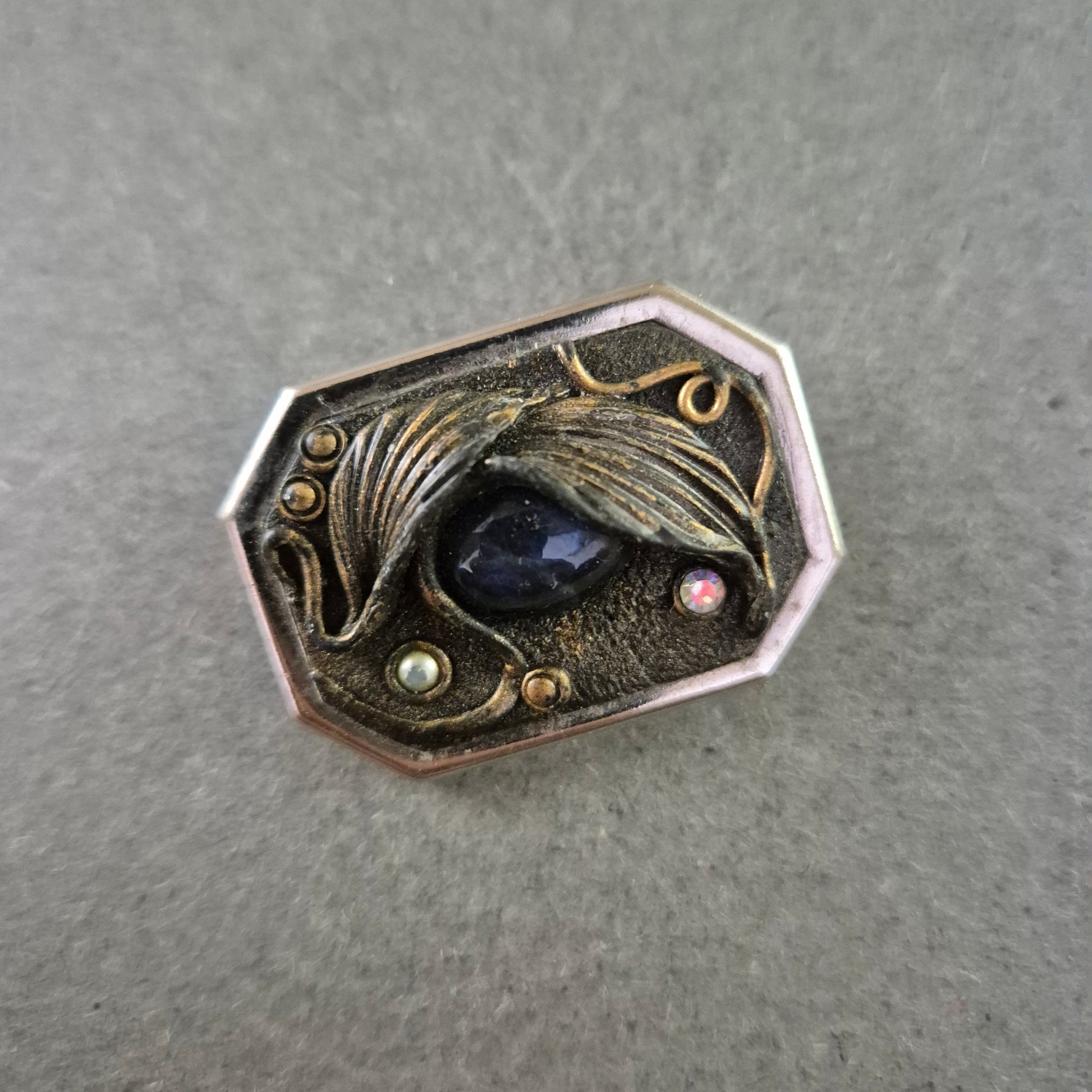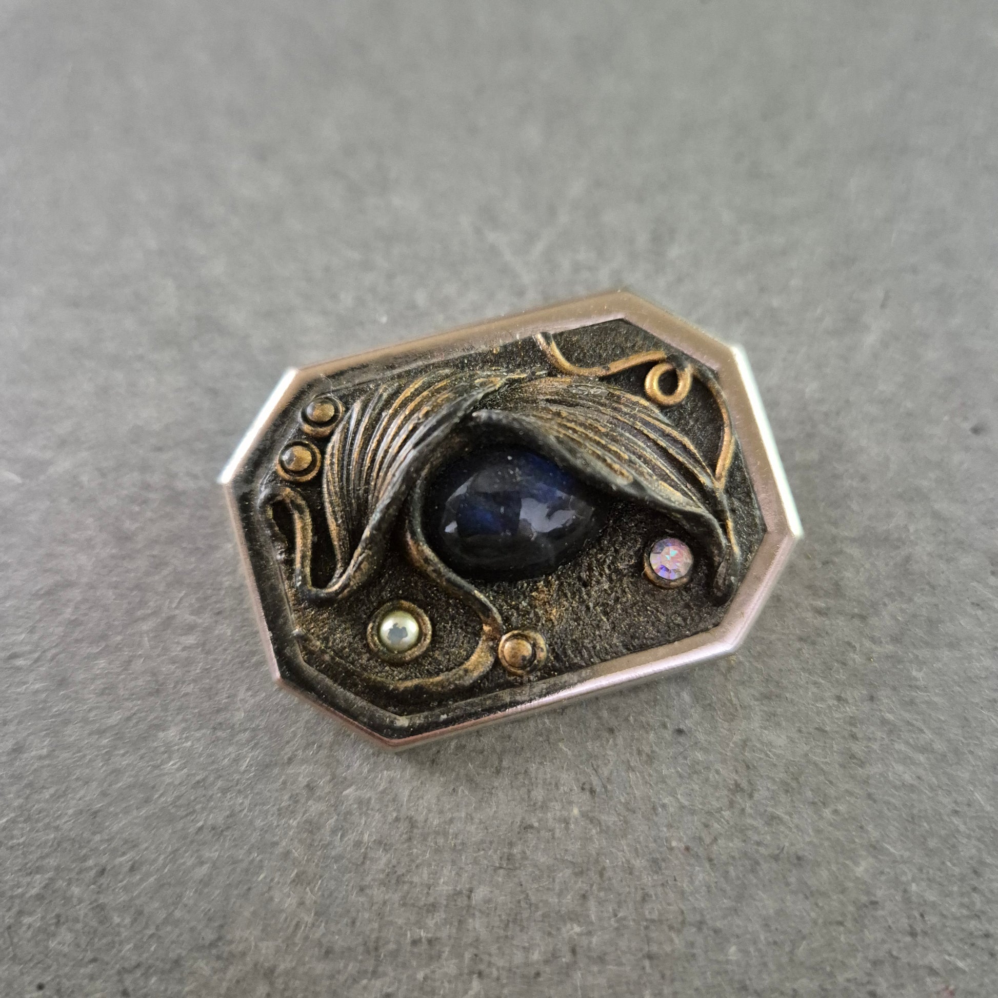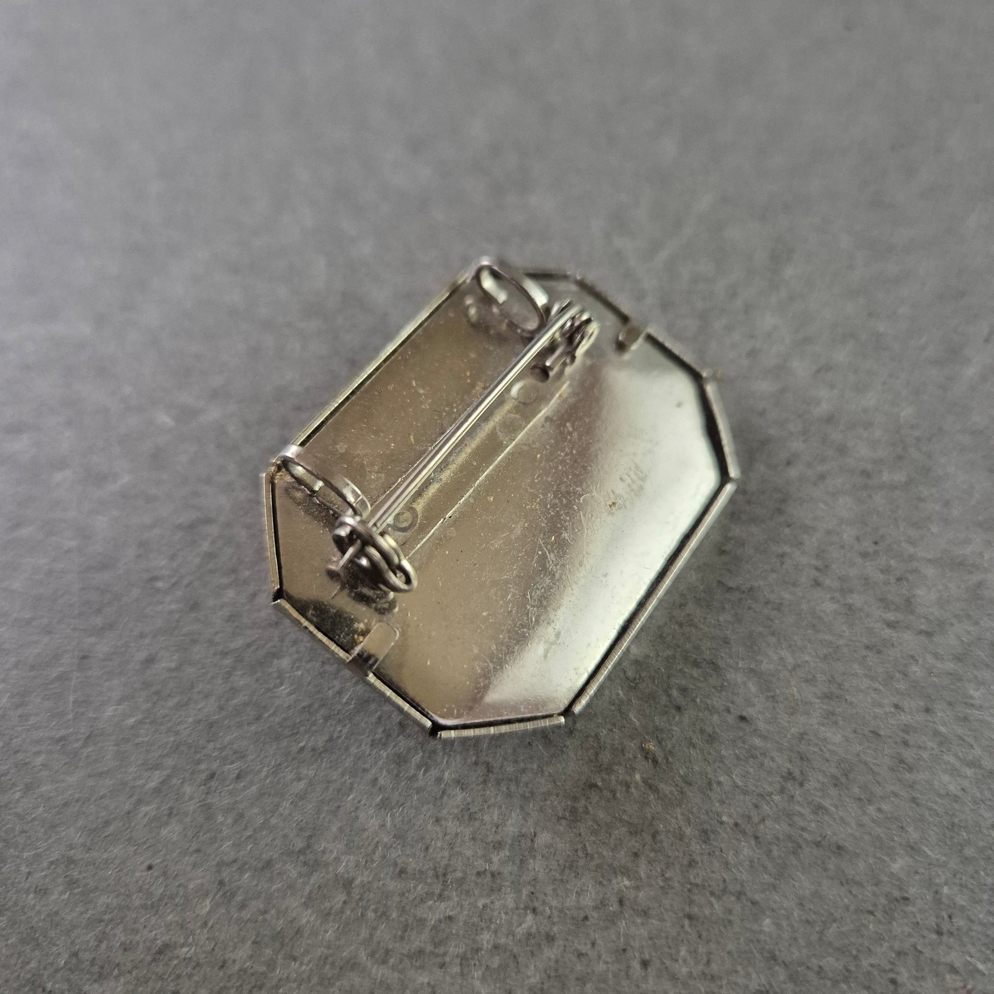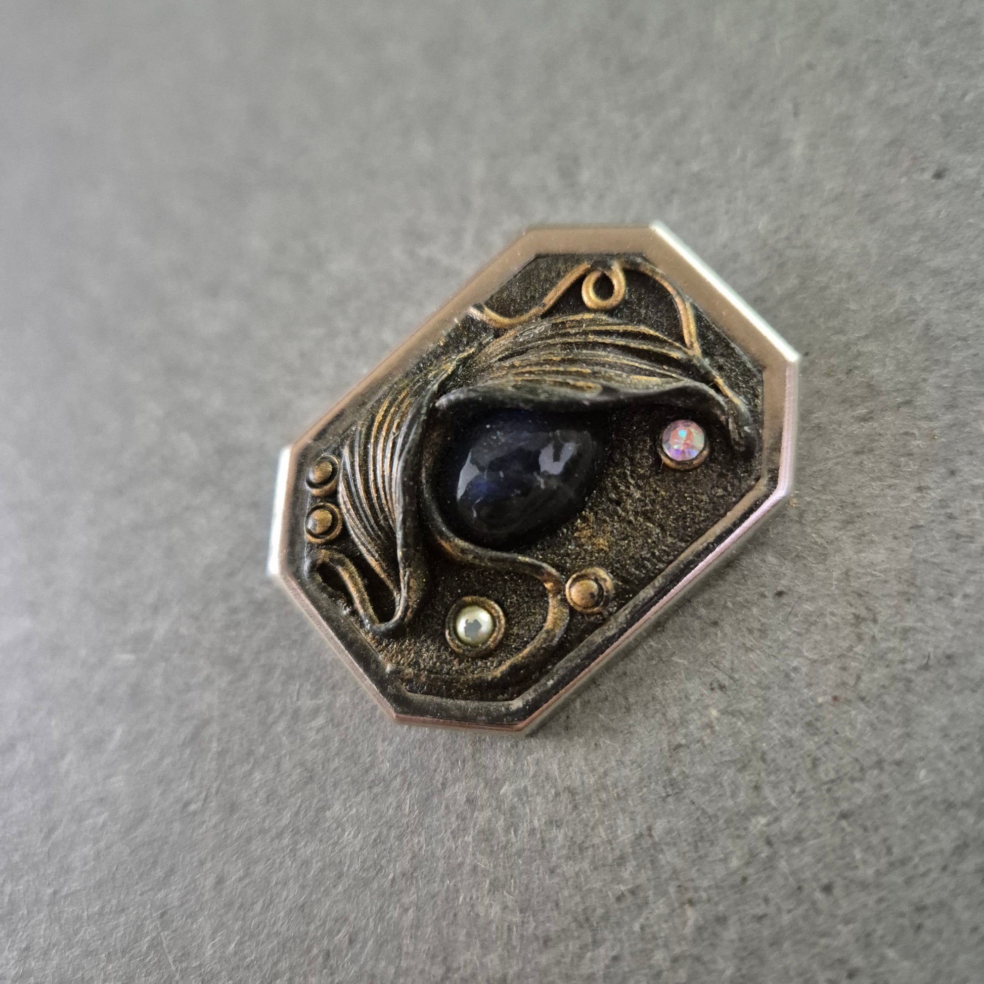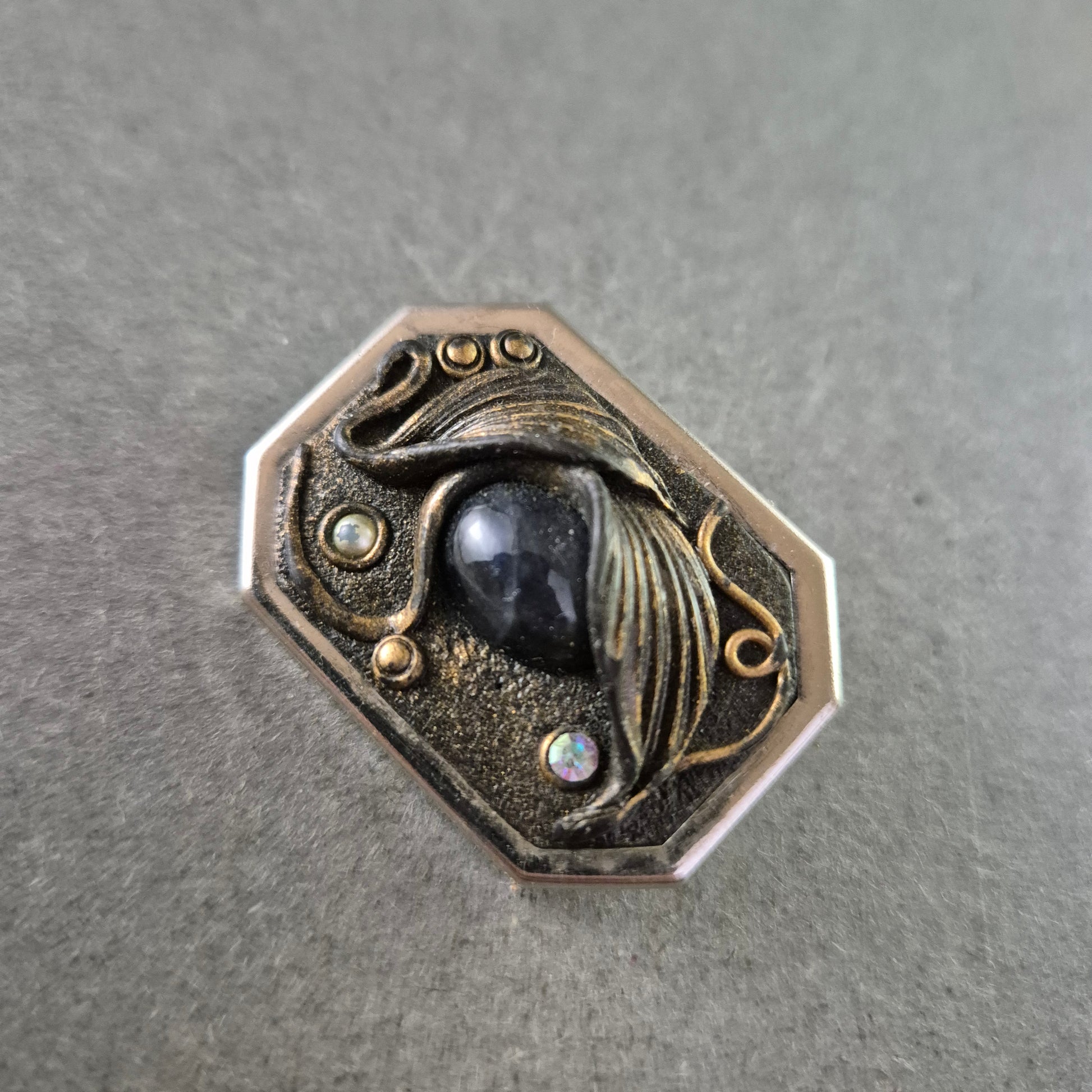 Oktagonale Brosche im Jugendstil-Look – Dunkler Stein & Zierelemente