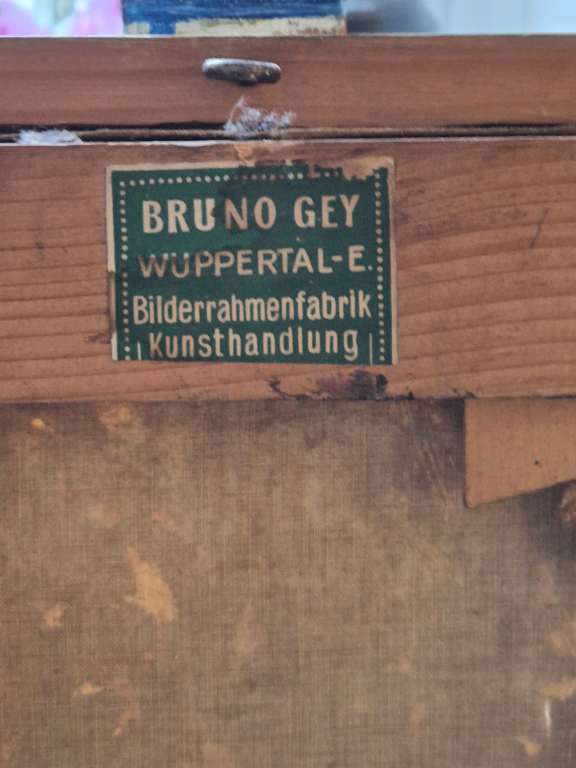 Dieses handsignierte Ölgemälde stammt aus der renommierten Galerie Bruno Gey in Wuppertal-Elberfeld, bekannt für ihre Bilderrahmenfabrik und Kunsthandlung. Das Werk überzeugt durch klassische Ölmalerei auf Leinwand und ist gerahmt in einem hochwertigen, passenden Rahmen.