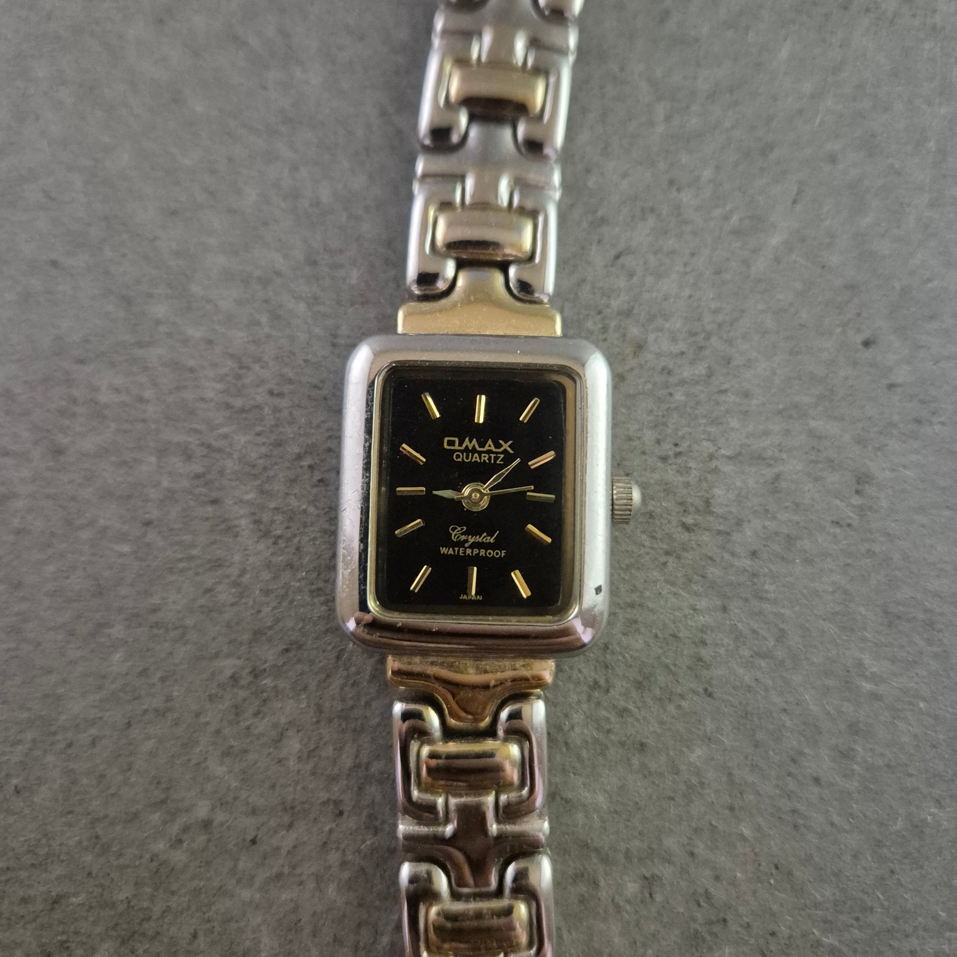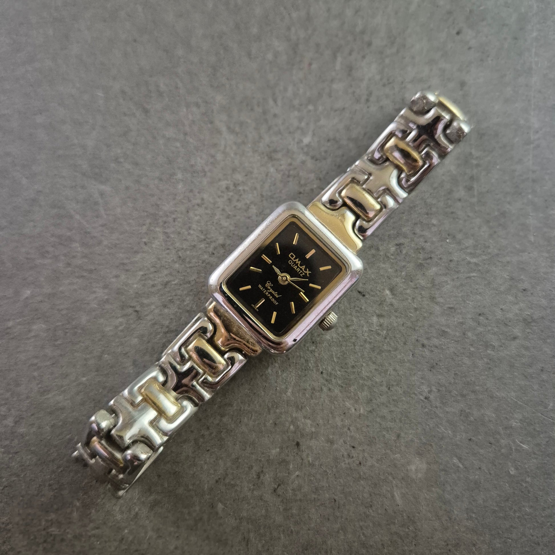 Omax Damen Uhr mit Schwarzem Zifferblatt und Edelstahlarmband