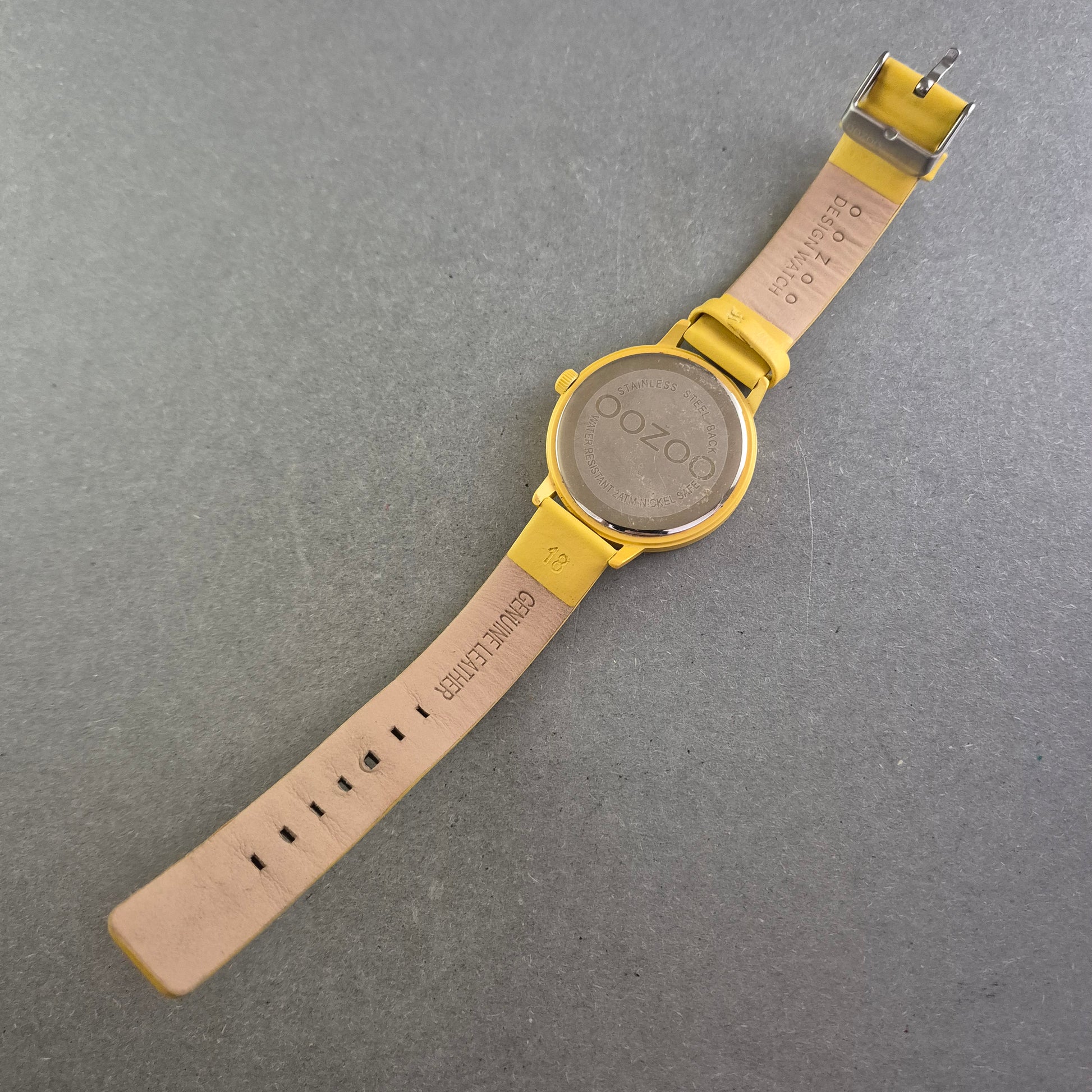 Diese stylische OOZOO Unisex Uhr fällt sofort durch ihr modernes, monochromes Design auf. Das satinierte goldfarbene Zifferblatt ohne Zahlen und das farblich passende Gehäuse in Gelb verleihen der Uhr einen trendigen, minimalistischen Look. Das Echtlederarmband sorgt für hohen Tragekomfort und macht sie zum perfekten Begleiter für Alltag und Freizeit.