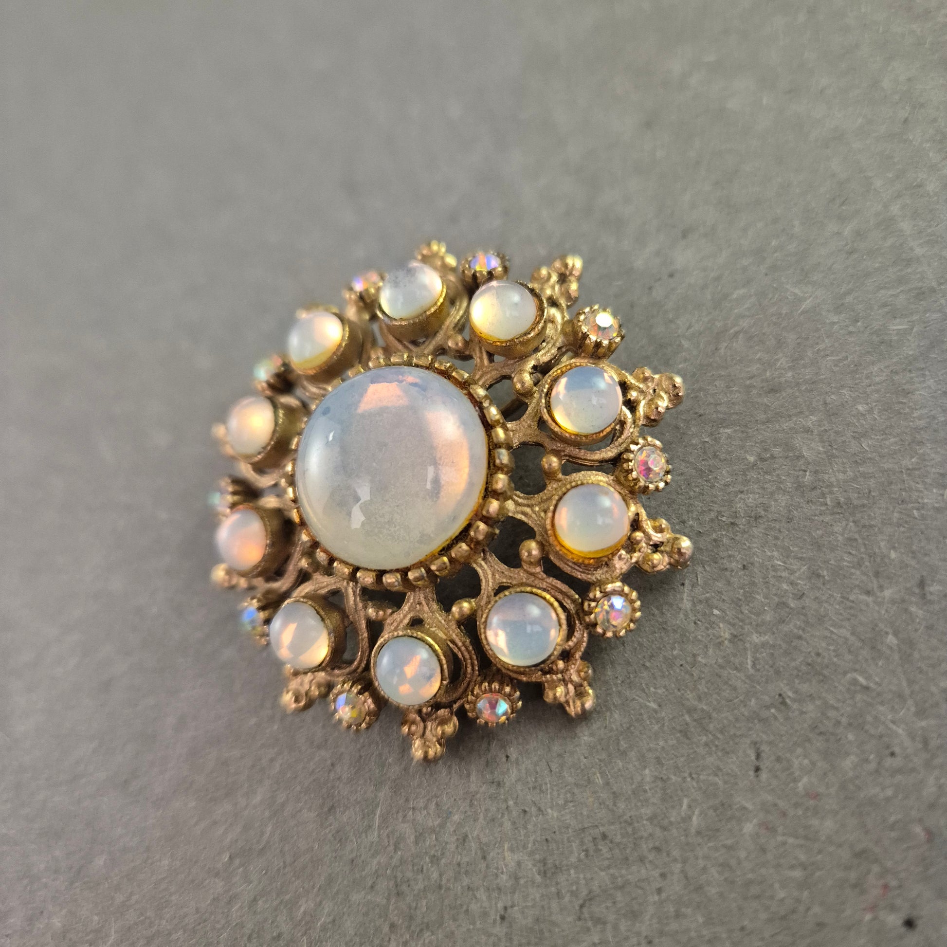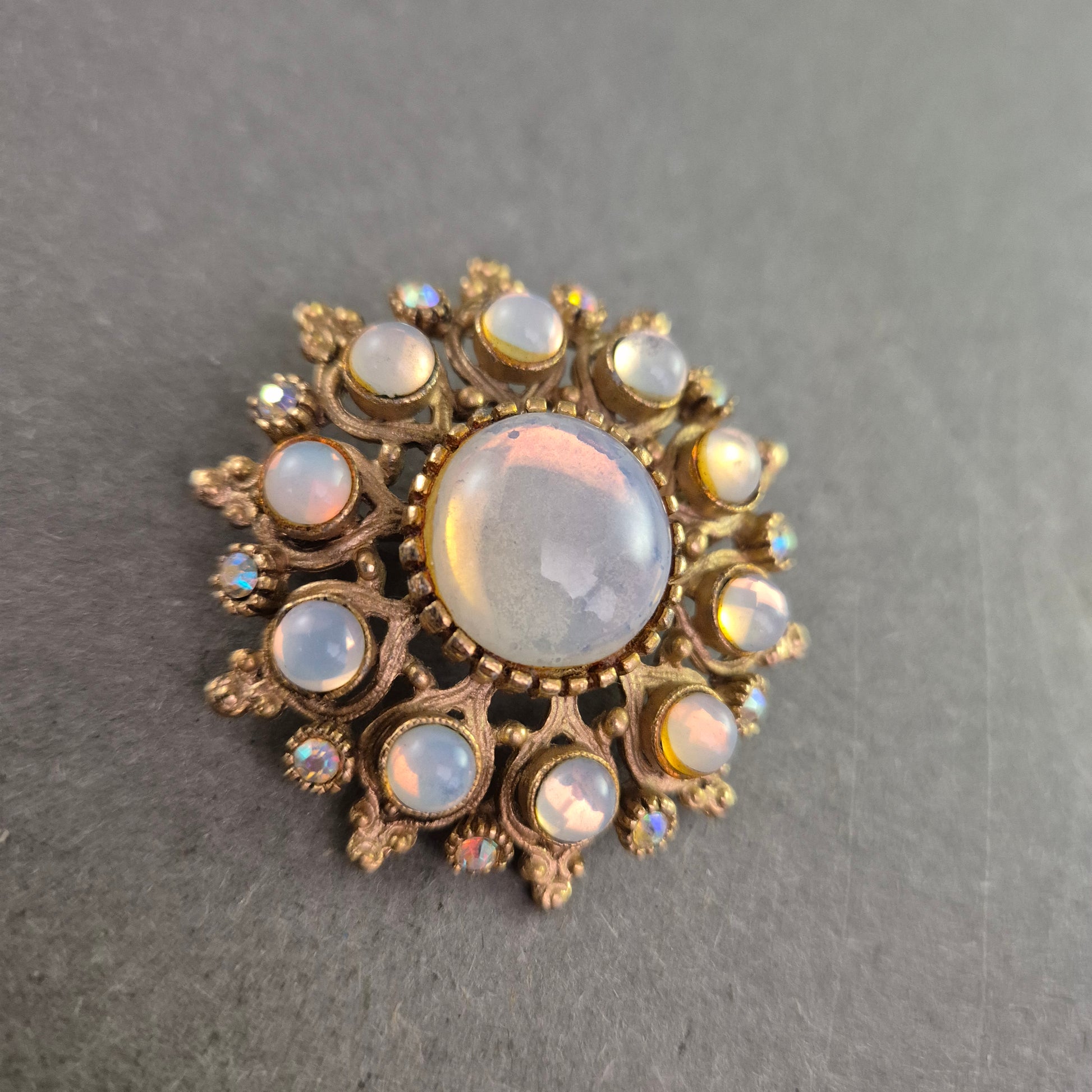 Opalähnliche Vintage-Brosche – Antikgold mit Glascabochons