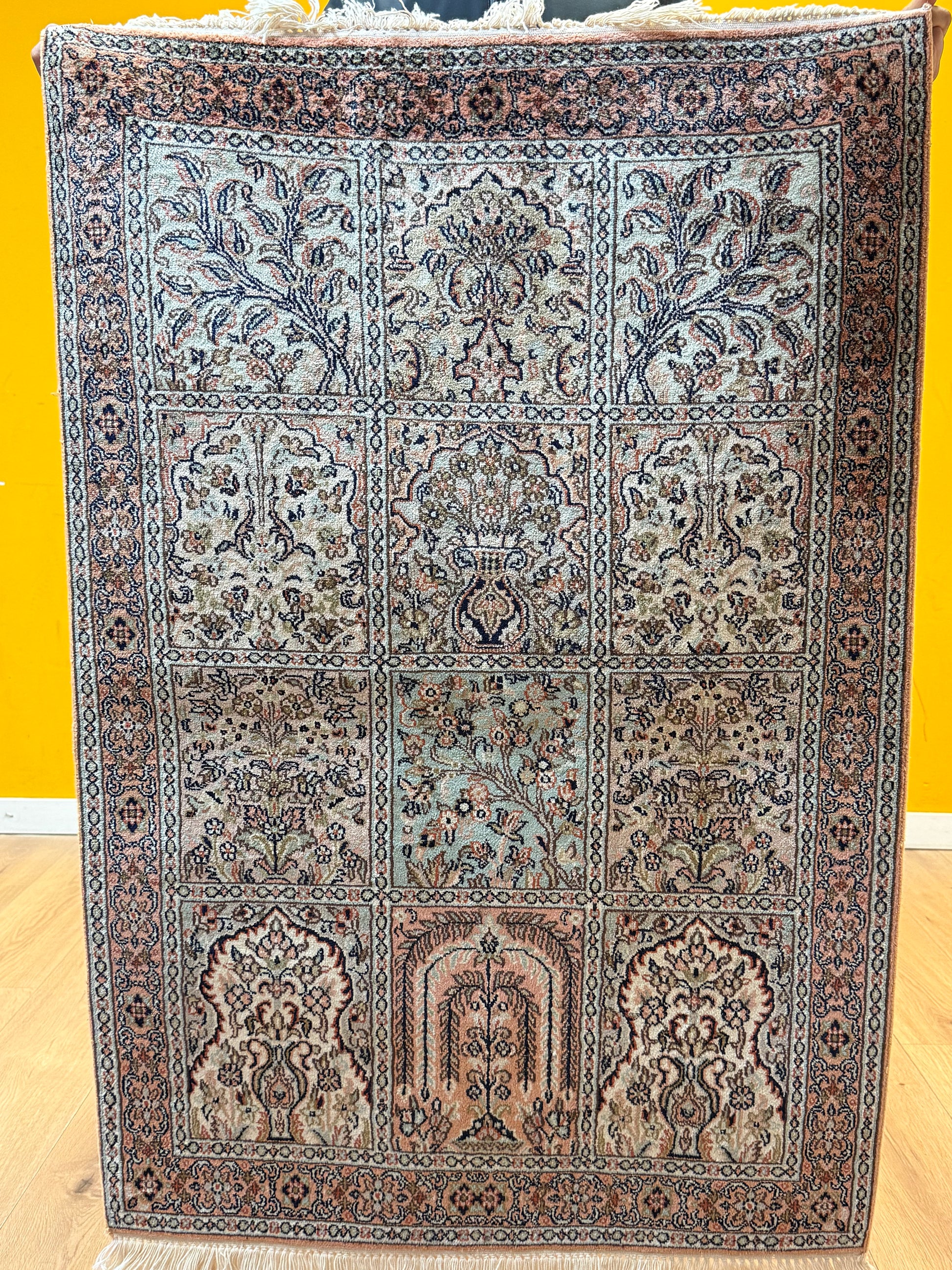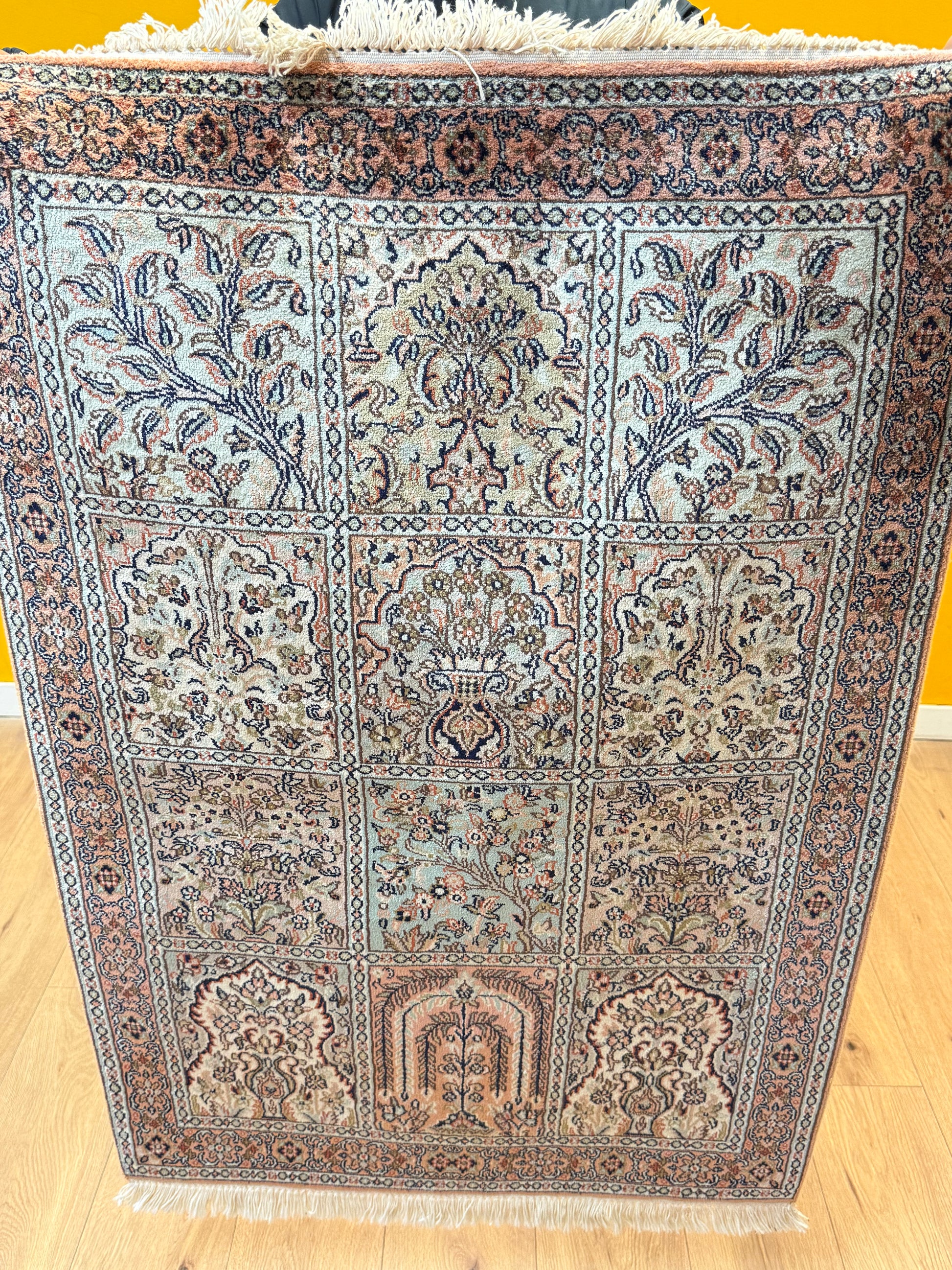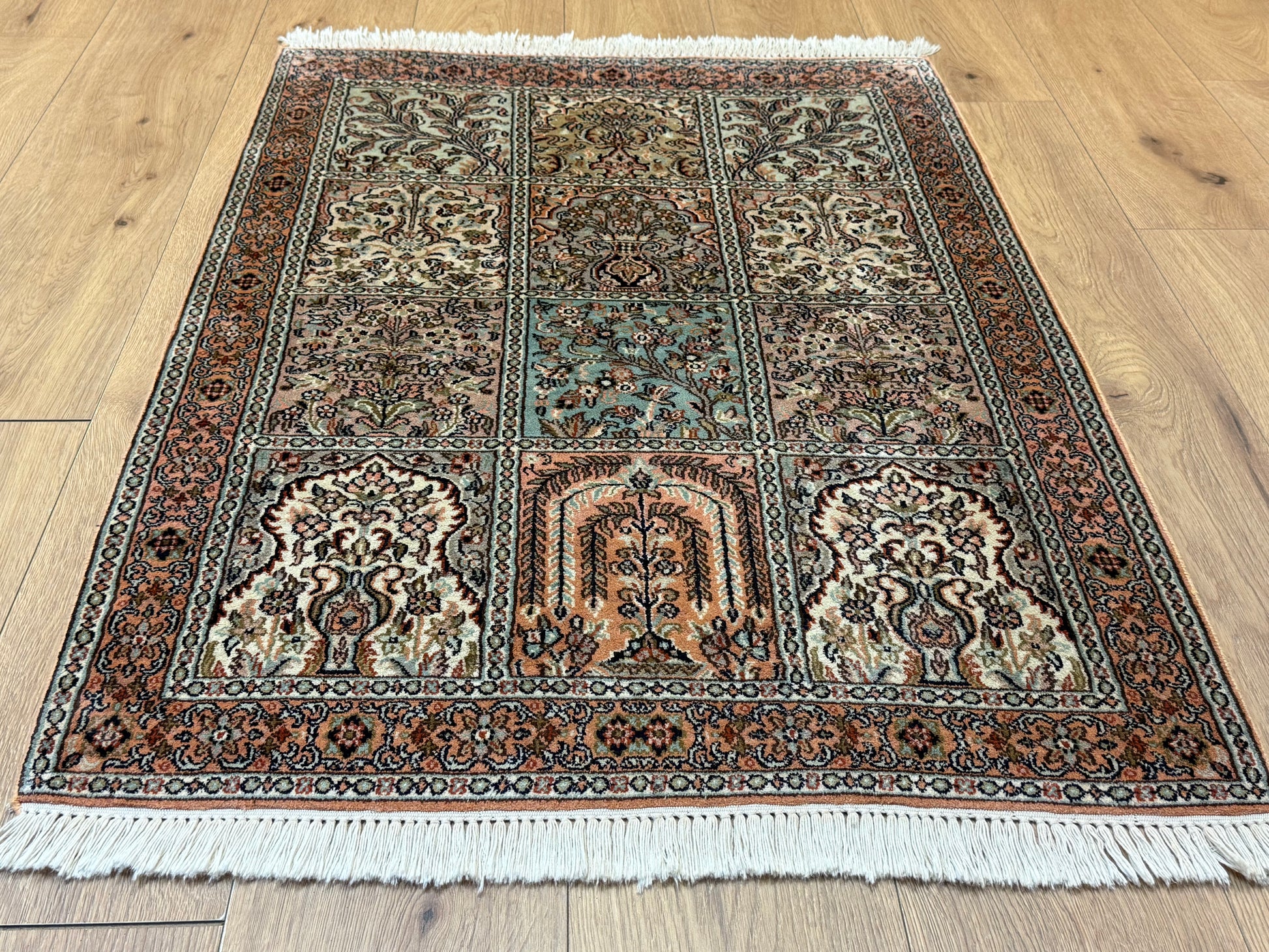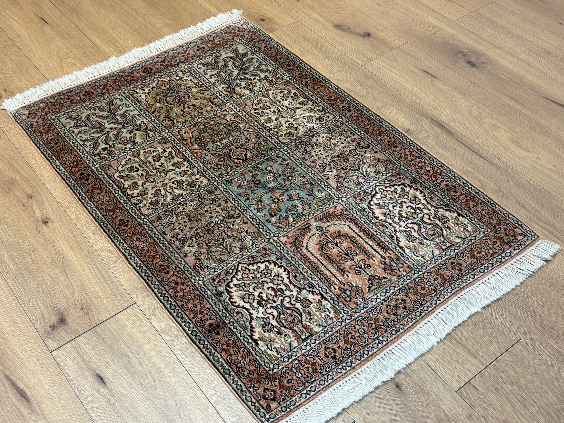 Orientteppich Kaschmir – Handgeknüpft aus Naturseide, Feldermotiv, 80 x 120 cm