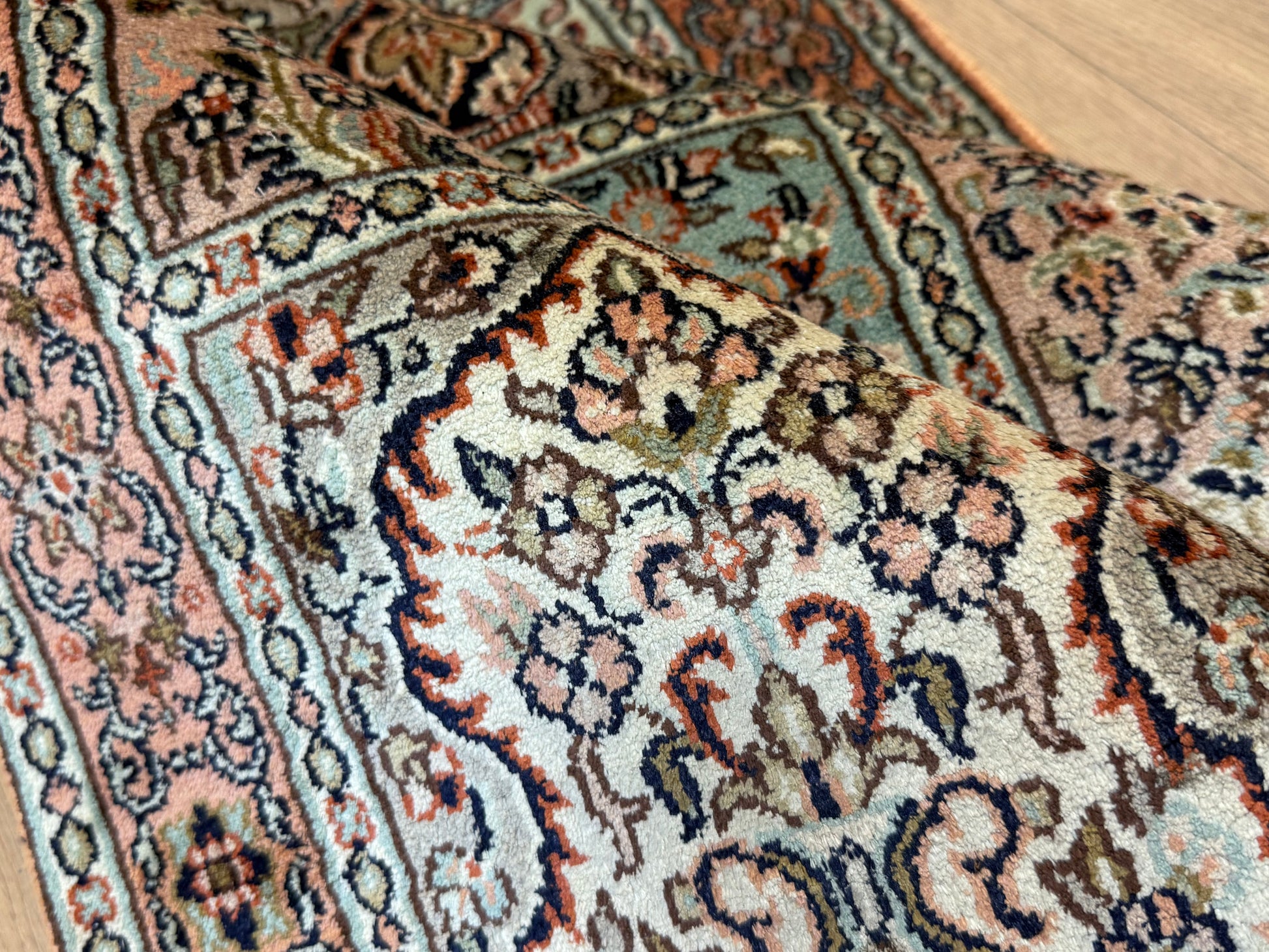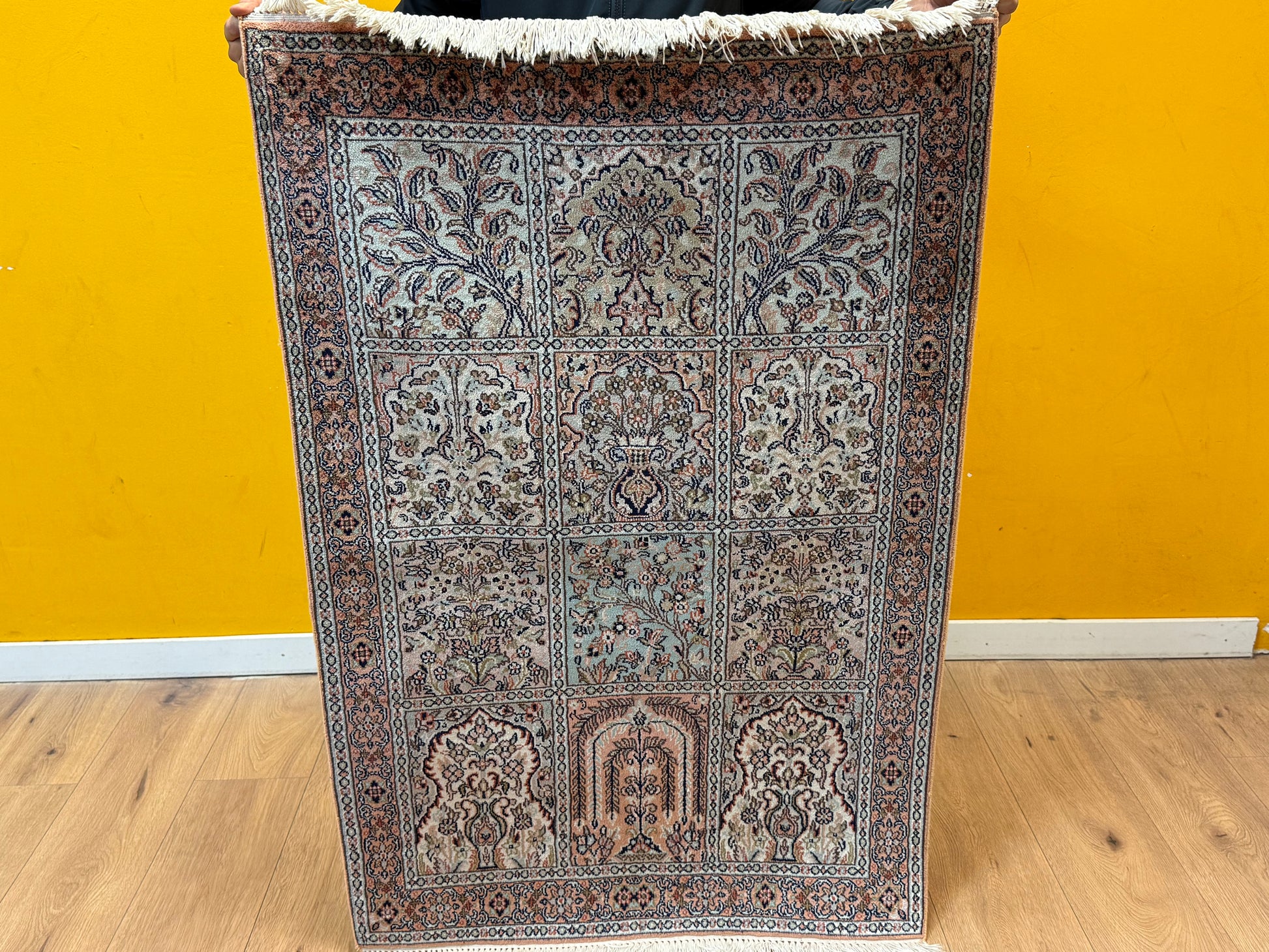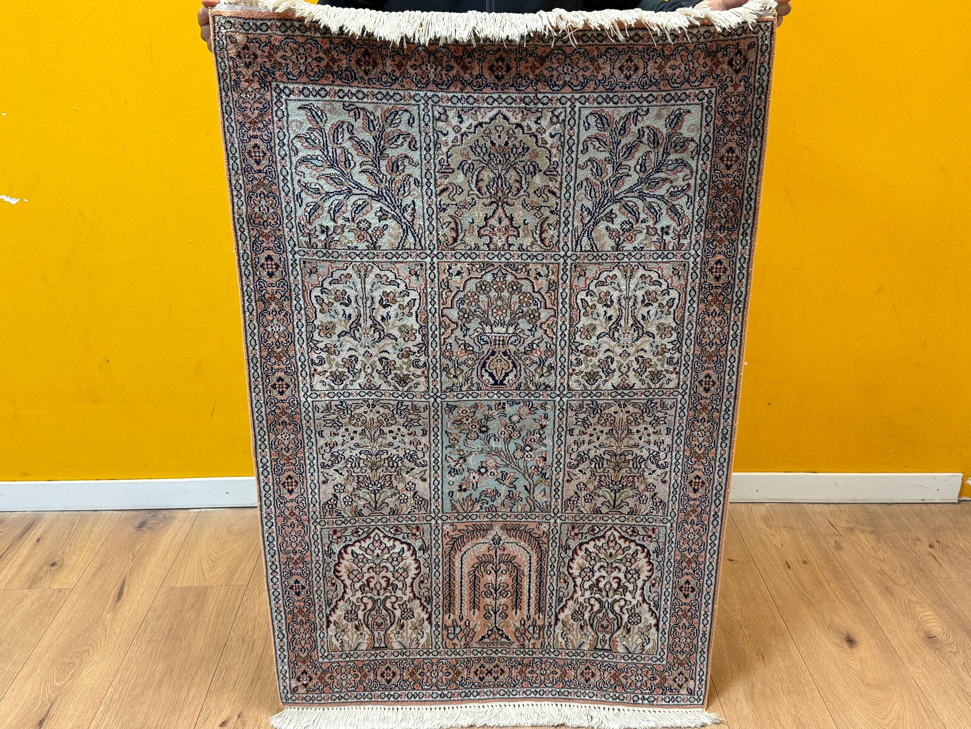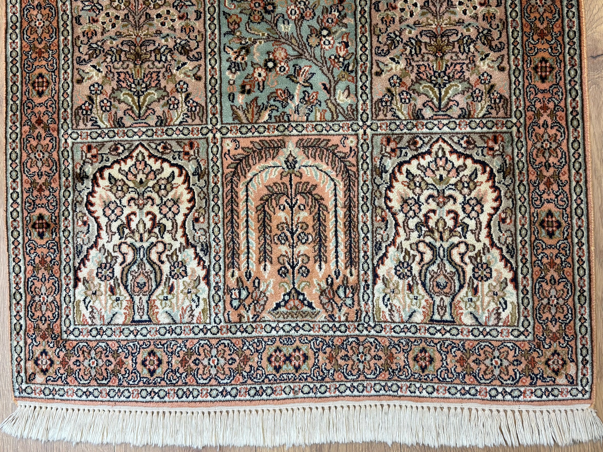 Orientteppich Kaschmir – Handgeknüpft aus Naturseide, Feldermotiv, 80 x 120 cm