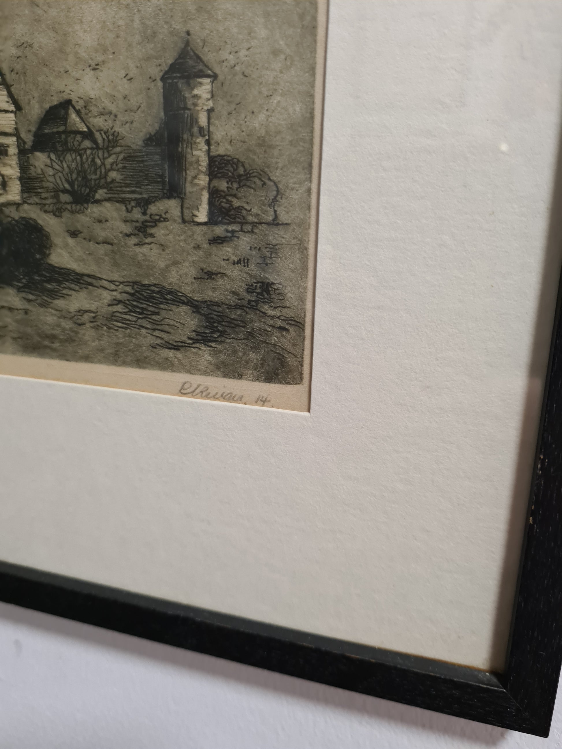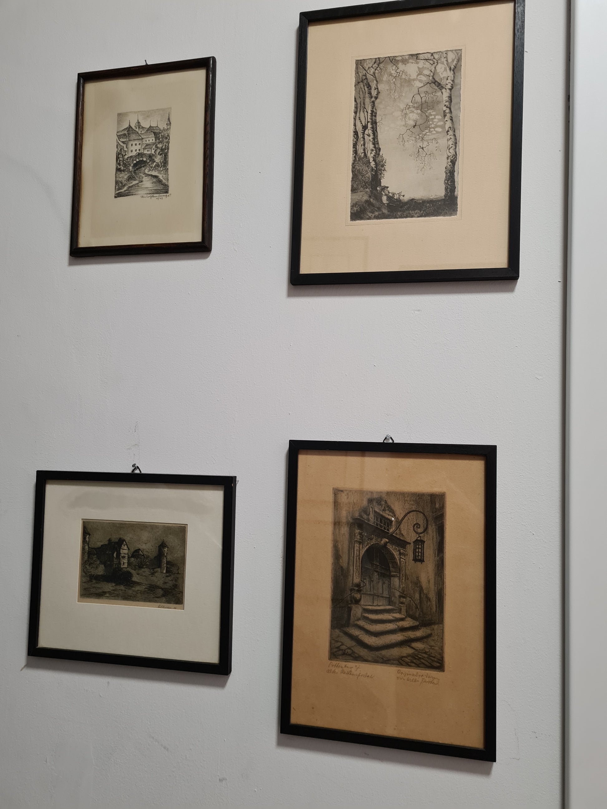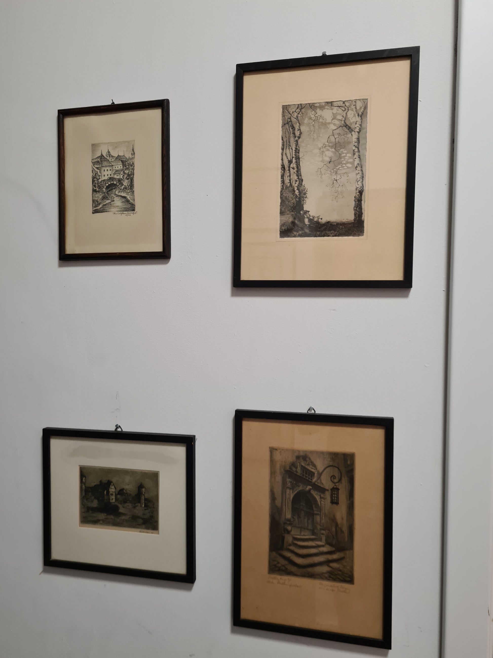 angeboten wird ein 4er-Set Original-Radierungen mit Landschaftsmotiven, gerahmt.