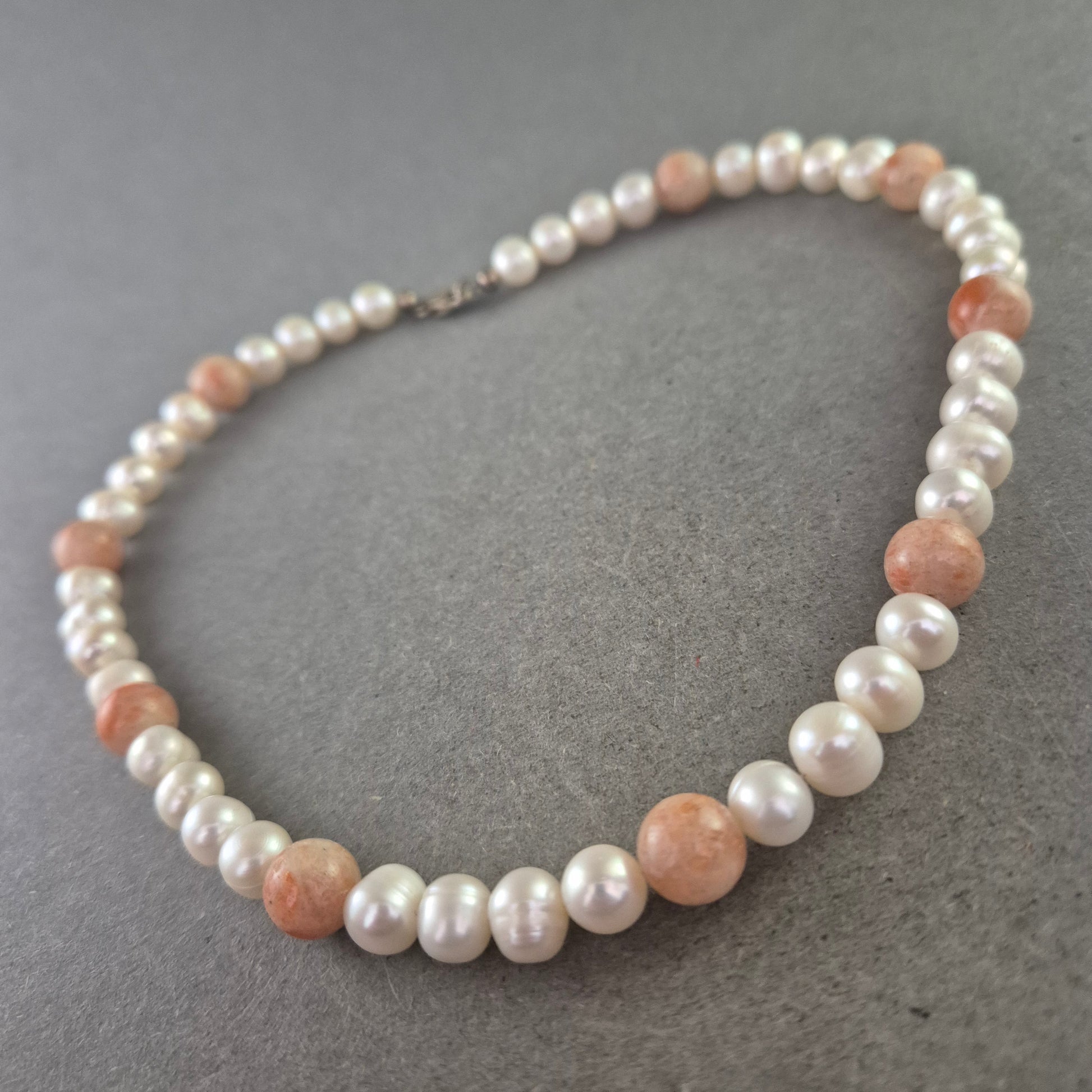 Perlen Halskette mit Sonnenstein-Akzenten – Feminin & Elegant