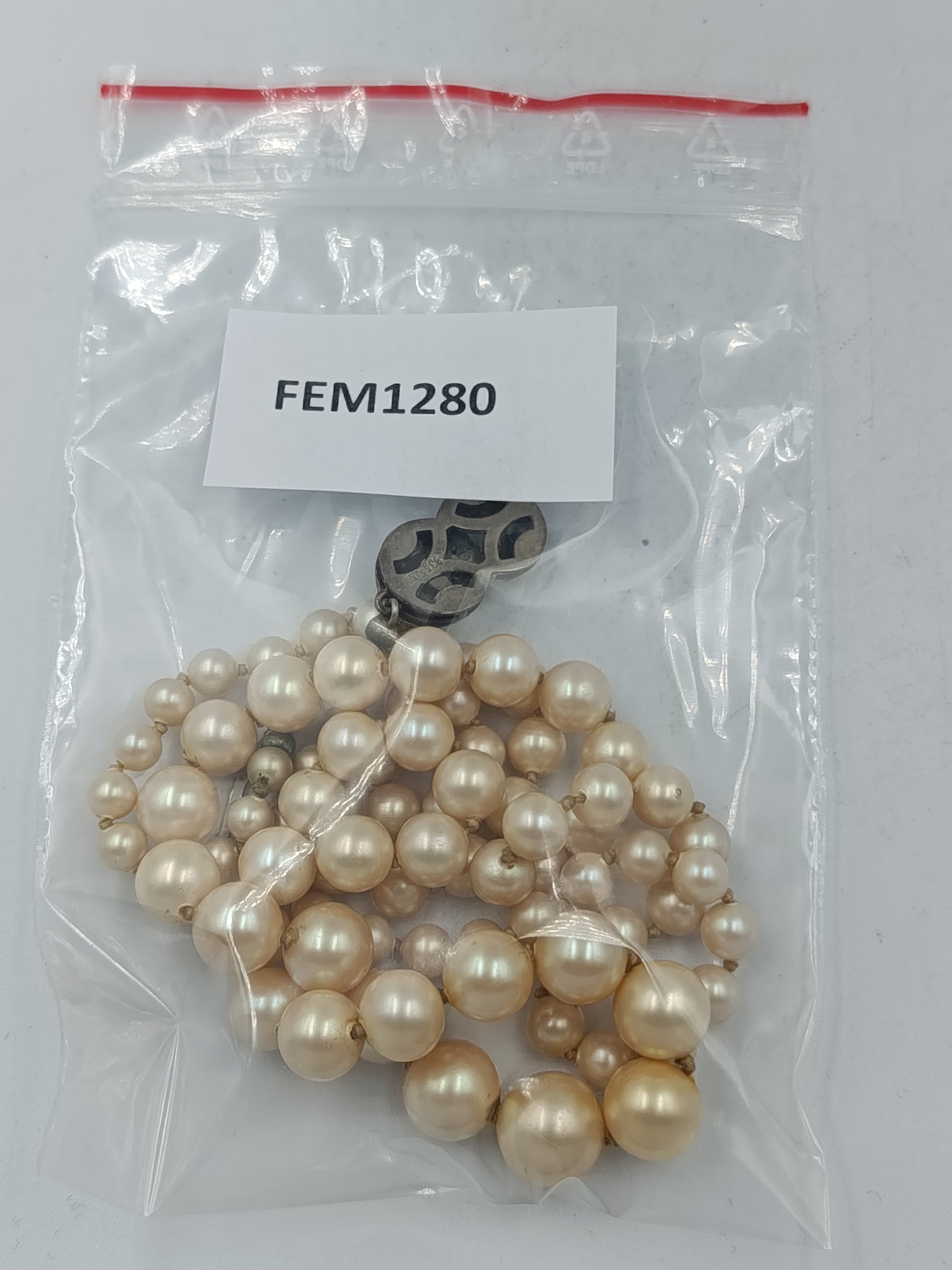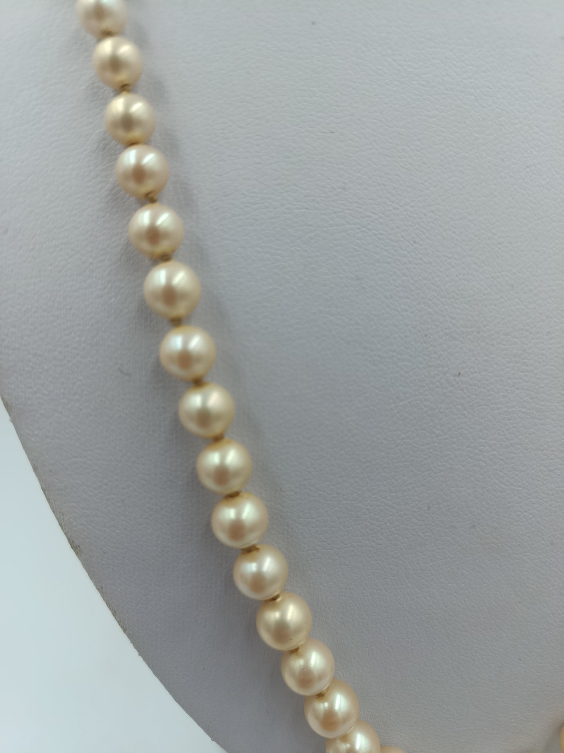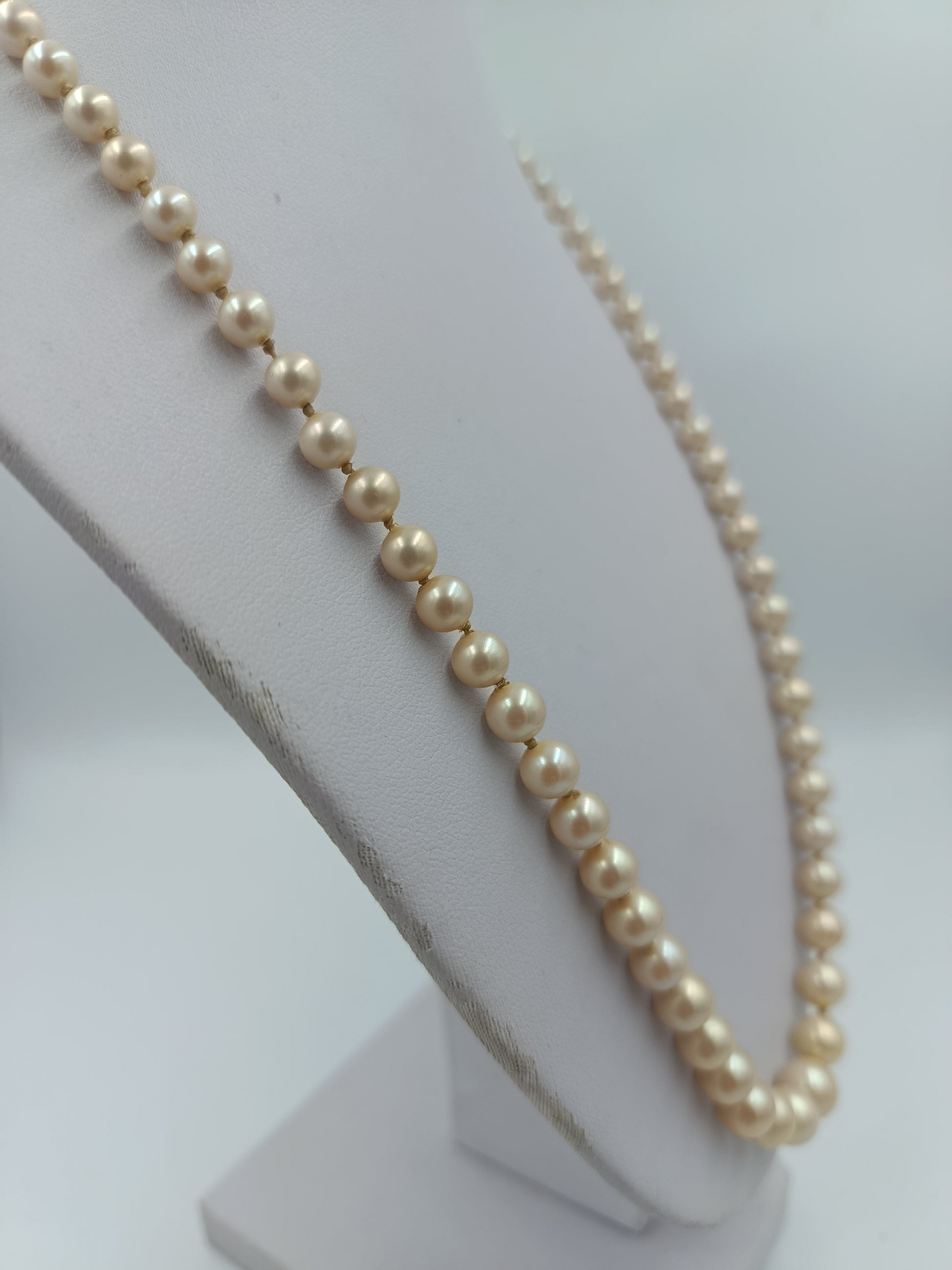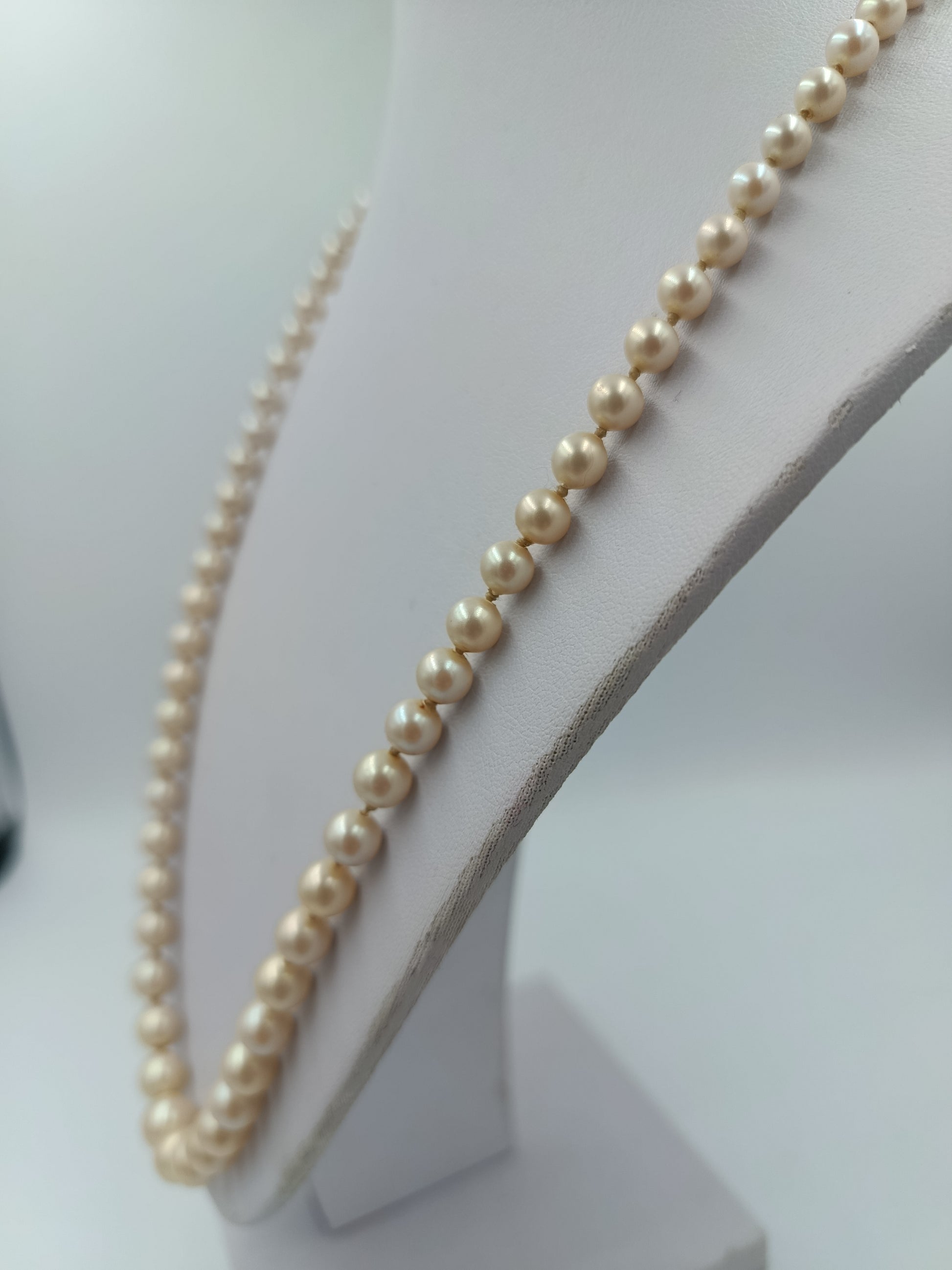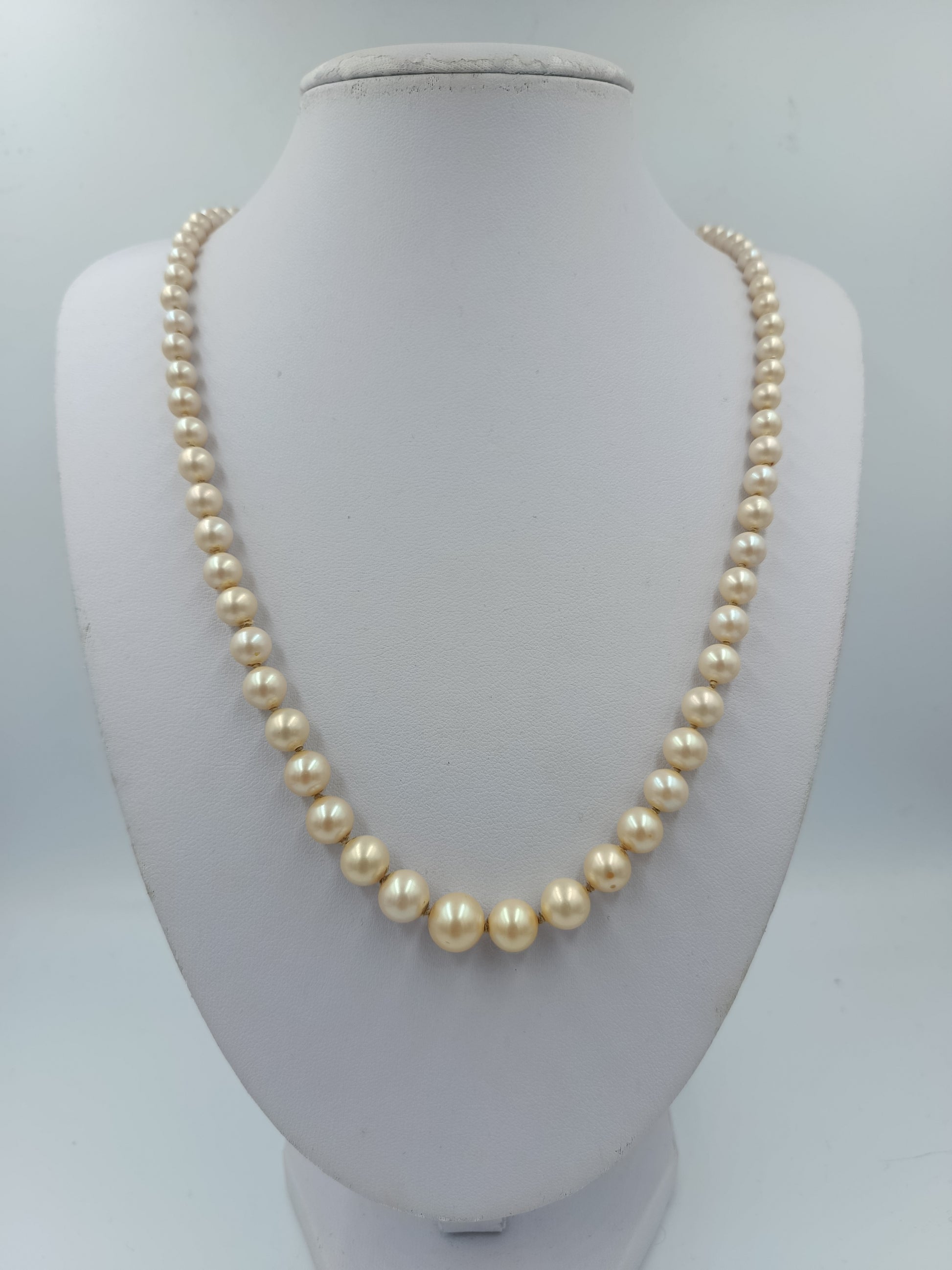 Perlenkette mit cremefarbenen Perlen und silbernem Verschluss im klassischen Stil