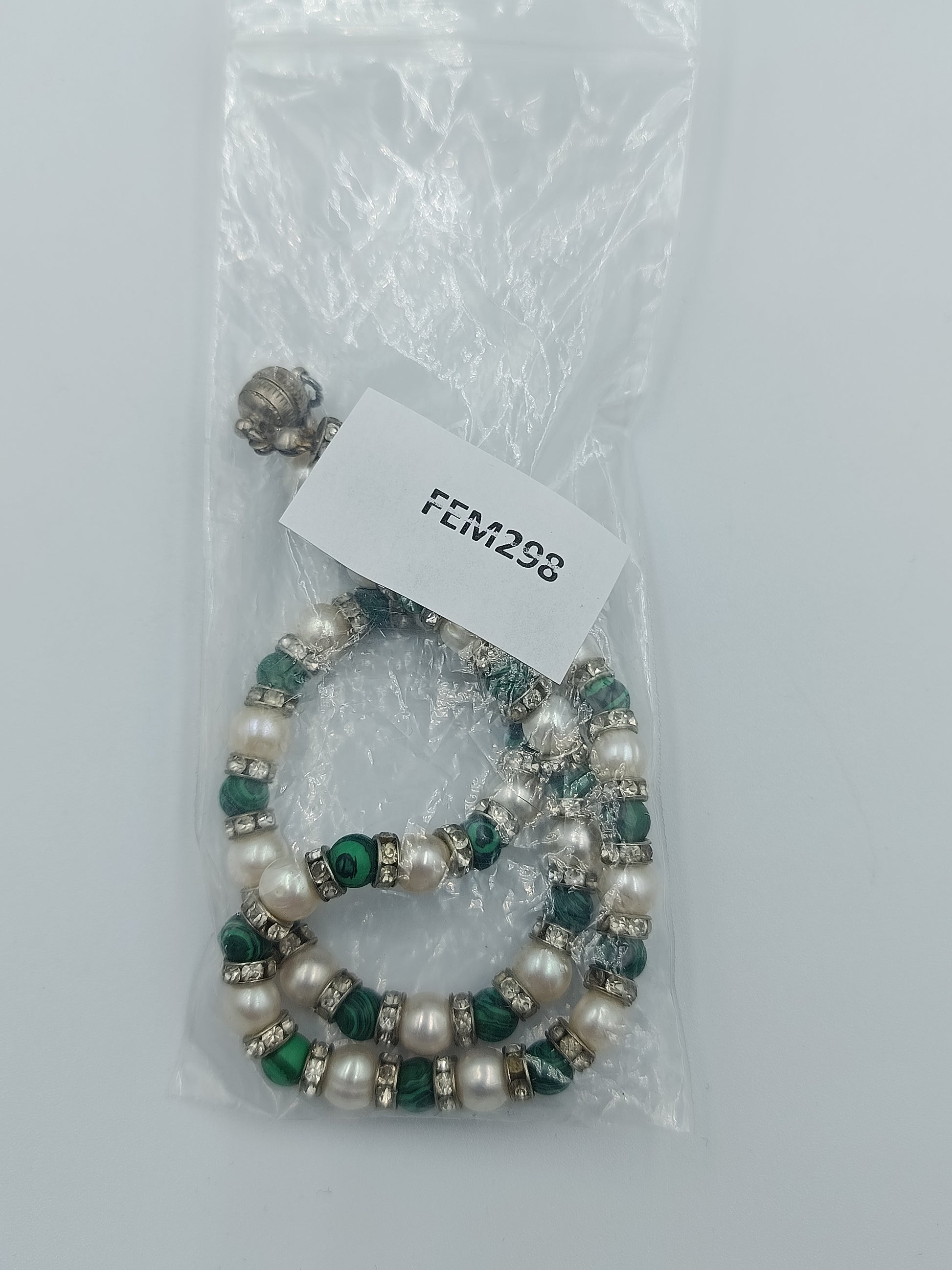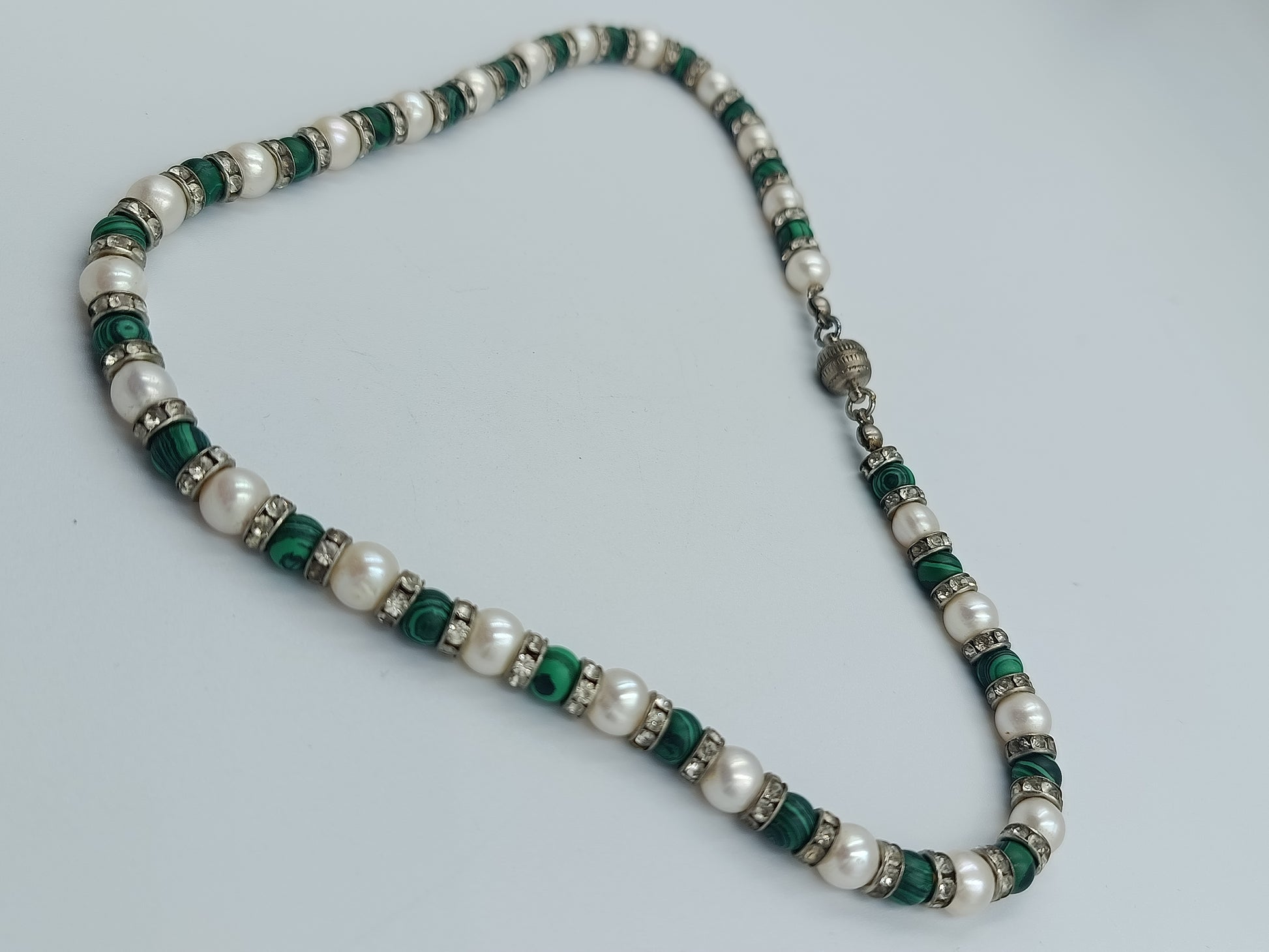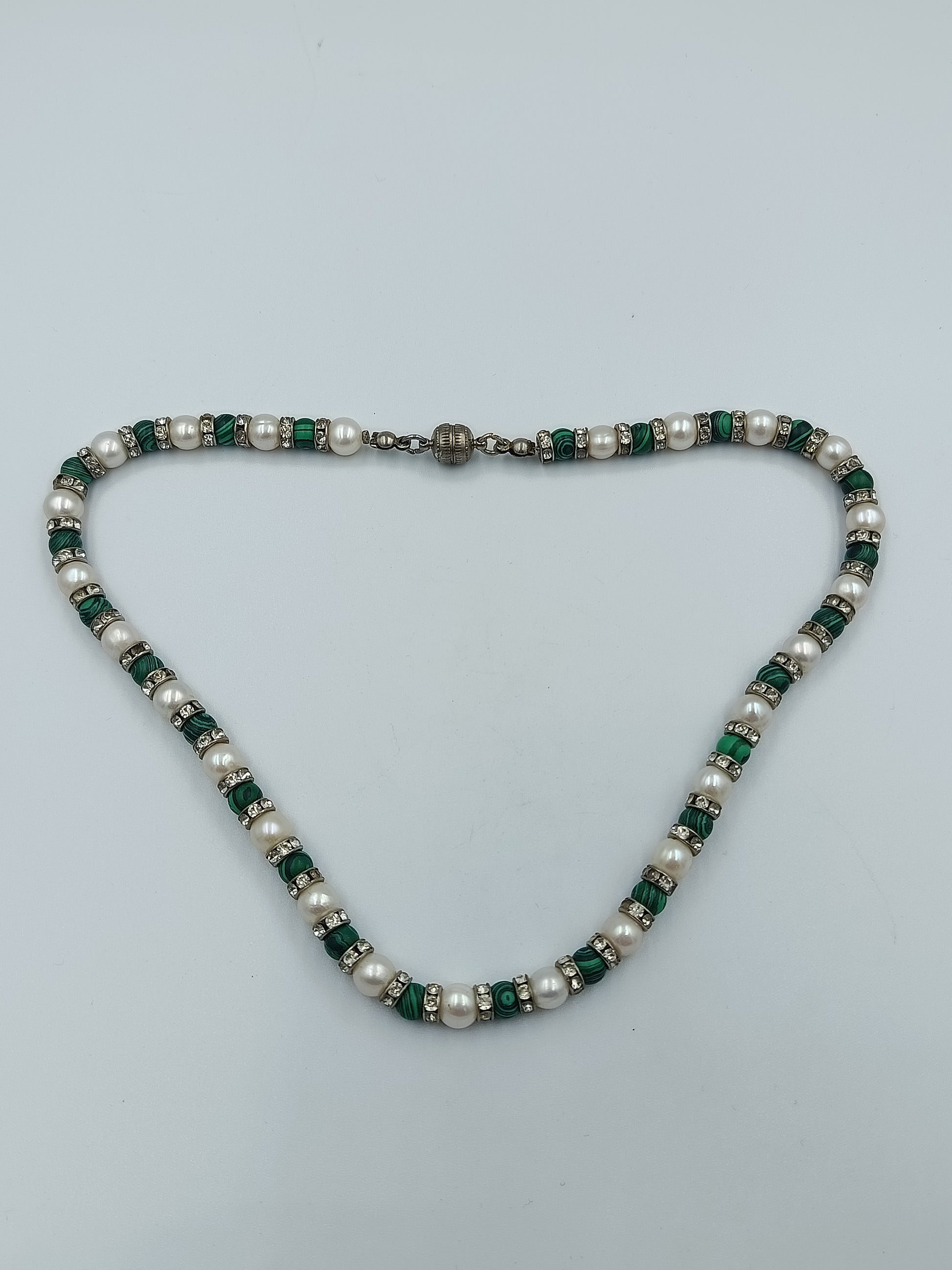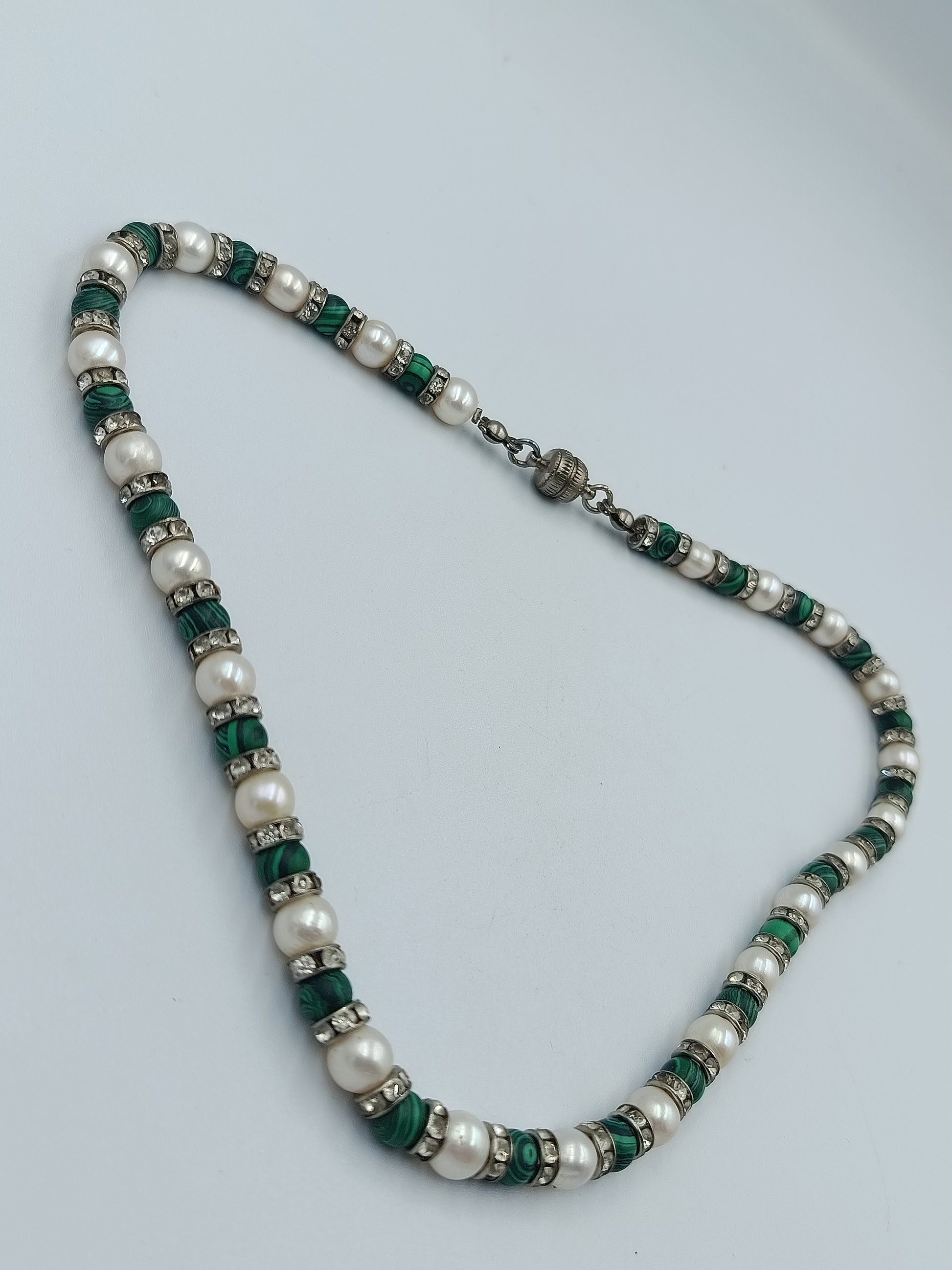 Perlenkette mit Malachit-Optik & Strass, magnetischer Verschluss