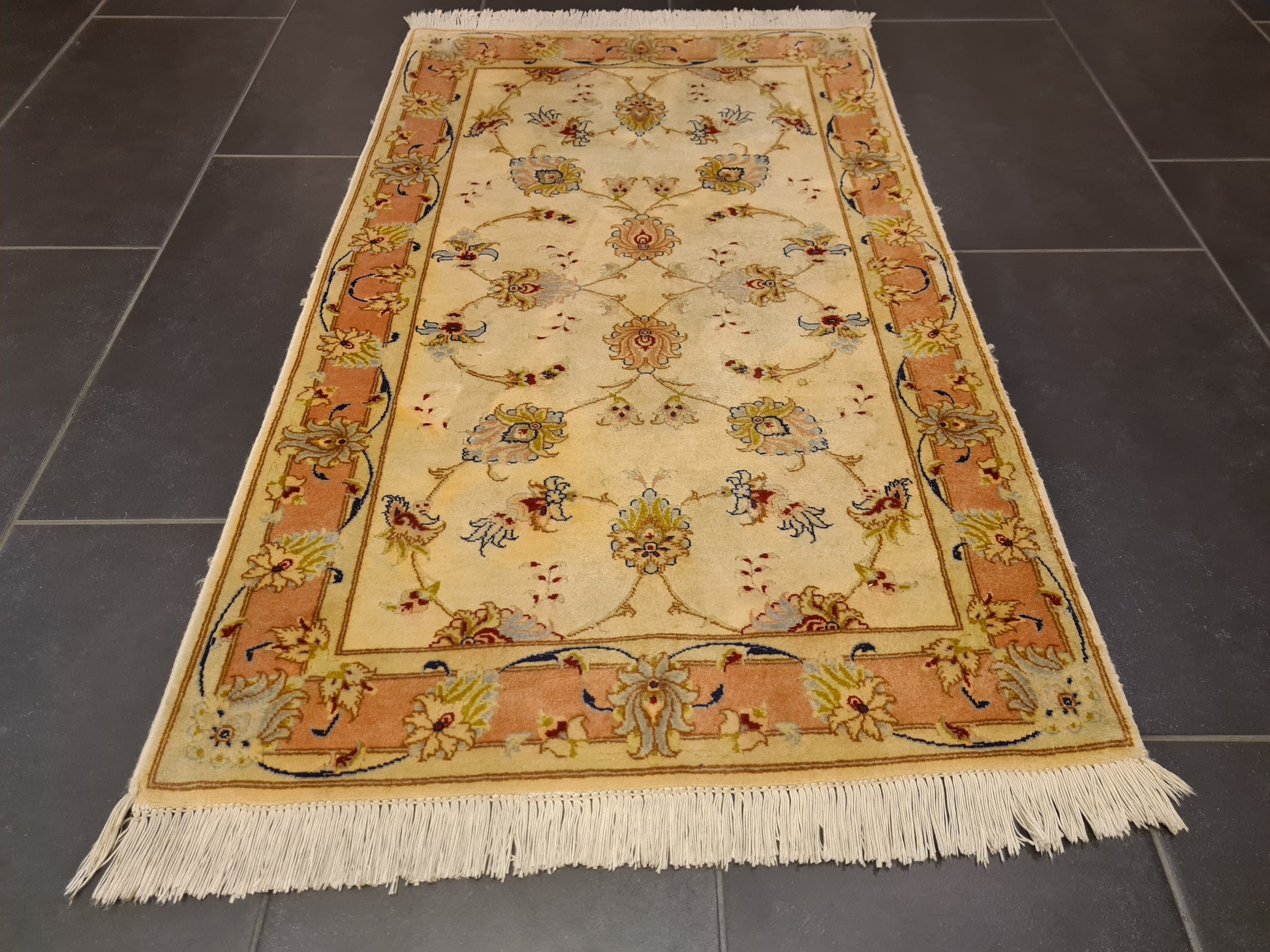 • Besonderheiten: Höchste Qualität durch die Verwendung feinster Materialien und außergewöhnlich präzise Handarbeit. Ein prachtvolles Beispiel orientalischer Teppichkunst, ideal für repräsentative Räume und Sammler.