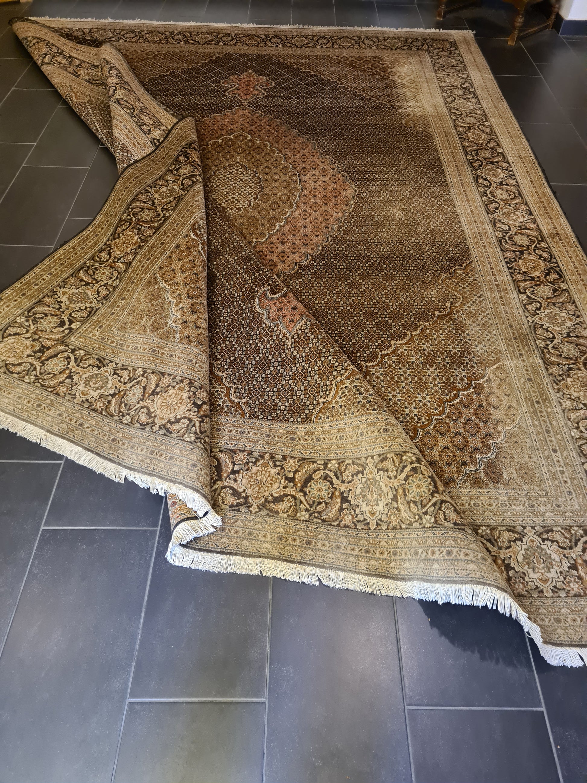 Perser Teppich Täbris Mahi Handgeknüpfter Seidenteppich 400x300cm