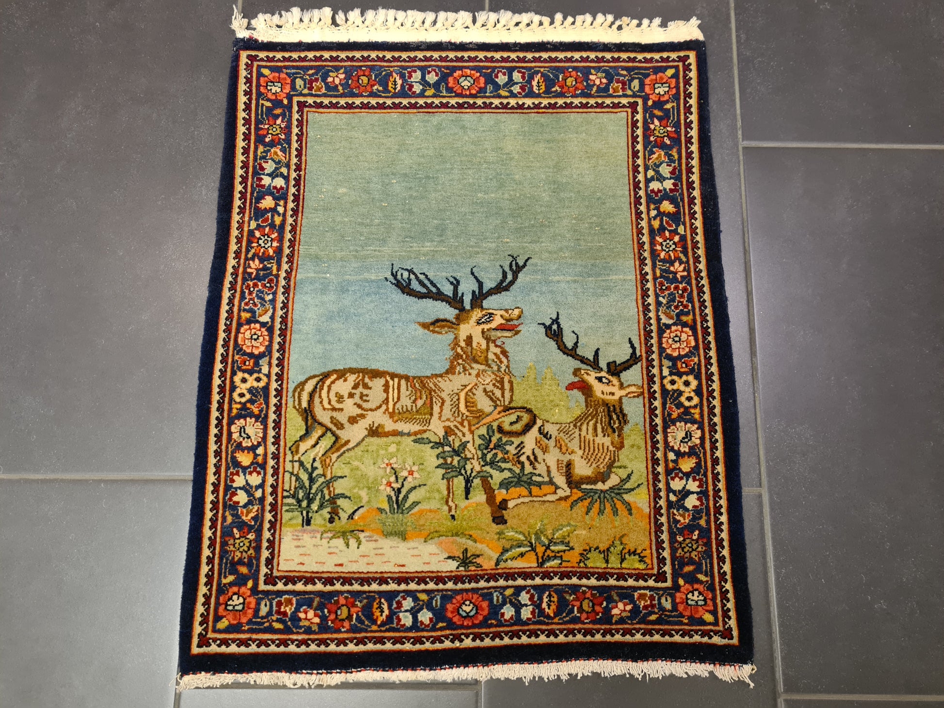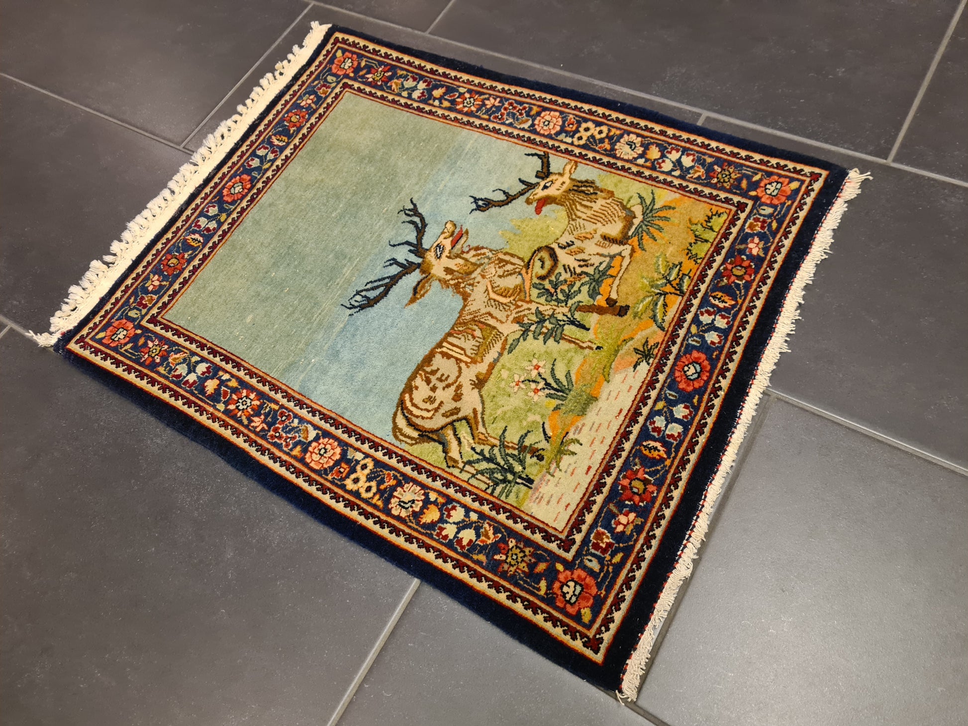 Perserteppich Bilderteppich Handgeknüpfer Teppich Keshan 70x58cm