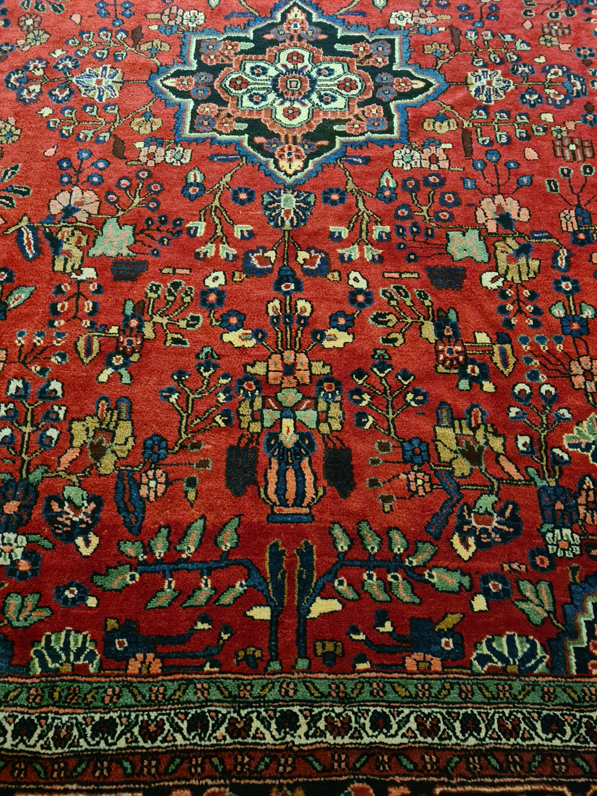 zum Verkauf steht ein prachtvoller antiker Sarough-Palastteppich. Das Stück beeindruckt durch seine feine Handknüpfung, klassische Musterung und großzügige Ausmaße – ein repräsentatives Unikat traditioneller orientalischer Knüpfkunst.